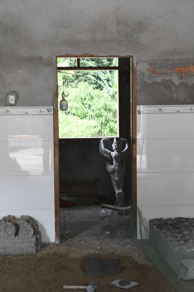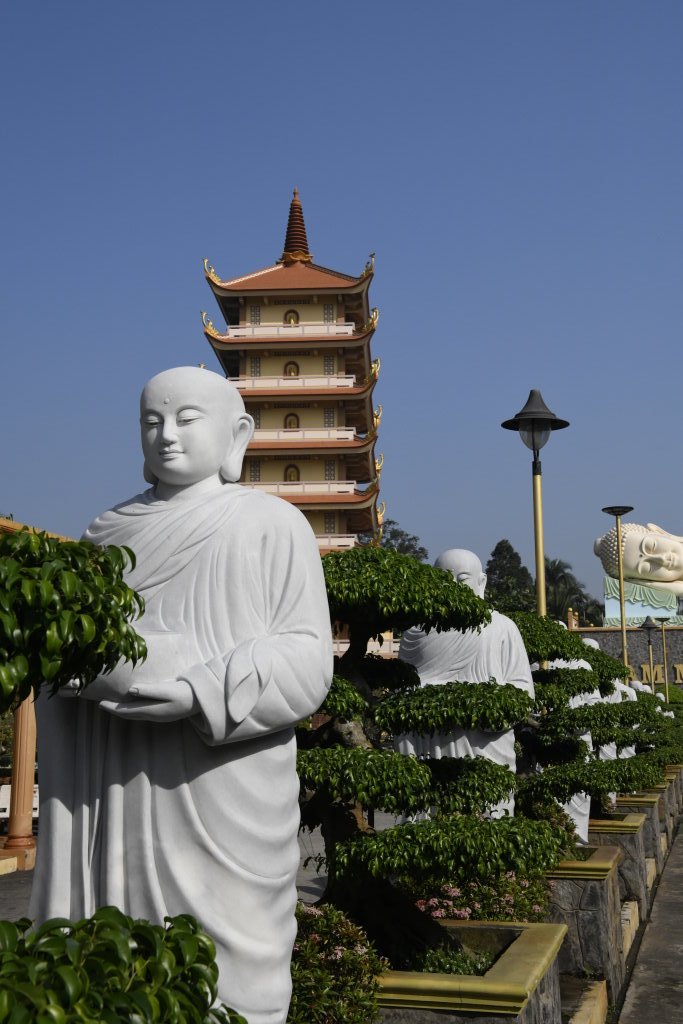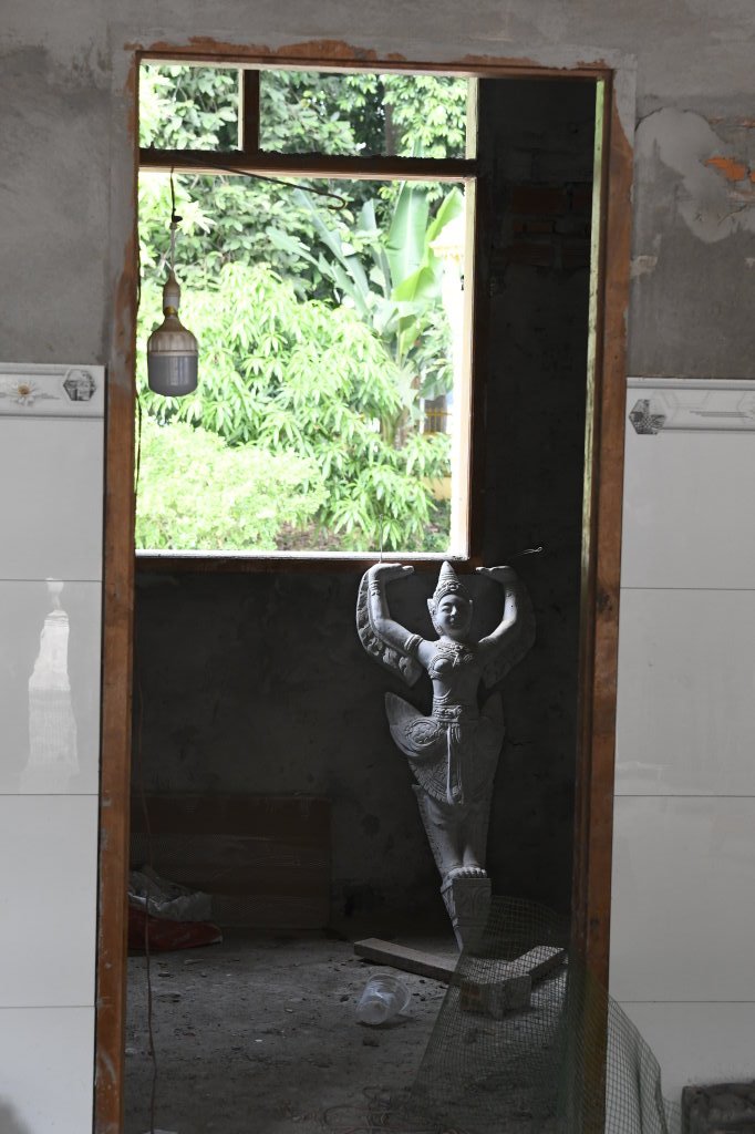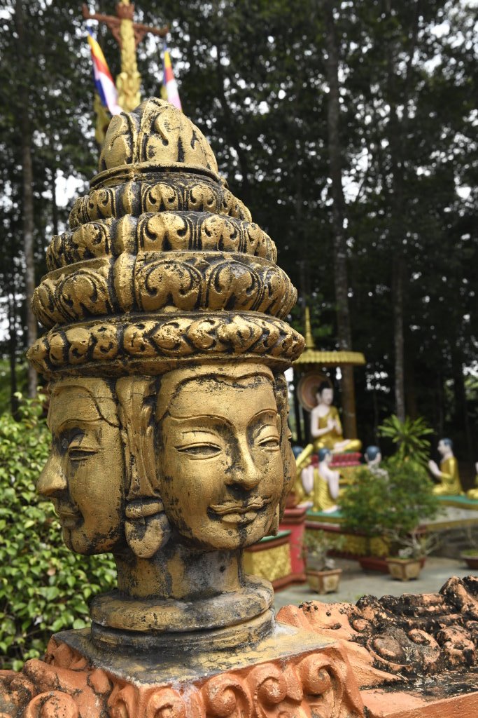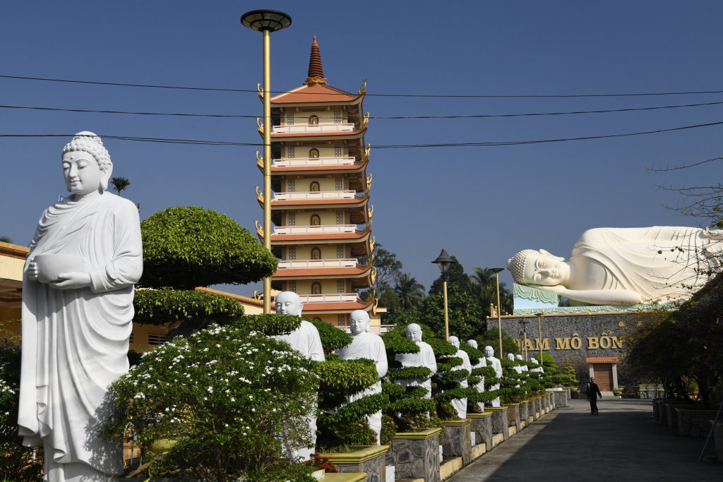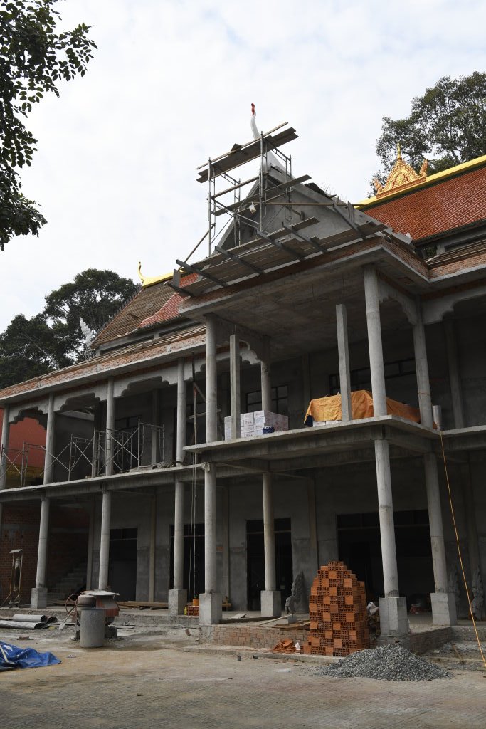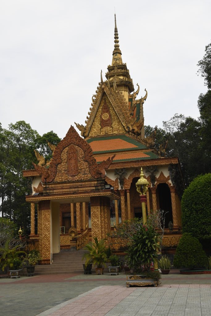 Wir fahren weiter zu einer weiteren Tempelanlage der in Vietnam lebenden Khmer. Die Ang Pagoda, auch Wat Angkor Raig Borei genannt hatte uns wegen ihres Namens neugierig gemacht. Nein, es handelt sich hier nicht um eine Nachbildung des berühmten kambodschanischen Angkor Wat. Mit dem Bau dieser Anlage wurde erst 1842 begonnen. Erweiterungen sind immer noch in Arbeit, wie eine Baustelle gleich hinter dem Eingang eindrucksvoll beweist.