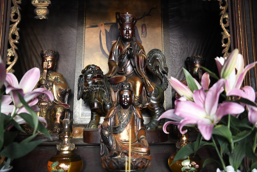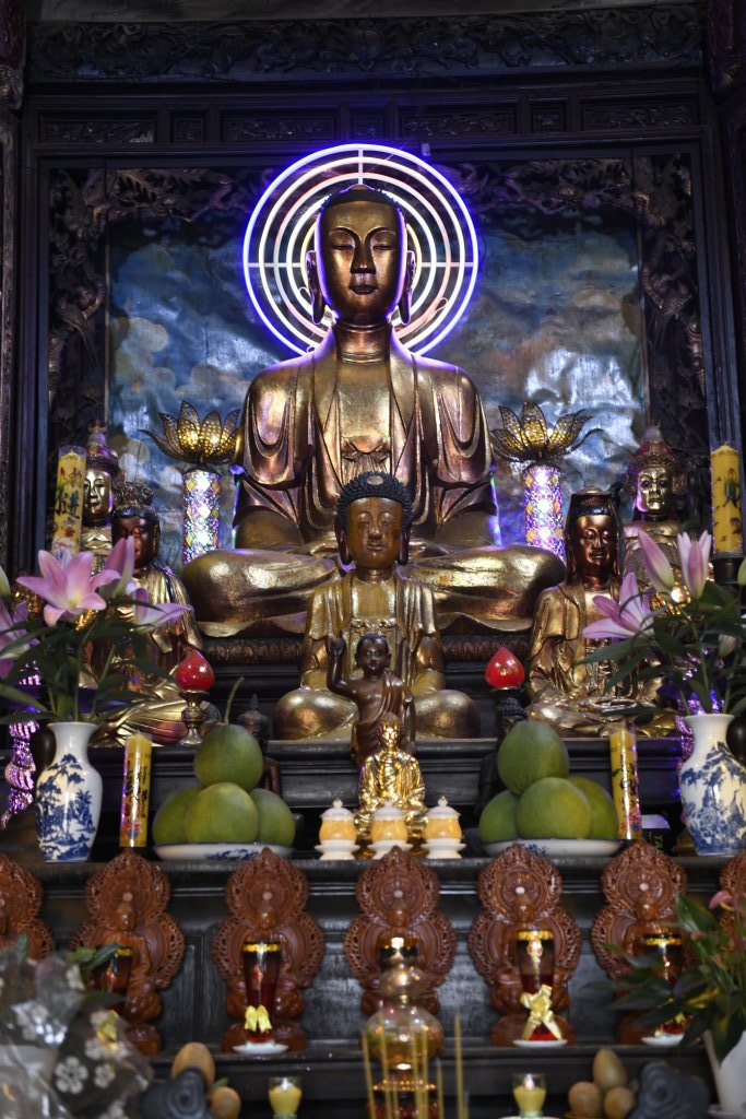 Von der im offensichtlich asiatisch-westlich inspirierten Zuckerbäckerstil verzierten Fassade der Pagode sollte man sich nicht abschrecken lassen. In den Holzschnitzereien in der Haupthalle verbergen sich fantastische Fabelwesen. Und auch in der durch einen Innenhof mit ihr verbundenen Ahnenhalle warten zahlreiche geschnitzte und teils vollständig vergoldete Inkarnationen des Buddha darauf, entdeckt zu werden.