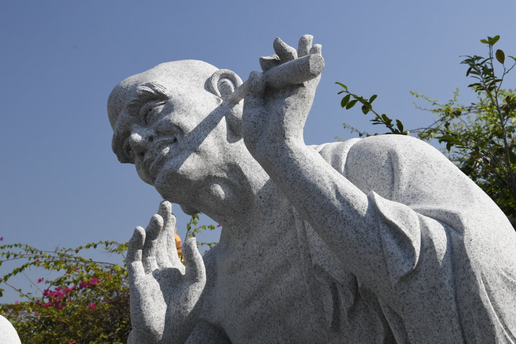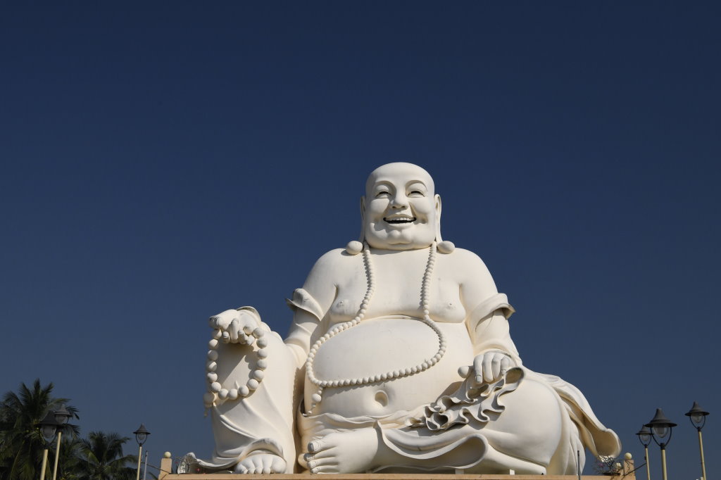 Mit dem Bau der relativ neuen Tempelanlage wurde 1849 begonnen. Sie hat sich nicht zuletzt aufgrund von drei überdimensionalen Buddha-Statuen auf dem Gelände zu einem Touristenmagnet entwickelt: Ein stehender, ein liegender und vor allem der 24 Meter hohe sitzende lachende Buddha überragen alles. Wir haben Glück, sind früh genug da und können vor der Ankunft der ersten Touristenbusse in Ruhe durchs Gelände stromern.