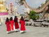 Das sehen einige vietnamesische Jugendliche auch so, die wie schon andernorts beobachtet, in klassischen Kostümen an den Sohlen des Buddha für ihren persönlichen Neujahrskalender posieren.
