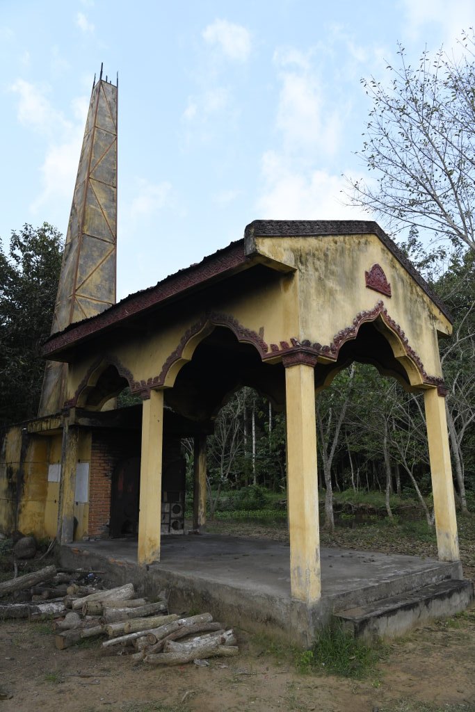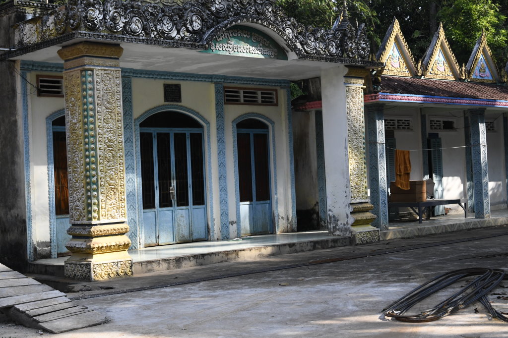 Nächster Halt ist der Chùa Ba Cụm, ein buddhistischer Khmer-Tempel bei Ngọc Biện. Bereits beim Vorbeifahren an der Grenzmauer war mir ein Gebäude mit einem hohen Schlot aufgefallen. Die Suche abseits der renovierten sakralen Gebäude lohnt doppelt. Im hinteren Teil der Anlage versteckt sich nicht nur der Verbrennungsofen für die Toten, sondern auch die einfachen, aus Schilfmatten gebauten Mönchsklausen. Hier besteht offensichtlich noch Baubedarf.