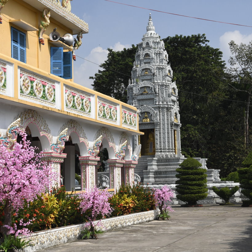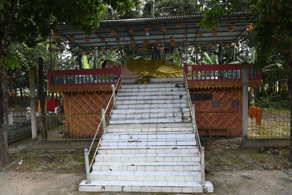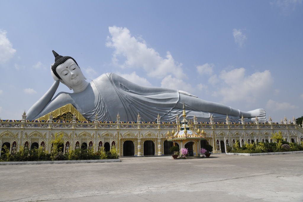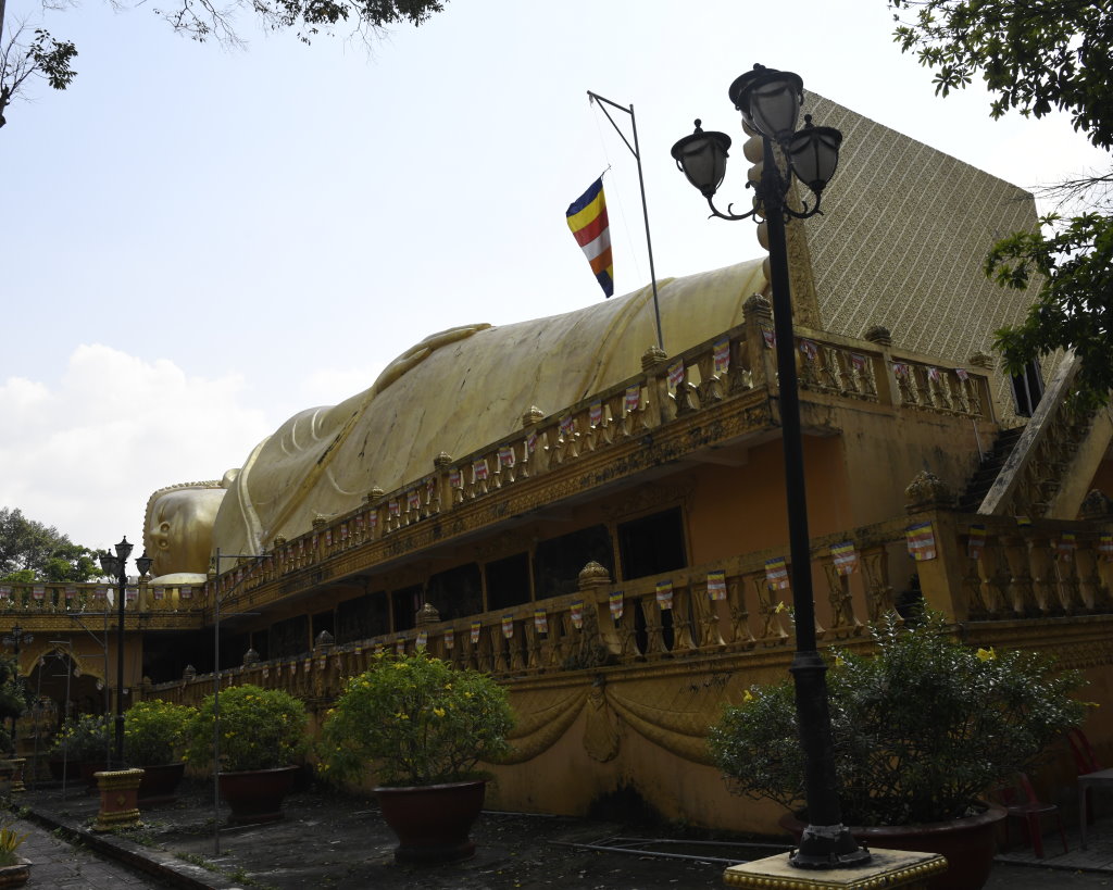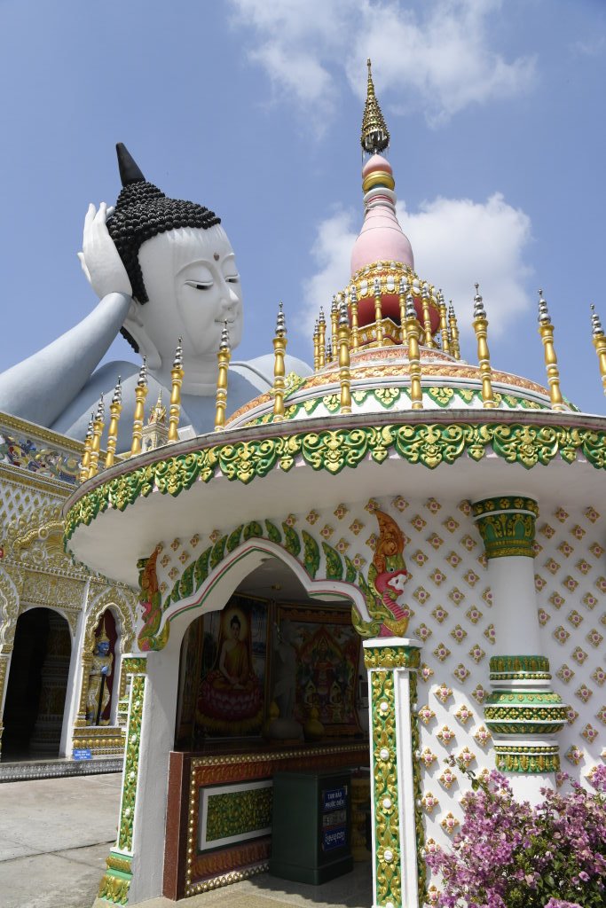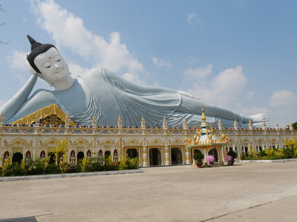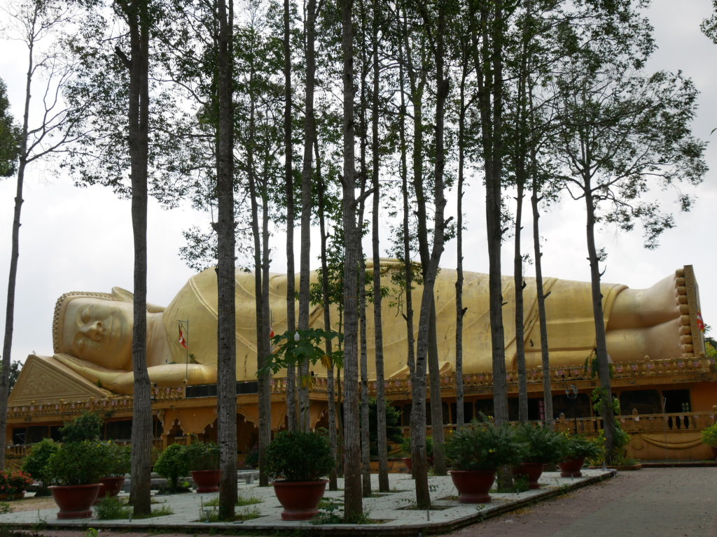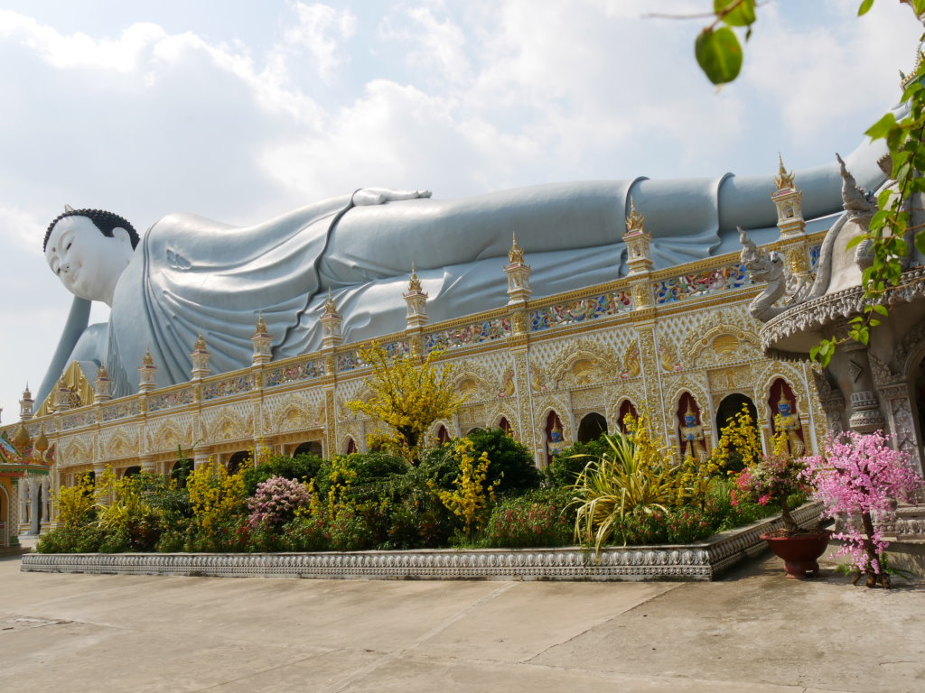 Vorletzte Station ist die Sa Som Rong Pagode in der Provinz Soc Trang. Hier lohnt allein schon die gigantische Statue eines liegenden Buddhas den Besuch.