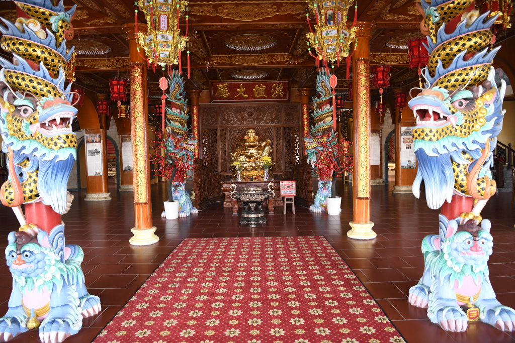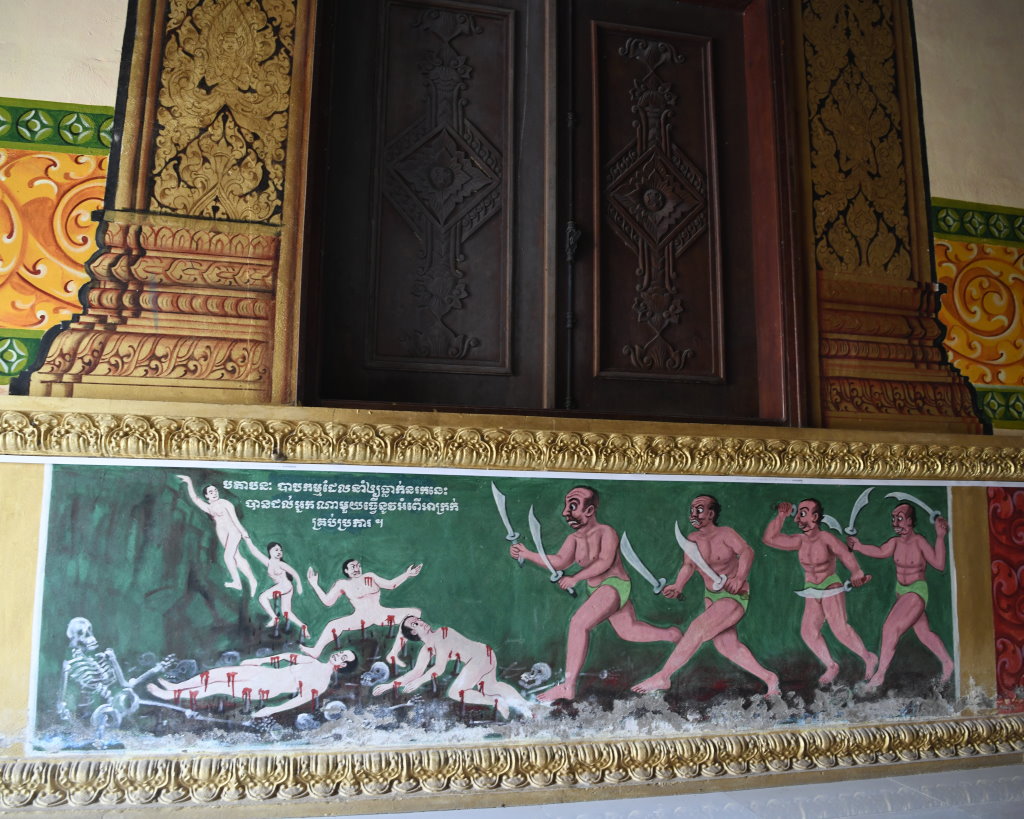 Ganz anders beim nächsten Tempel, den wir besuchen. Die Stifter der Geldmittel für die umfangreichen Renovierungsarbeiten der Large Giong Chua bei Đại An werden mit einem überdimensionalen Foto am Portal der Pagode gewürdigt. Dunkel bleibt es nur im Inneren des nur von zwei großen Kerzen beleuchteten Sakralraums. Einen Einblick in die finsteren Seiten der buddhistischen Glaubenswelt geben die Bildtafeln am unteren Rand, die die Qualen ihrer Hölle illustrieren und an Gemälde von Hieronymus Bosch erinnern.