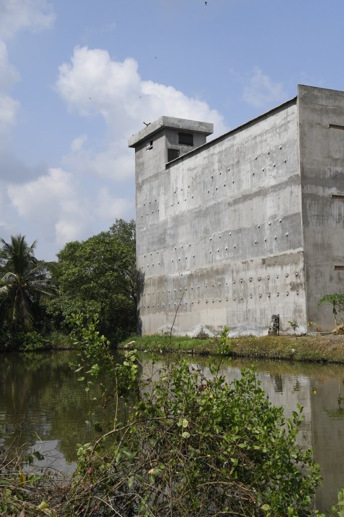 Unsere Route führt jetzt auf Nebenstraßen durch endlose Reisfelder, bis im Dorf Long Hiep plötzlich ein hohes Gebäude am Straßenrand unsere Aufmerksamkeit erregt. Diese Art Hochhaus mit den seitlichen „Schießscharten“ kennen wir doch von unserer Reise durch Kalimantan, dem indonesischen Teil Borneos. Richtig, kaum ist das Seitenfenster für ein schnelles Foto heruntergefahren, hört man schon lautes Schwalben-Gezwitscher. Die Methode zur Schwalbenzucht und bequemen Ernte der vor allem in China hochbegehrten und teuer bezahlten „Schwalbennester“, hat jetzt auch in Südvietnam eine profitable Heimat gefunden. Das beweisen die zahreichen oft erst kürzlich erbauten Zuchtbunker in dieser Gegend.