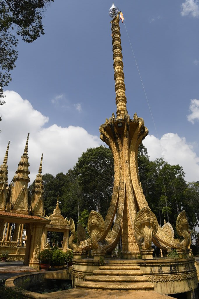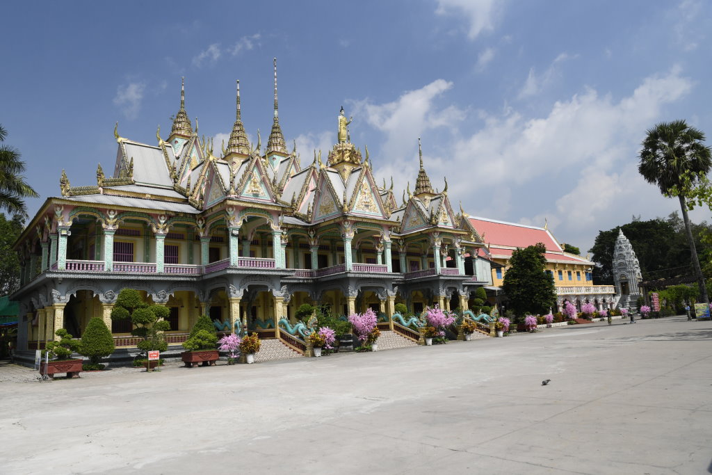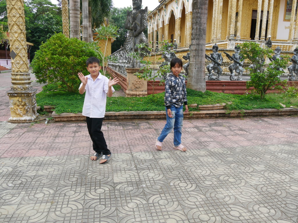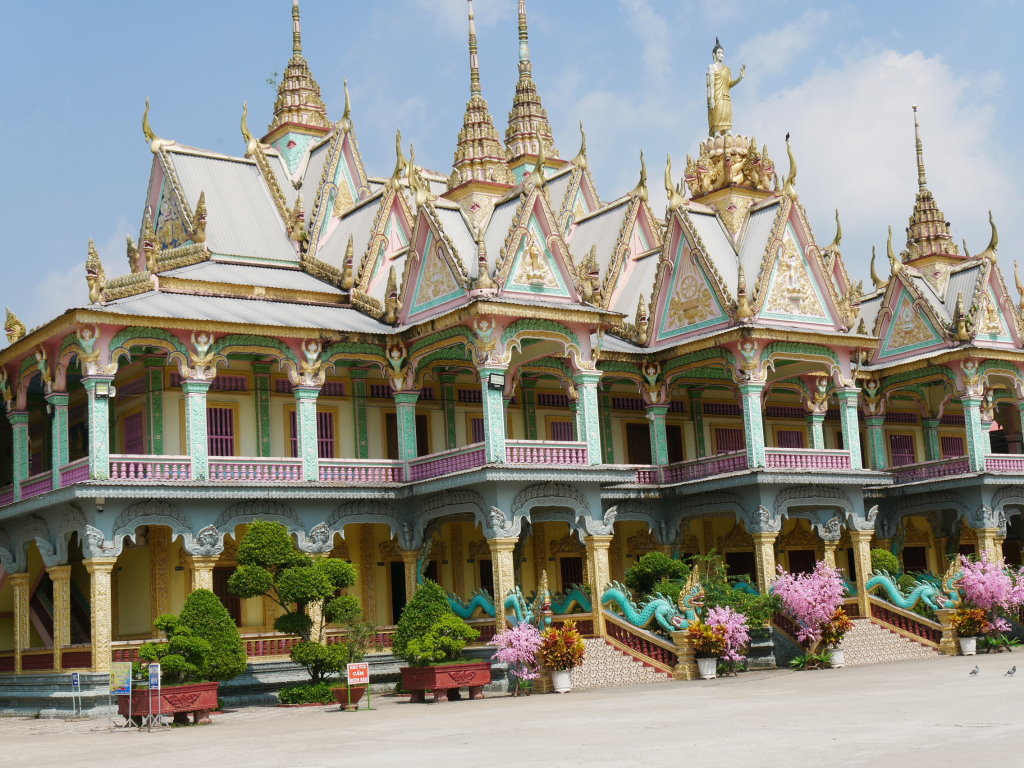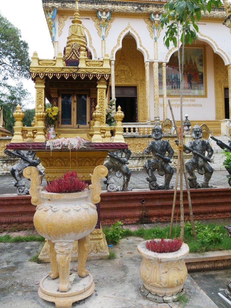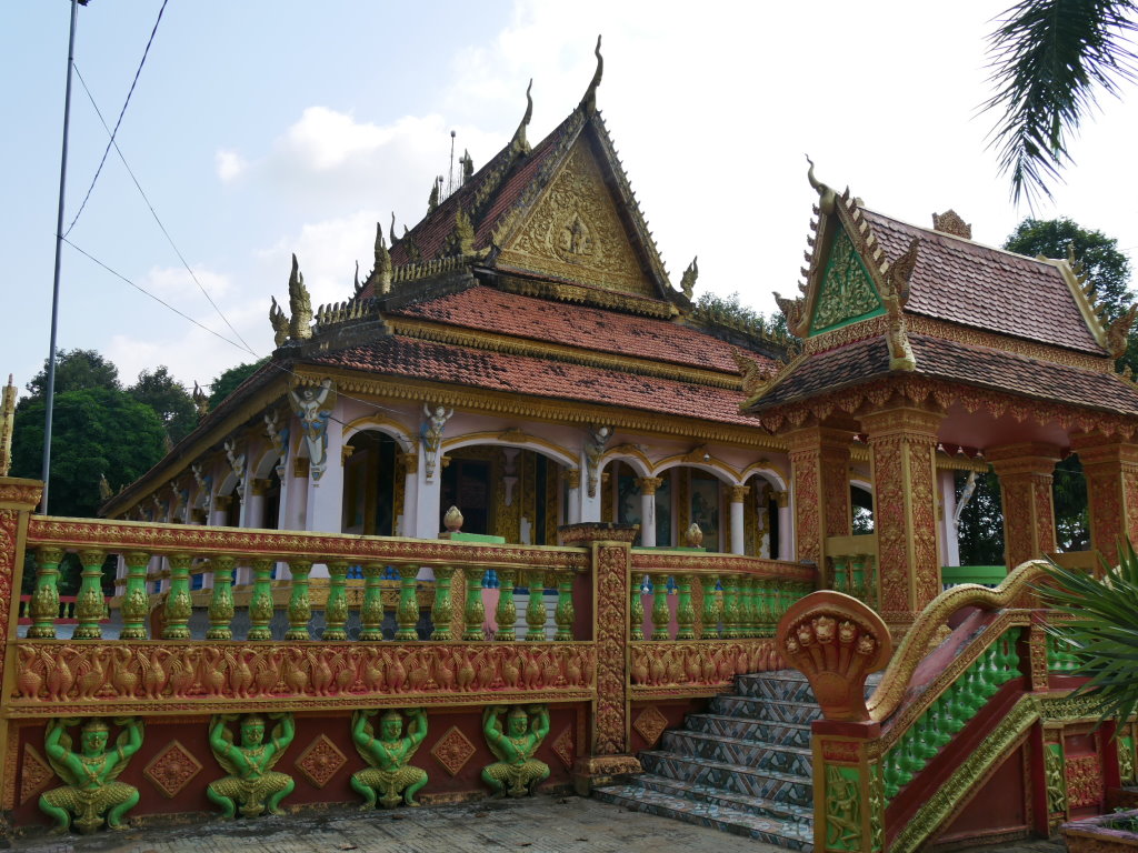 In der Provinz Tra Vinh im südwestlichen Delta unterhalb des Mekongs gibt es rund 140 Khmer Tempel, 40 vietnamesische und 5 chinesische sowie 14 christliche Kirchen und 7 Moscheen. Khánh, unser Fahrer entpuppt sich einmal mehr als fähiger Fremdenführer, auch wenn sein Englisch manchmal erst mithilfe von Google Translate für uns zu verstehen ist. Morgens um halb acht beginnt unsere Tour de Force zu unzähligen buddhistischen Klosteranlagen, von denen manche erst kürzlich renoviert, andere teils noch im Bau befindlich sind.