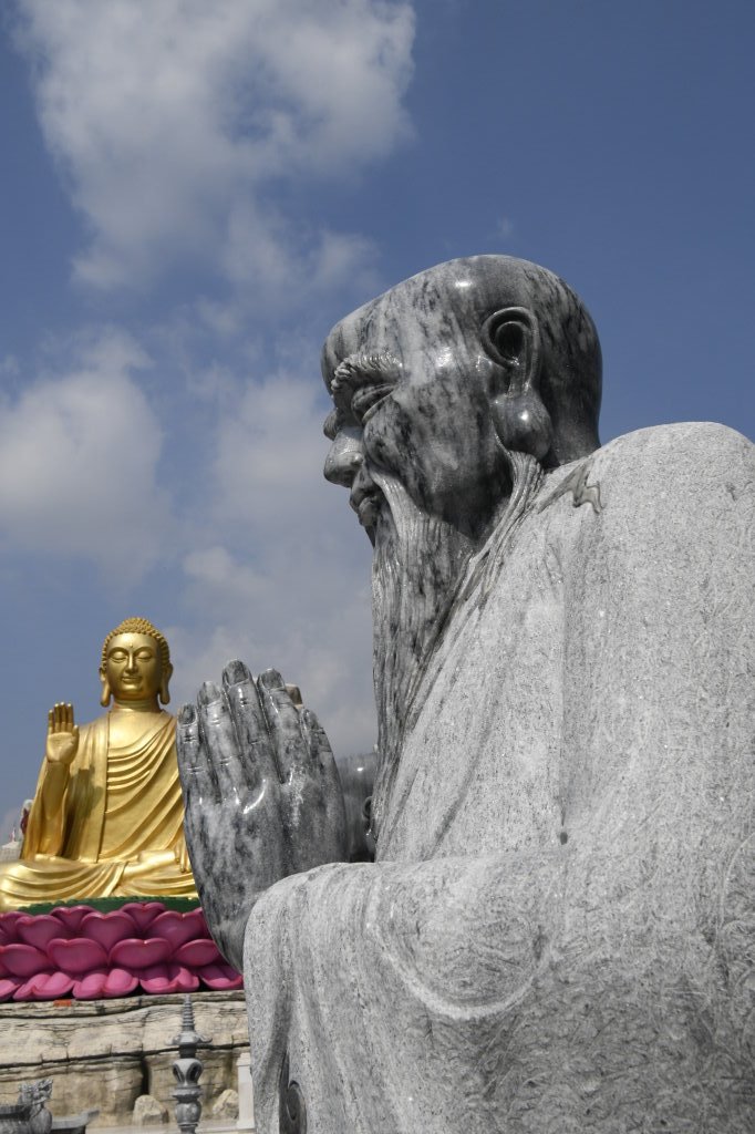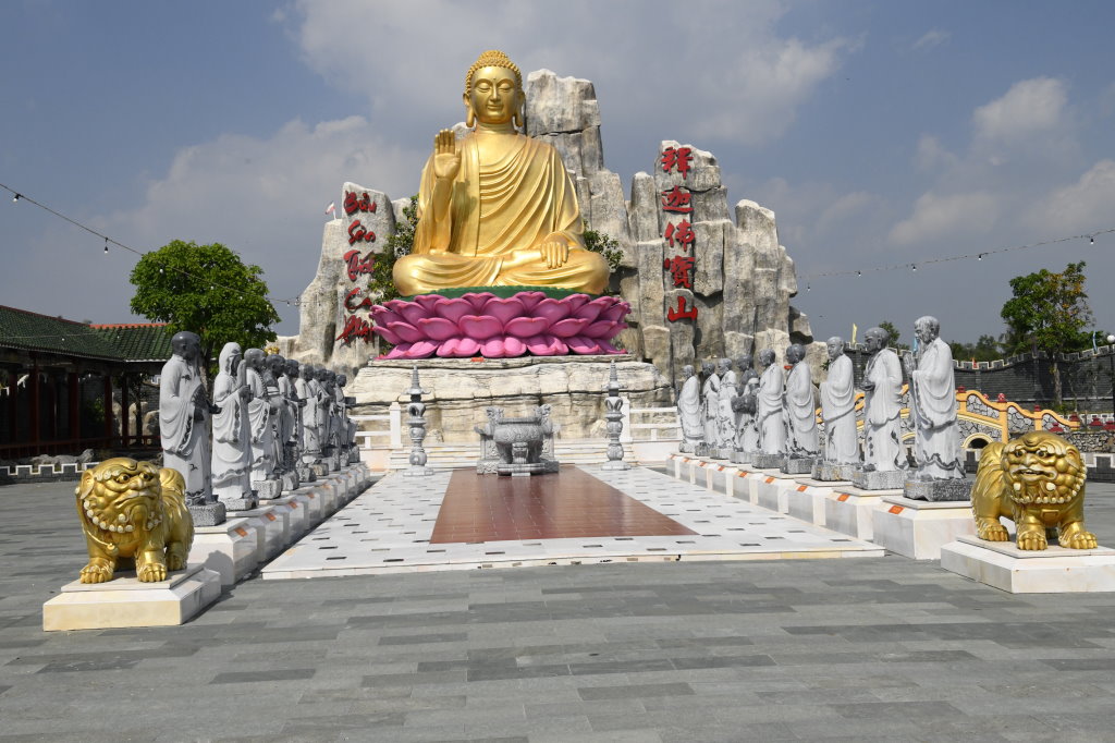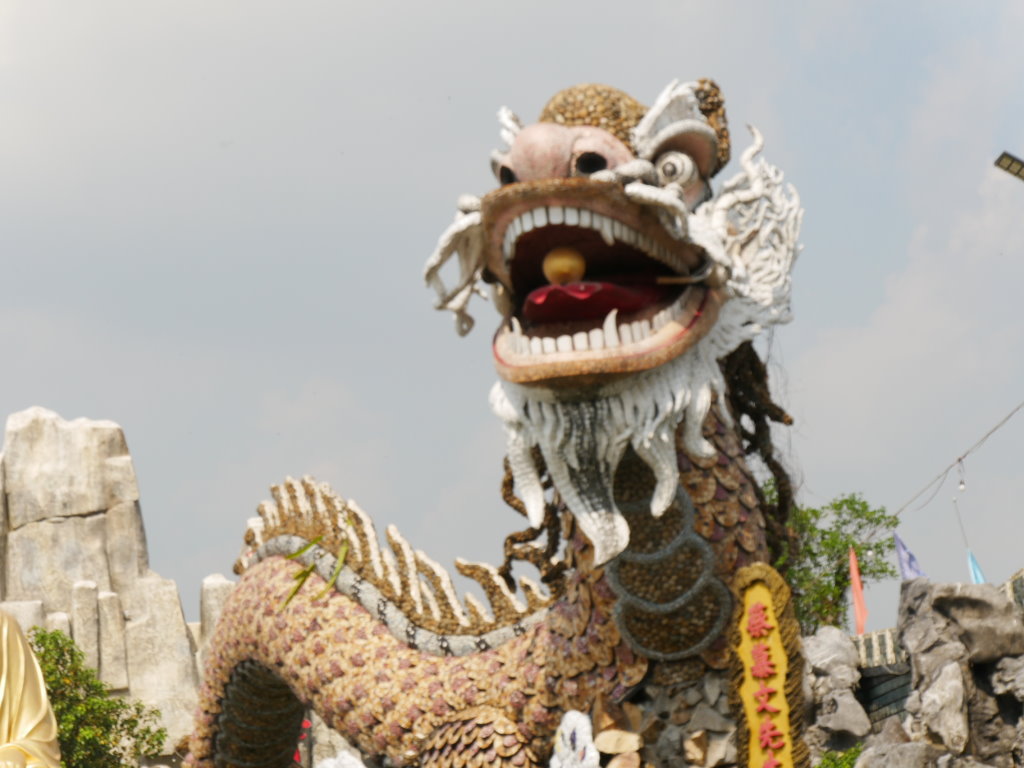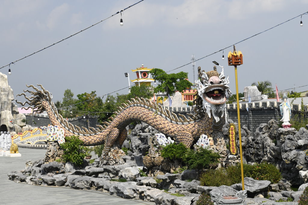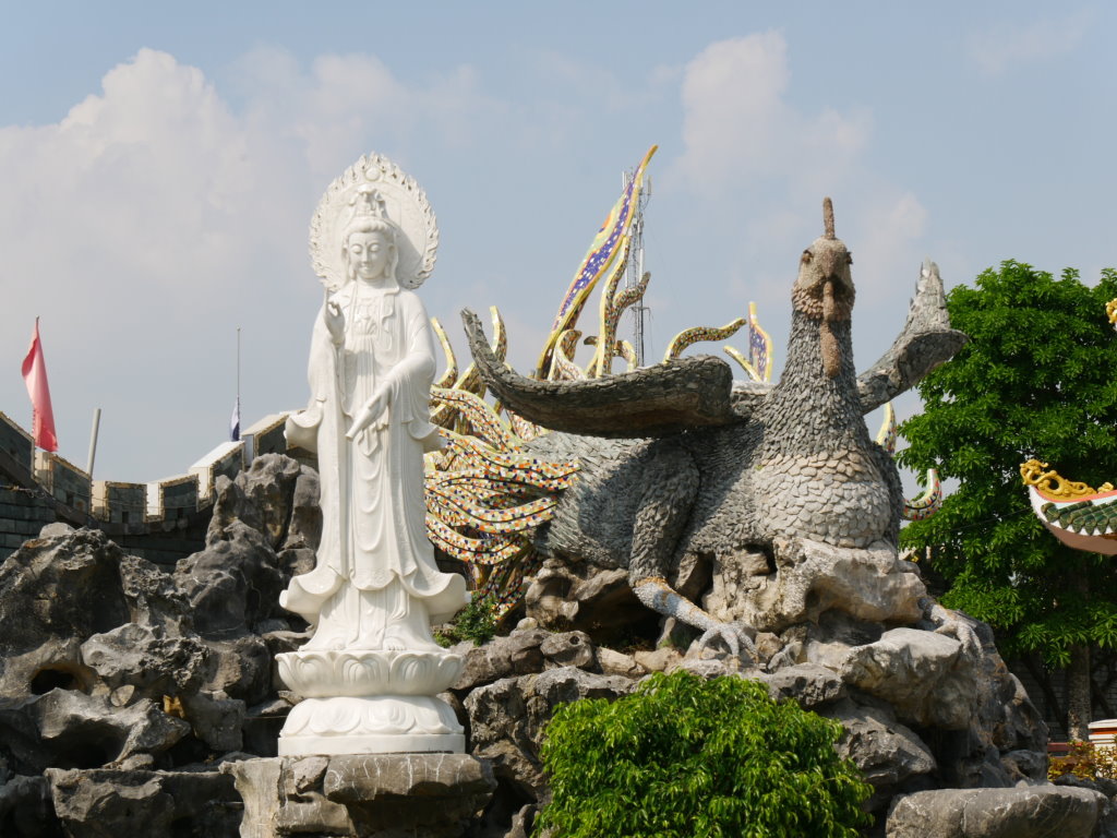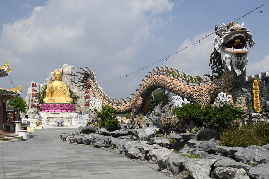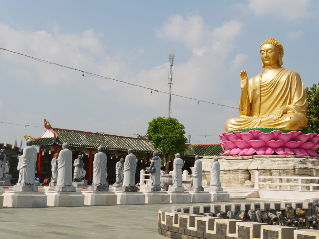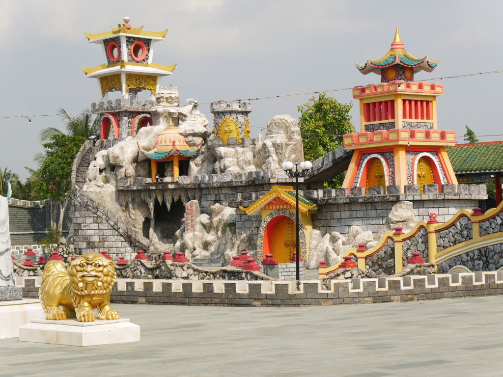 Zum Abschluss kämpft sich unser Fahrer durch die engen Gassen von Tra Vinh zum Chùa La Hán. Die von Buddha-Statuen und zahlreichen Fabelwesen bevölkerte Anlage wirkt wie ein asiatisches Disneyland. Was für ein Kontrast zu den anderen Plätzen, die wir heute besuchen konnten.