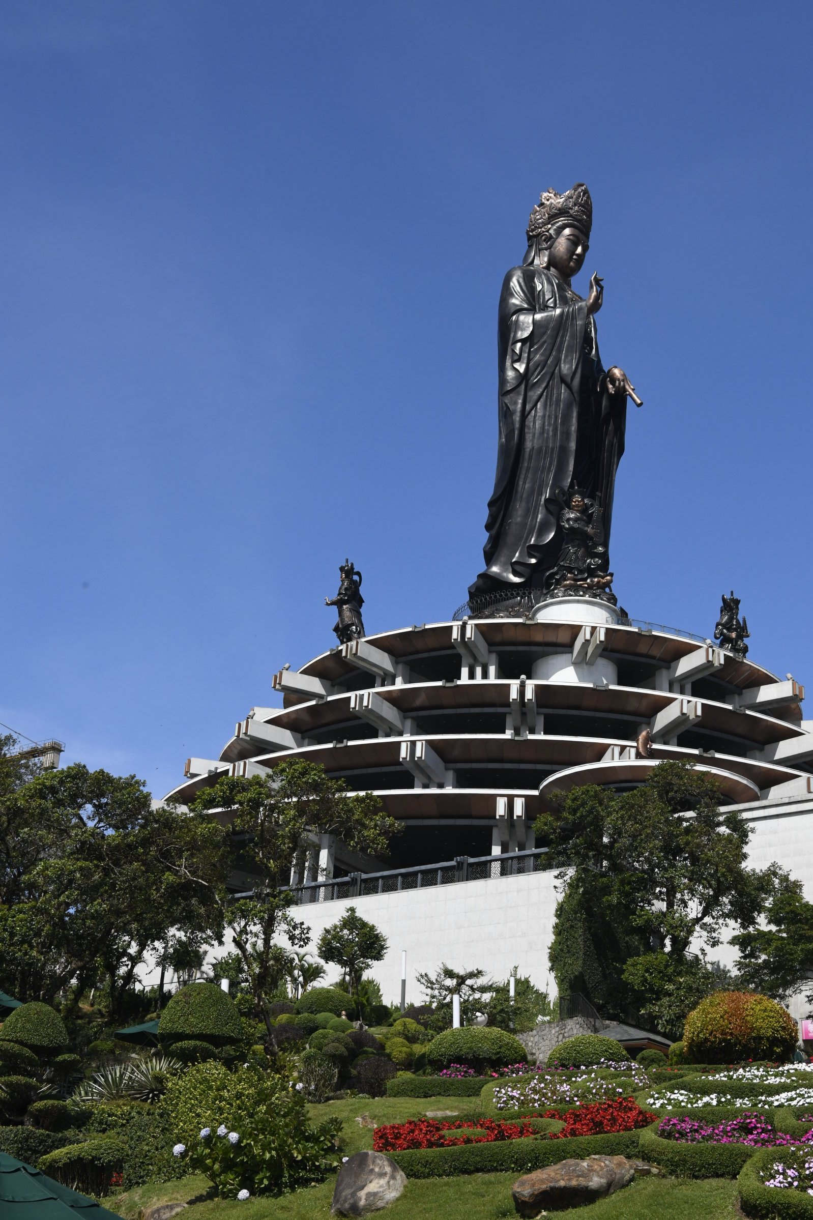 Zur Statue der schwarzen Madonna der Cao Dai auf dem Gipfel des Bà Đen Bergs .bringt uns eine modere Seilbahn. Der schweißtreibende Anstieg ist Vergangenheit… Der Berg ist nach einer Legende benannt, in der eine junge Frau namens Bà Đen (Black Lady) sich opferte, um ihre Jungfräulichkeit zu bewahren, da ihr Vater eine arrangierte Heirat wünschte. Sie wurde zur Gottheit, der Berg zu einem bedeutenden spirituellen Ort s für Buddhisten, aber auch für Anhänger des Cao Dai.