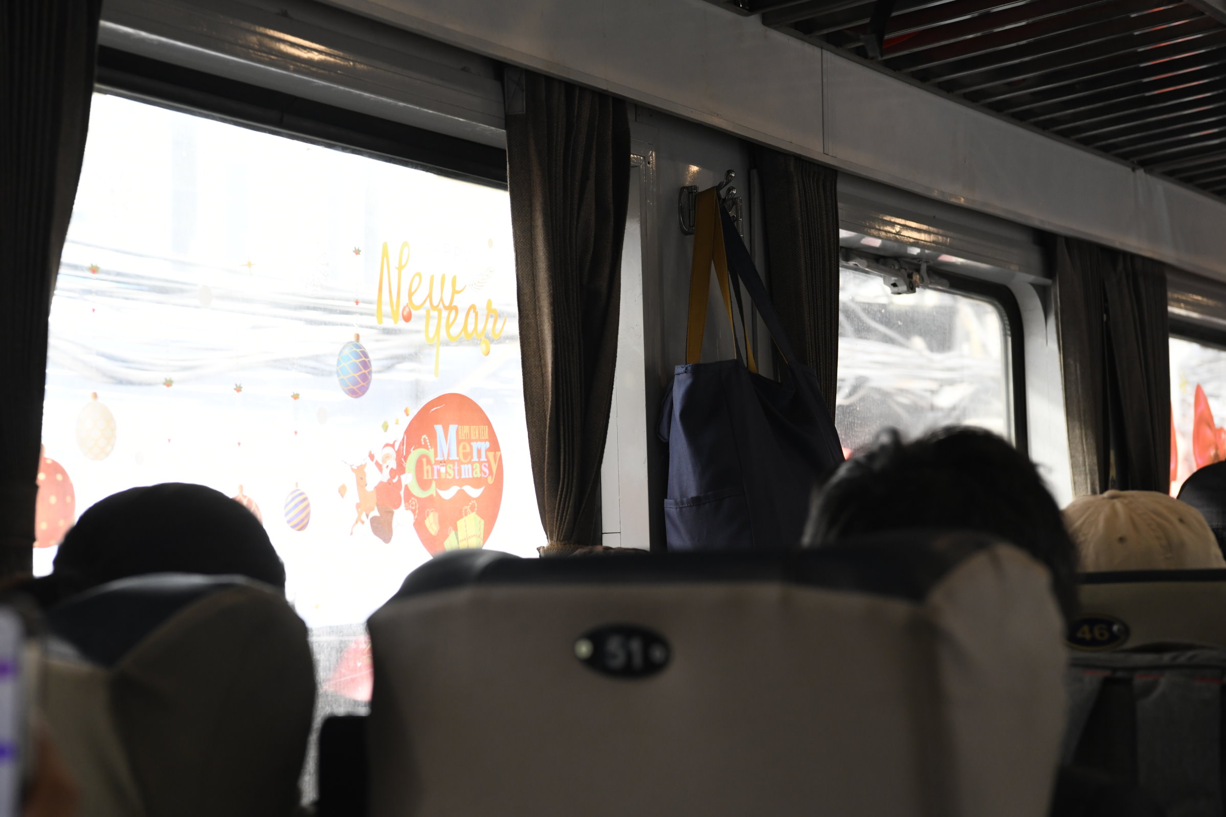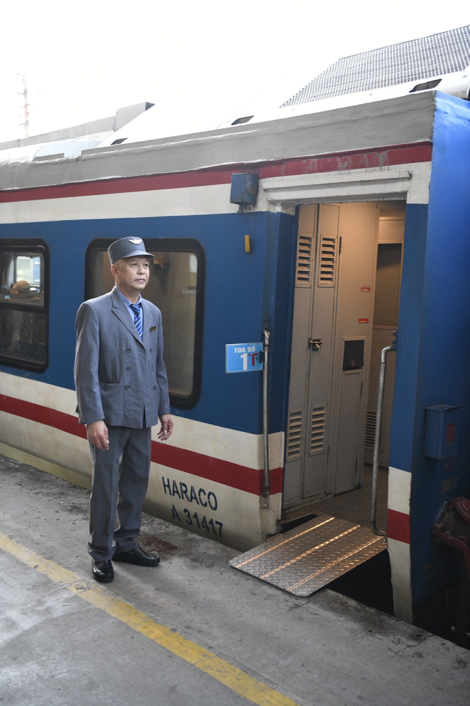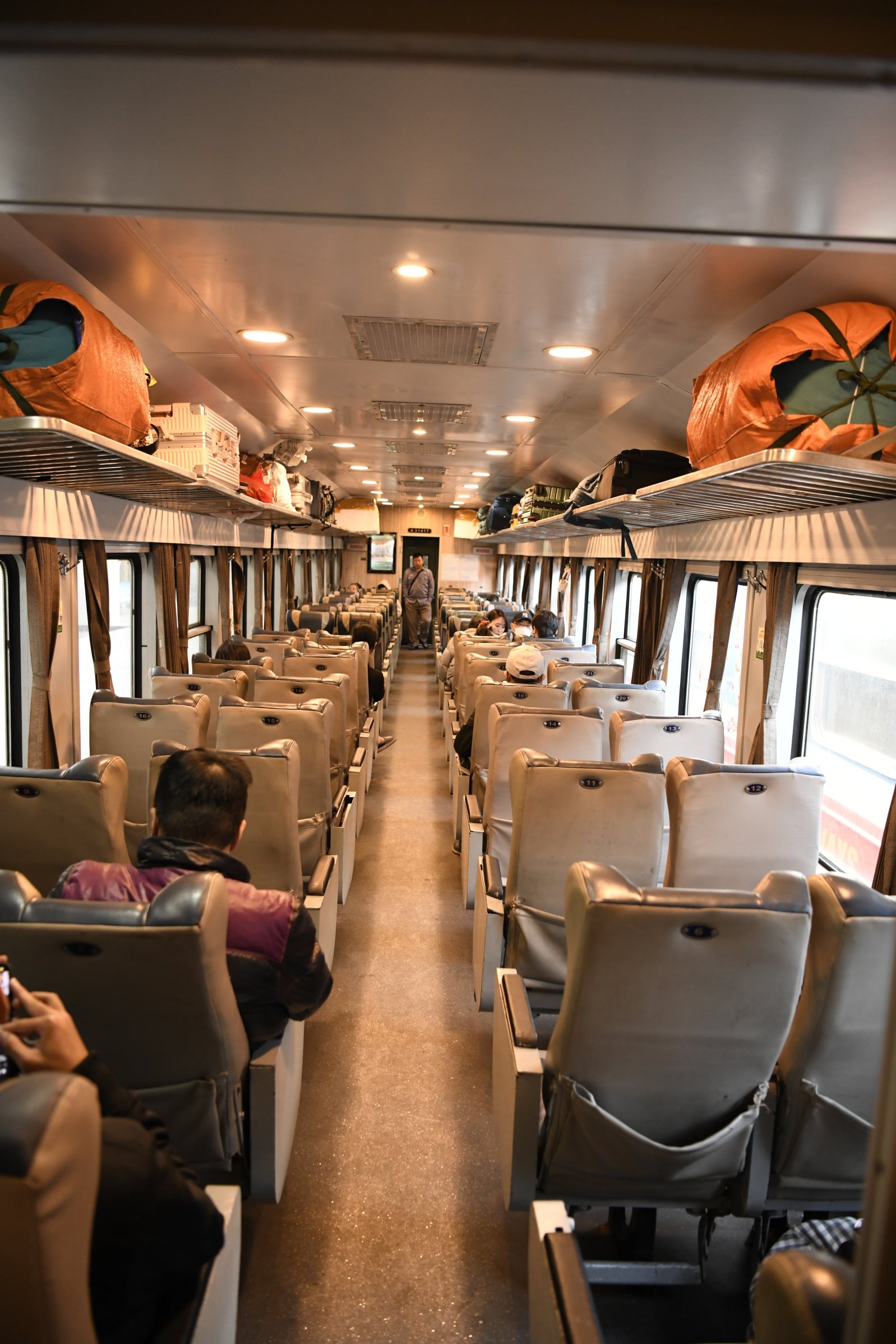 Auf die Sekunde genau 45 Minuten vor Abfahrt des Zuges wird der Durchgang vom Wartebereich zum Bahnsteig geöffnet. Wir sind ja auch in Hanoi, das klingt schwäbisch, und bei denen geht angeblich auch alles immer auf die Minute. Natürlich erfolgt die Abfahrt pünktlich auf die Minute, nachdem alle Passagiere ihre Plätze gefunden und das Gepäck über ihren Köpfen oder zwischen den Beinen verstaut ist. Wir haben „Soft Seat Air Con“ gebucht, gepolsterte, aber auch schon ziemlich durchgesessene Sitze mit Klimaanlage im Abteil.