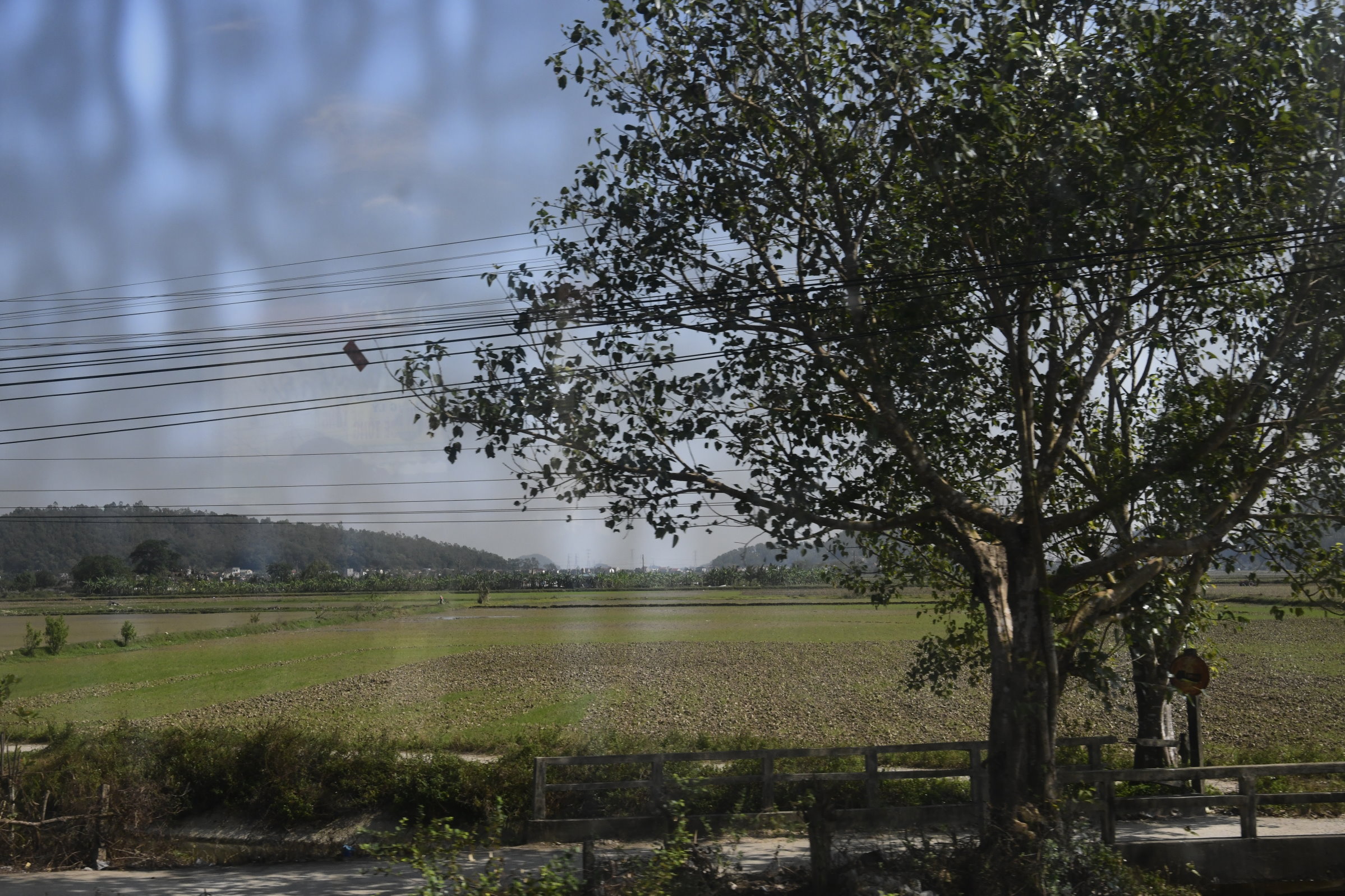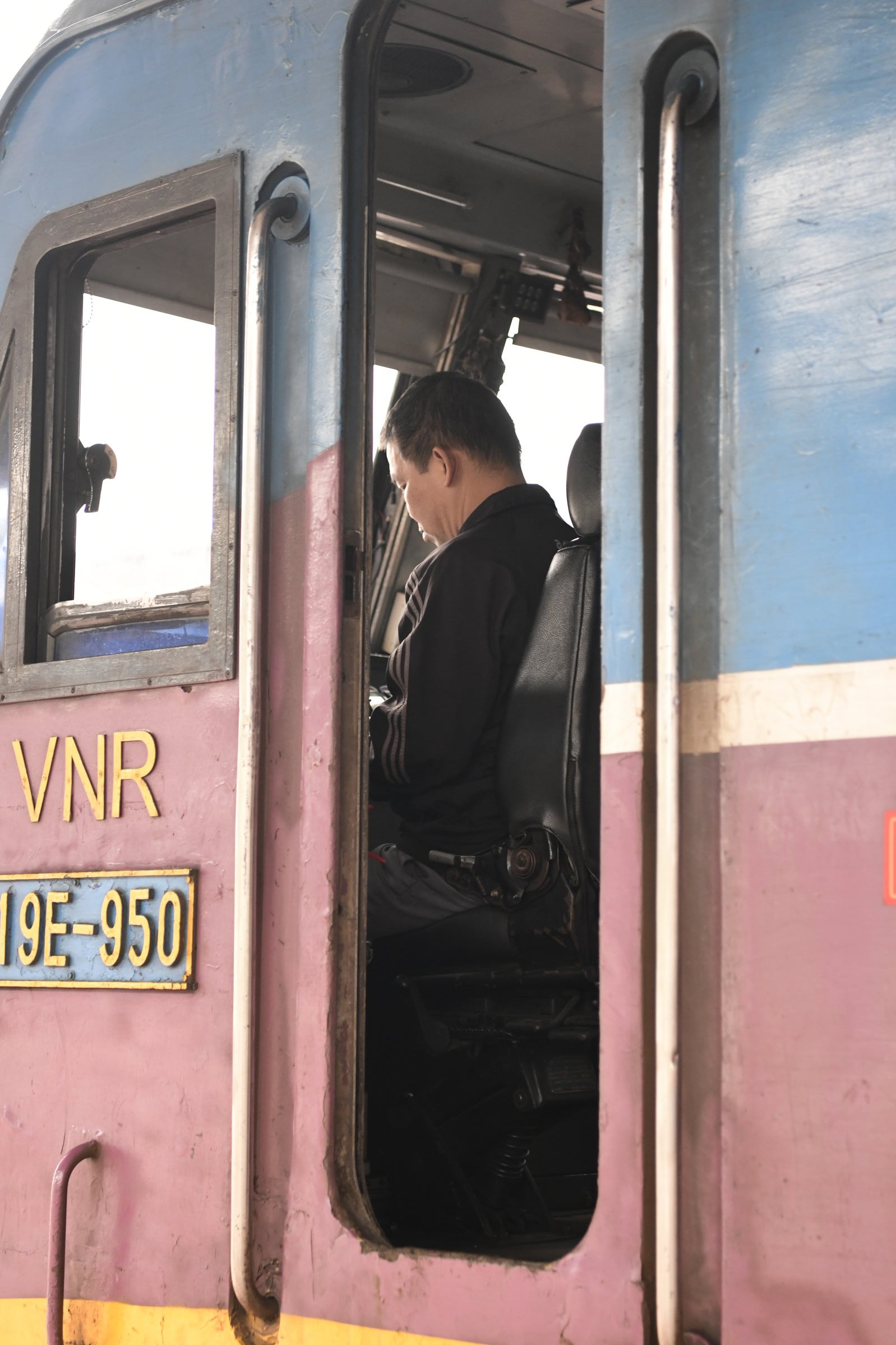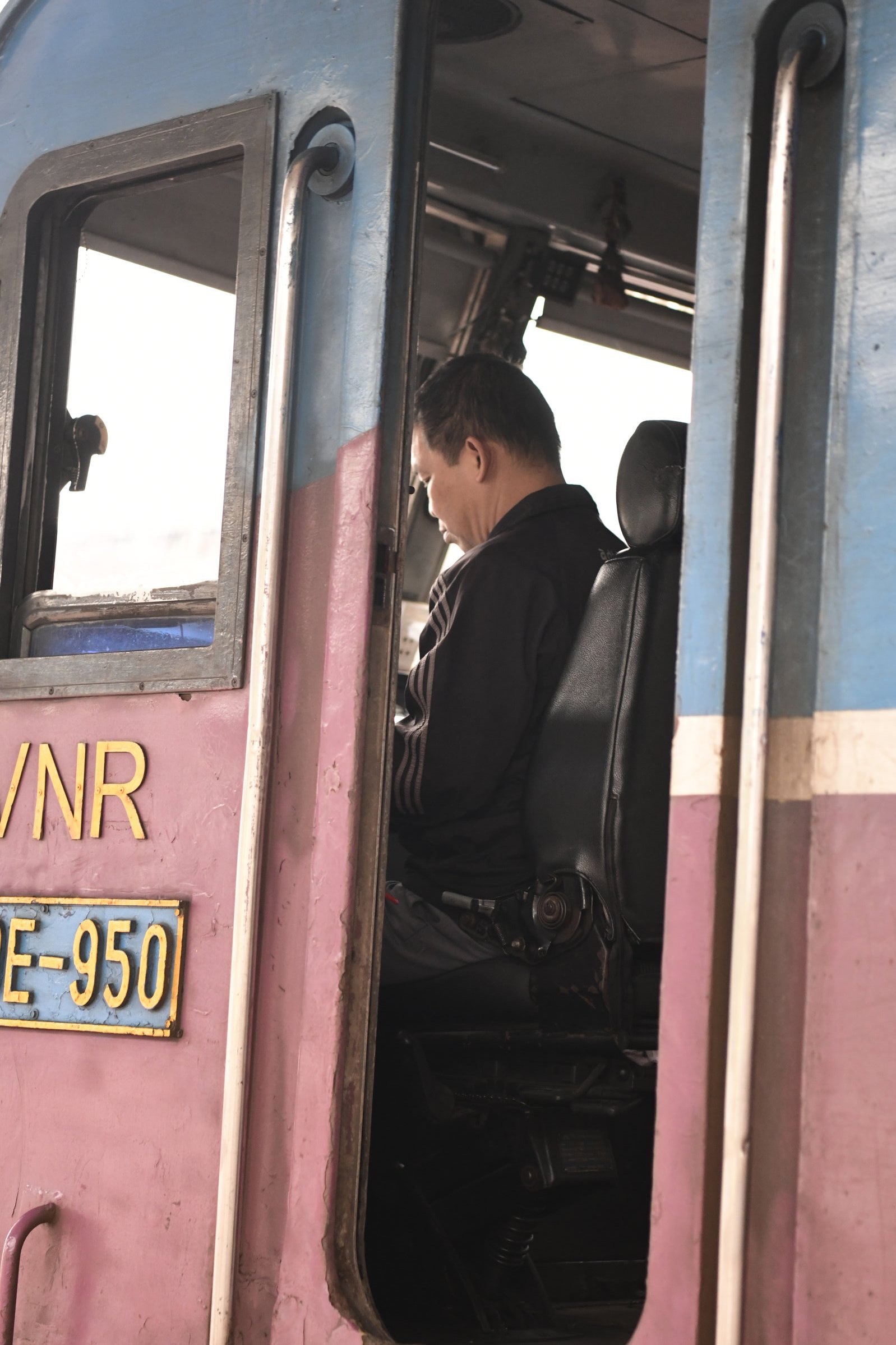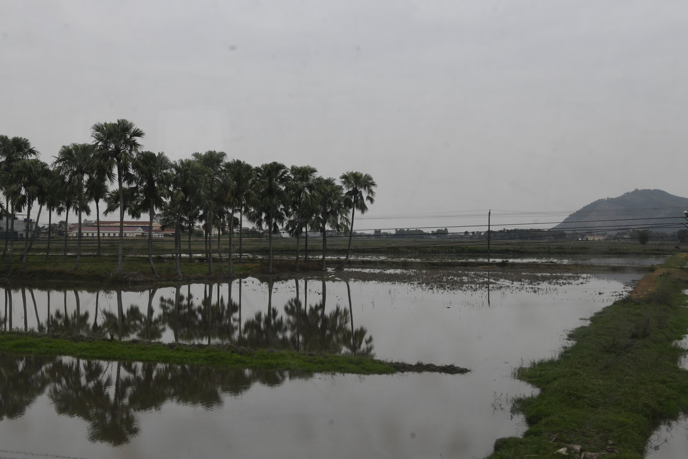 Zunächst verläuft die Weiterfahrt plangemäß, bis es in Cau Gia, rund 60 Kilometer von unserem Ziel entfernt zu einem längeren Stopp kommt. Der Grund: Ab hier wird die Strecke einspurig und wir müssen erst den Gegenzug durchlassen. Um 14 Uhr geht es endlich weiter. Die Gleise führen auf einer Böschung direkt durch die Reisfelder, die teils erntereif, teils frisch umgegraben und frisch bepflanzt an den Fenstern vorbeihuschen.