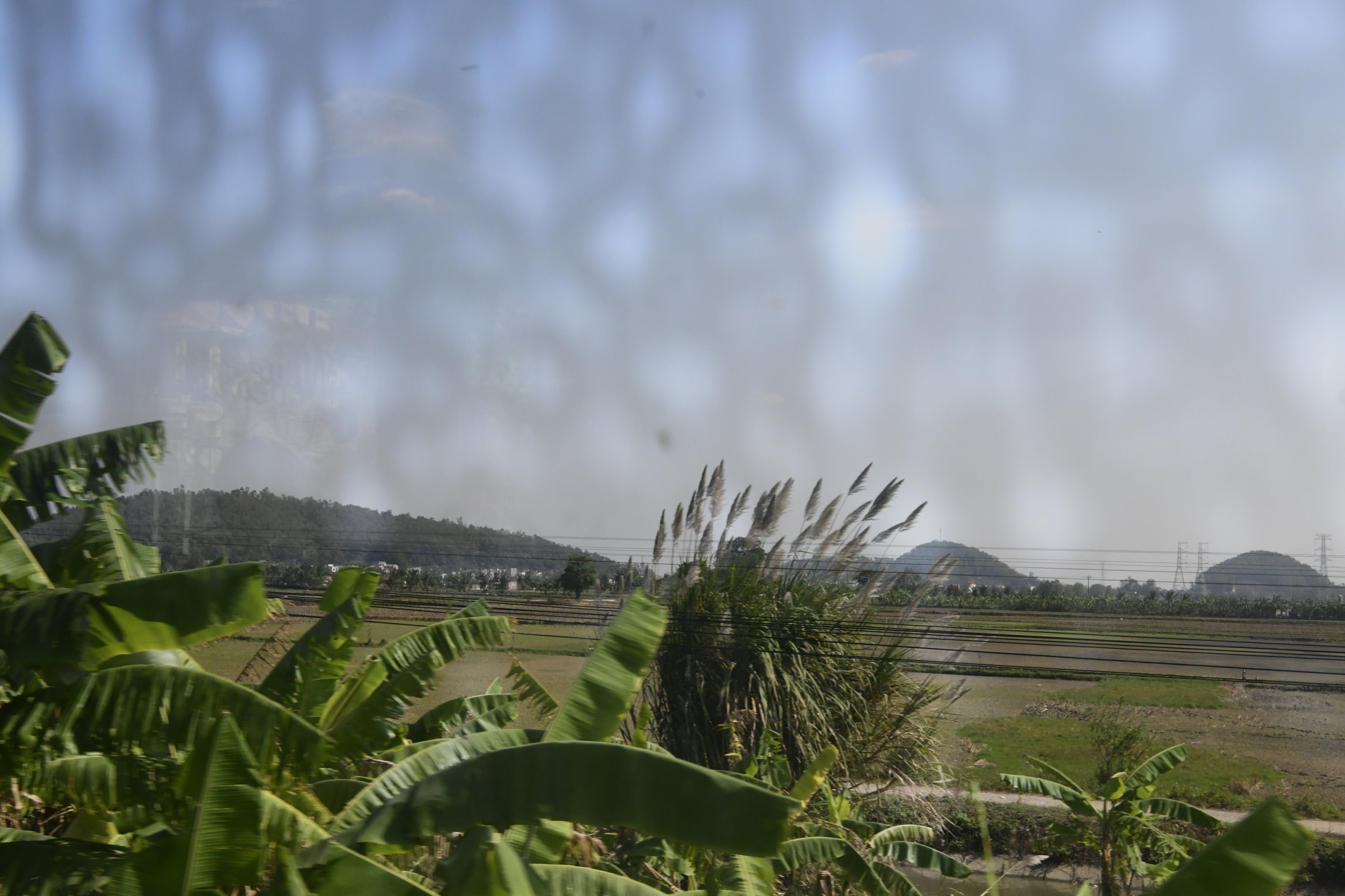 Gegen 11 Uhr kommt dann am Bahnhof Nam Dinh Bewegung ins Abteil. Ein Drittel der Passagiere verlässt den Zug. Sie haben den Ausgangspunkt für ihre Exkursionen in die „trockene Halong Bucht“ Tam Coc und den Cuc Phuong Nationalpark erreicht. In den nächsten zwei Stunden fahren auch wir in gebührender Entfernung an den schroffen Kalkstein-Felsen vorbei, die nun die Landschaft prägen.