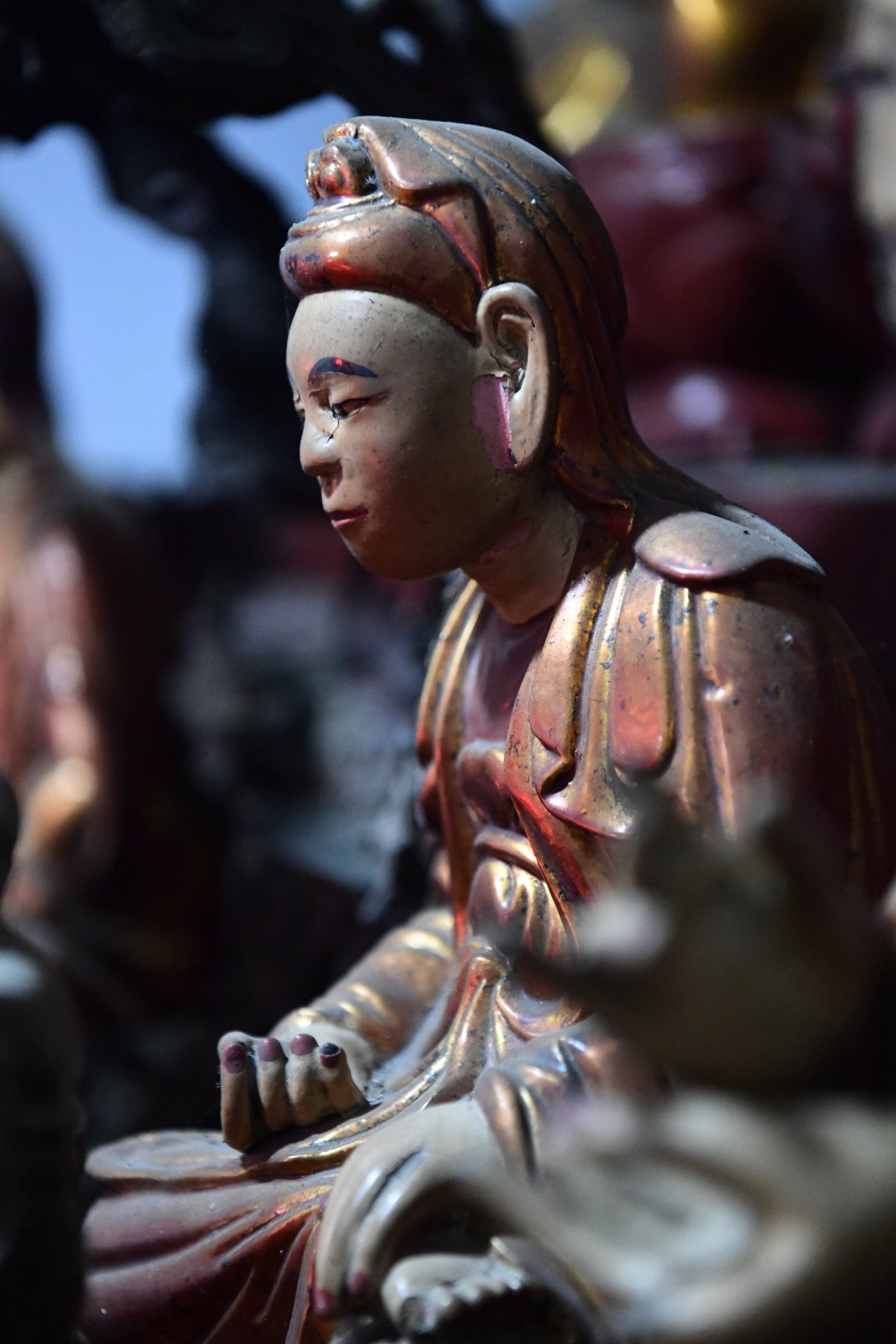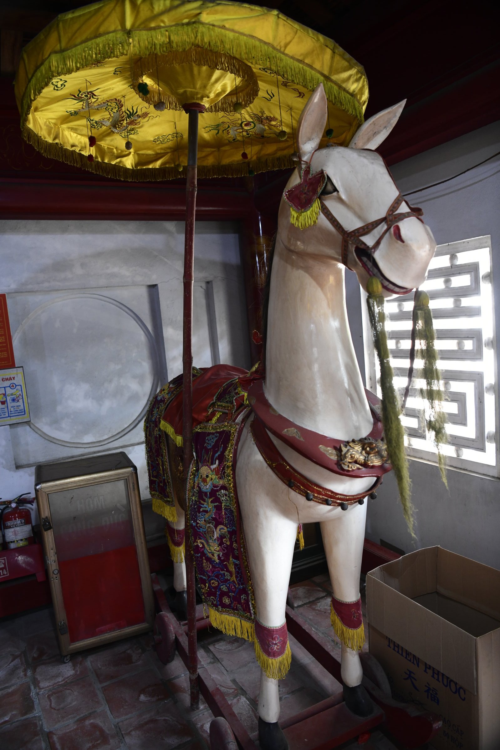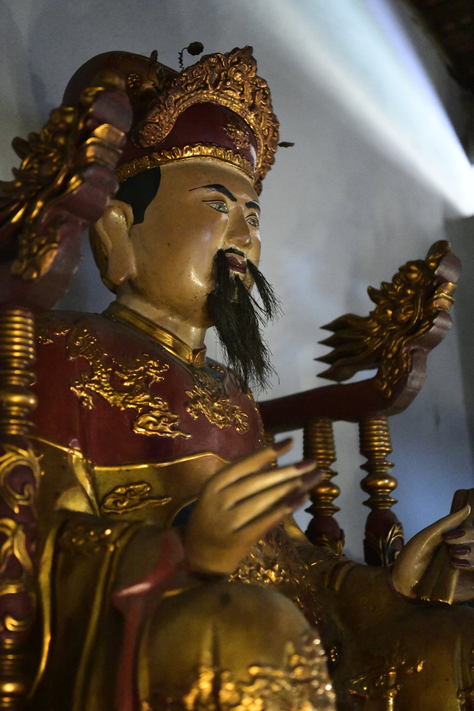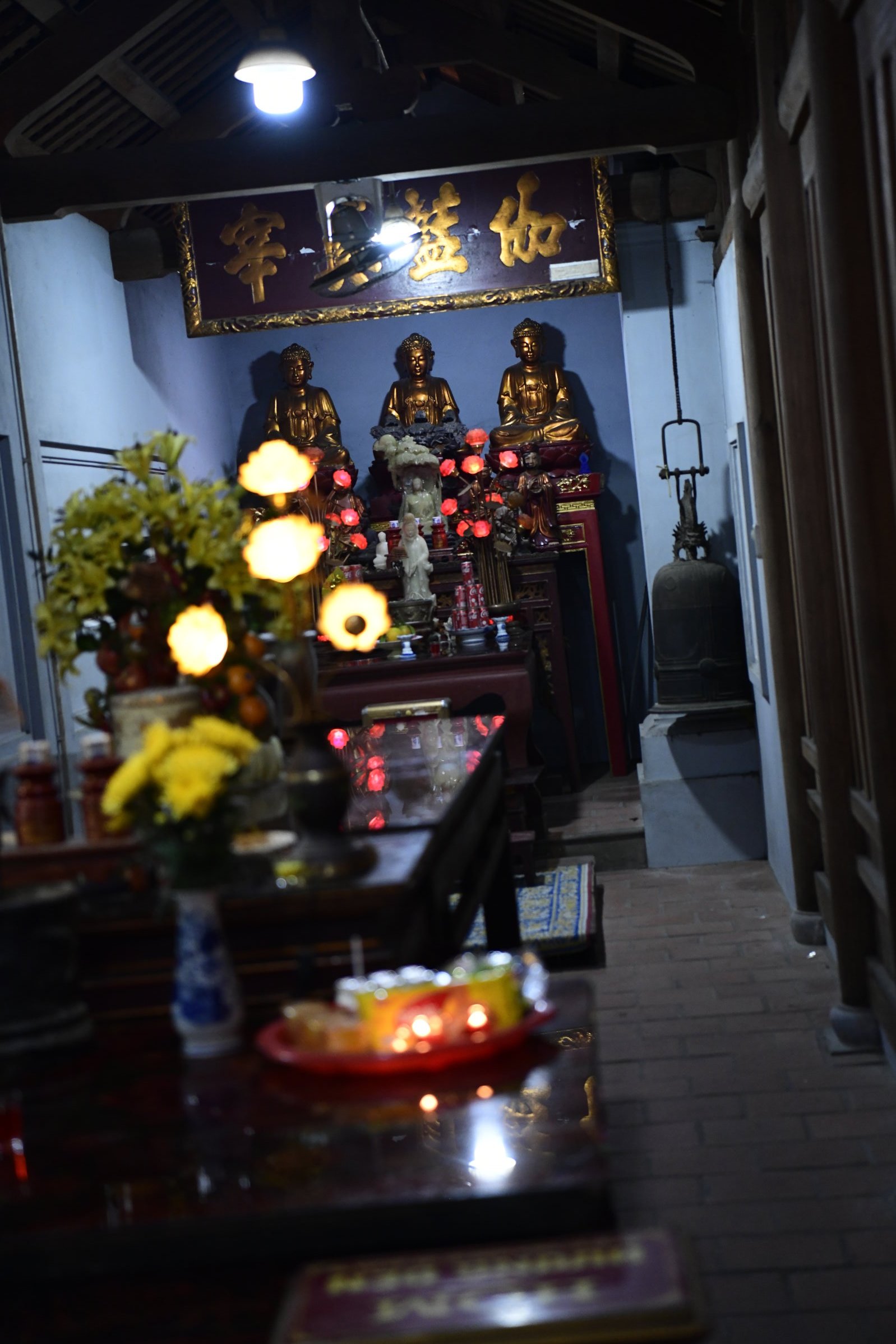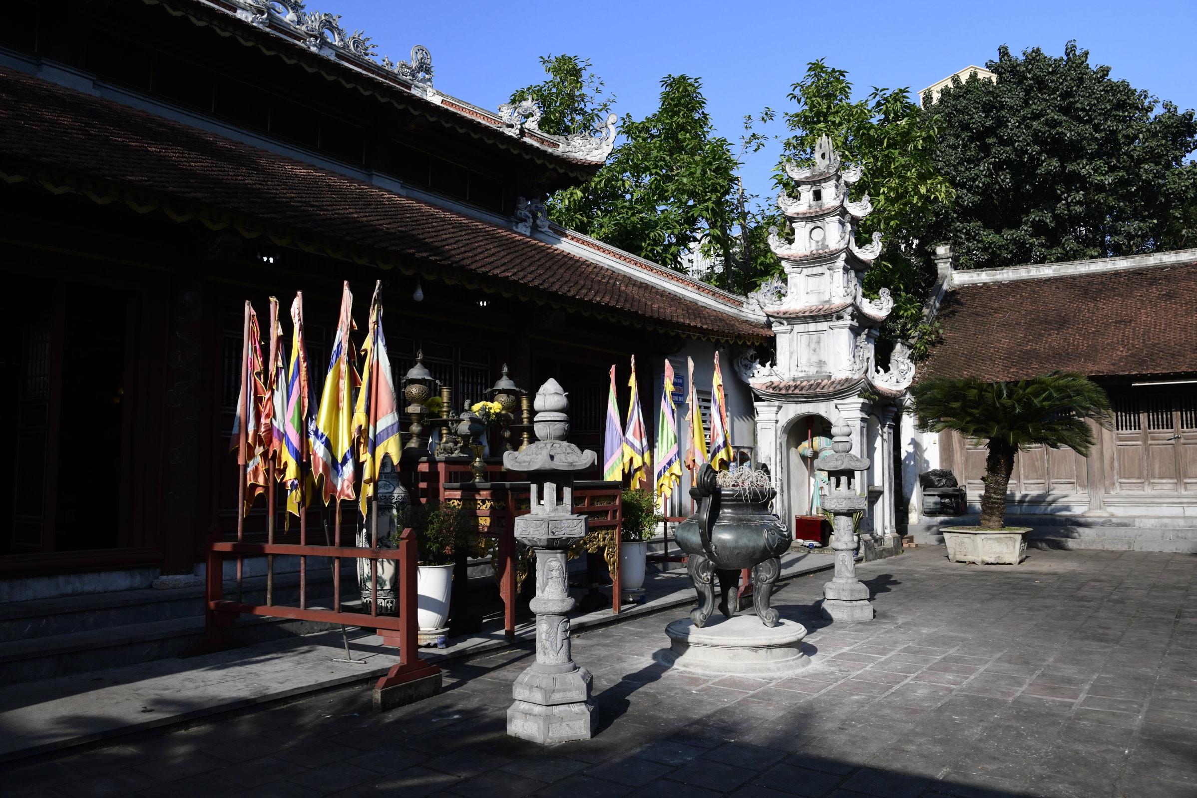 Einfach in die gegenüberliegende Querstraße laufen, dann befindet sich dort der alte Hong Son Tempel. Die Anlage mit drei Hallen ist der Gottheit Quan Van Truong (General Guan Yu) gewidmet und hat auf wundersame Weise die Zerstörungen der Stadt überlebt, die zweimal – erst von den Franzosen, dann von den Amerikanern – dem Erdboden gleich gemacht wurde.