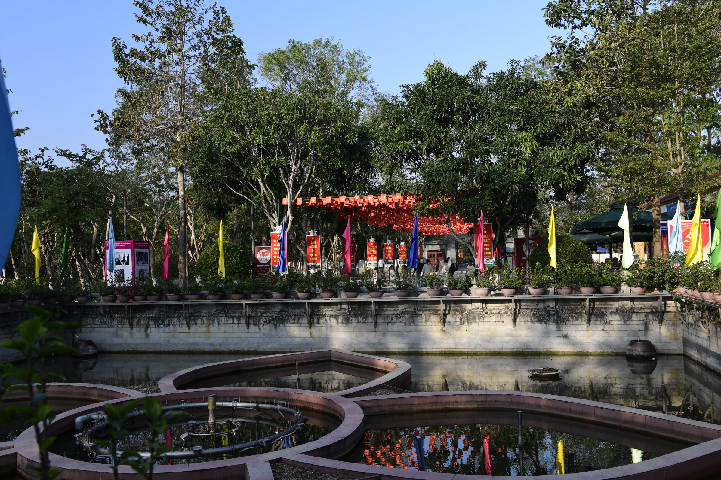 Khu di tích lịch sử Kim Liên entpuppt sich als weitläufiges Areal mit mehr als nur der „Geburtshütte“ des vietnamesischen Führers. Der Rundweg führt vorbei an den Bambushütten seines Großvaters, Vaters, weiterer Nachbarn und schließlich seiner Mutter. Ihm selbst sind dann drei weitere Gebäude gewidmet.