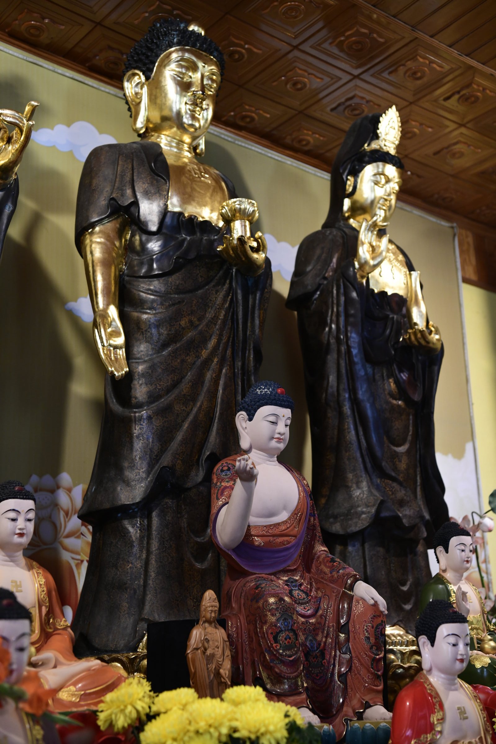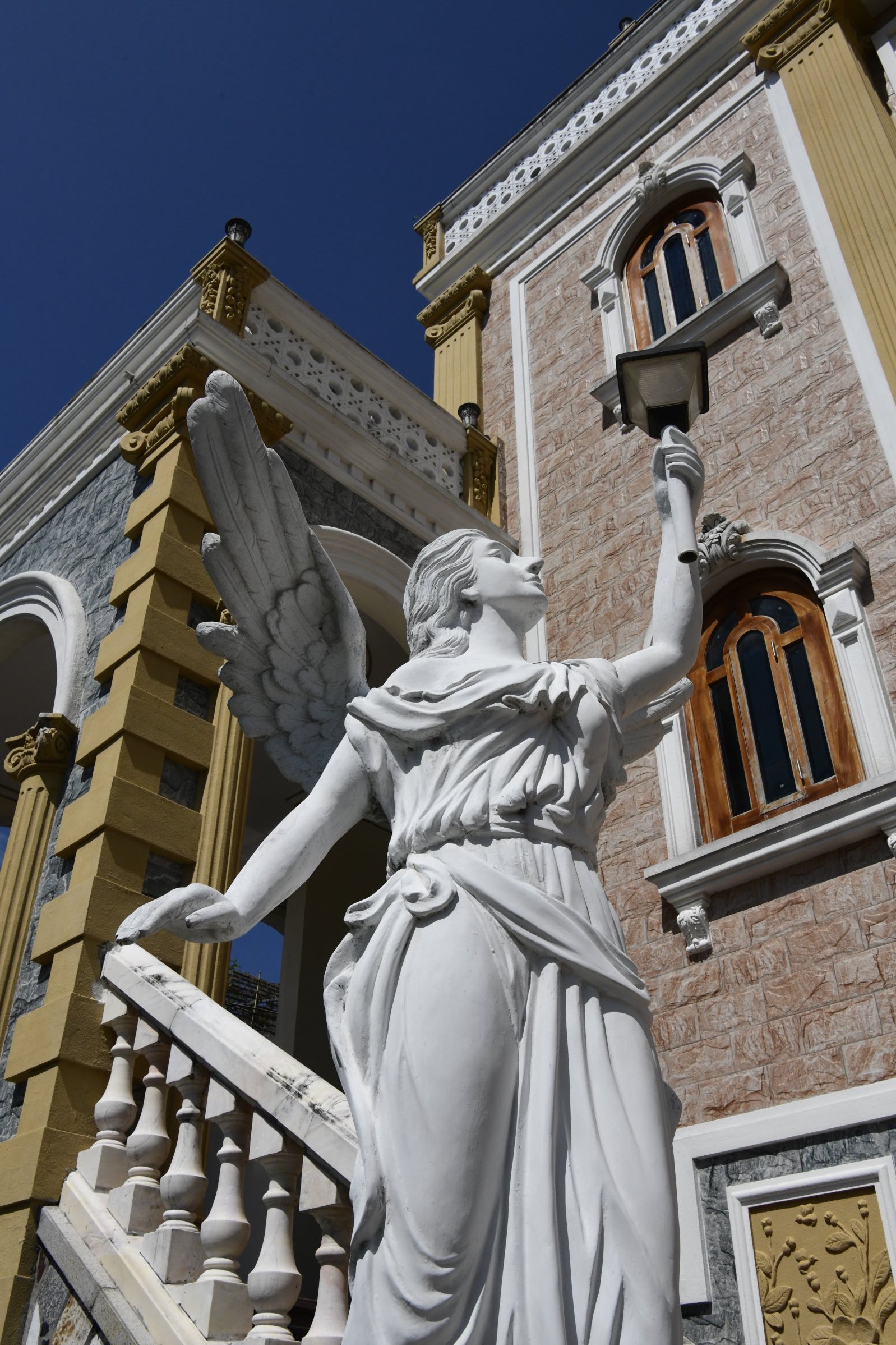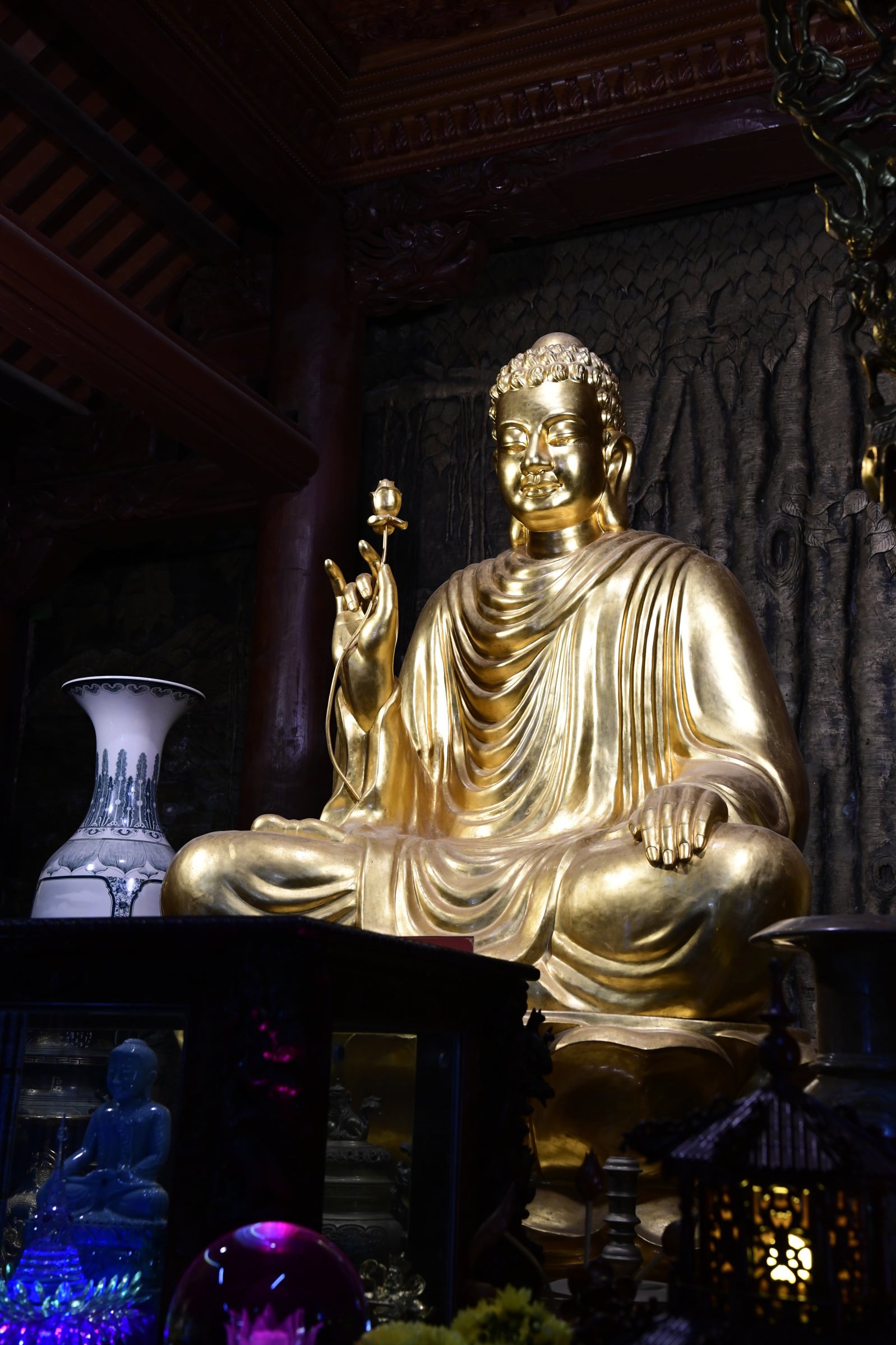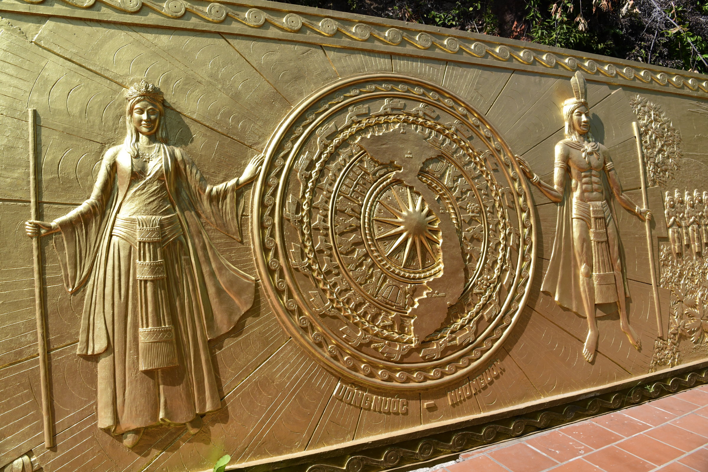 Bevor es dann endgültig Richtung Norden geht, macht Tai noch einen Abstecher zum Hộ Quốc Tempel, wo es einmal mehr treppauf geht, bis man oben bei einer strahlend weißen Lady Buddha Statue angelangt ist, die bei der Anfahrt bereits aus der Ferne zu sehen war. Am Ende der ersten rund 60 Stufen kann man nicht nur kurz verschnaufen, sondern auch gegen eine kleine Spende rote Bänder kaufen und mit seinen Wünschen versehen. Die werden dann an ein Gitter geknotet, damit der Wind sie zu der Gottheit emporträgt. Irgendwie gefällt mir diese Variante besser, als Schlößer an Brückengeländer zu schließen.