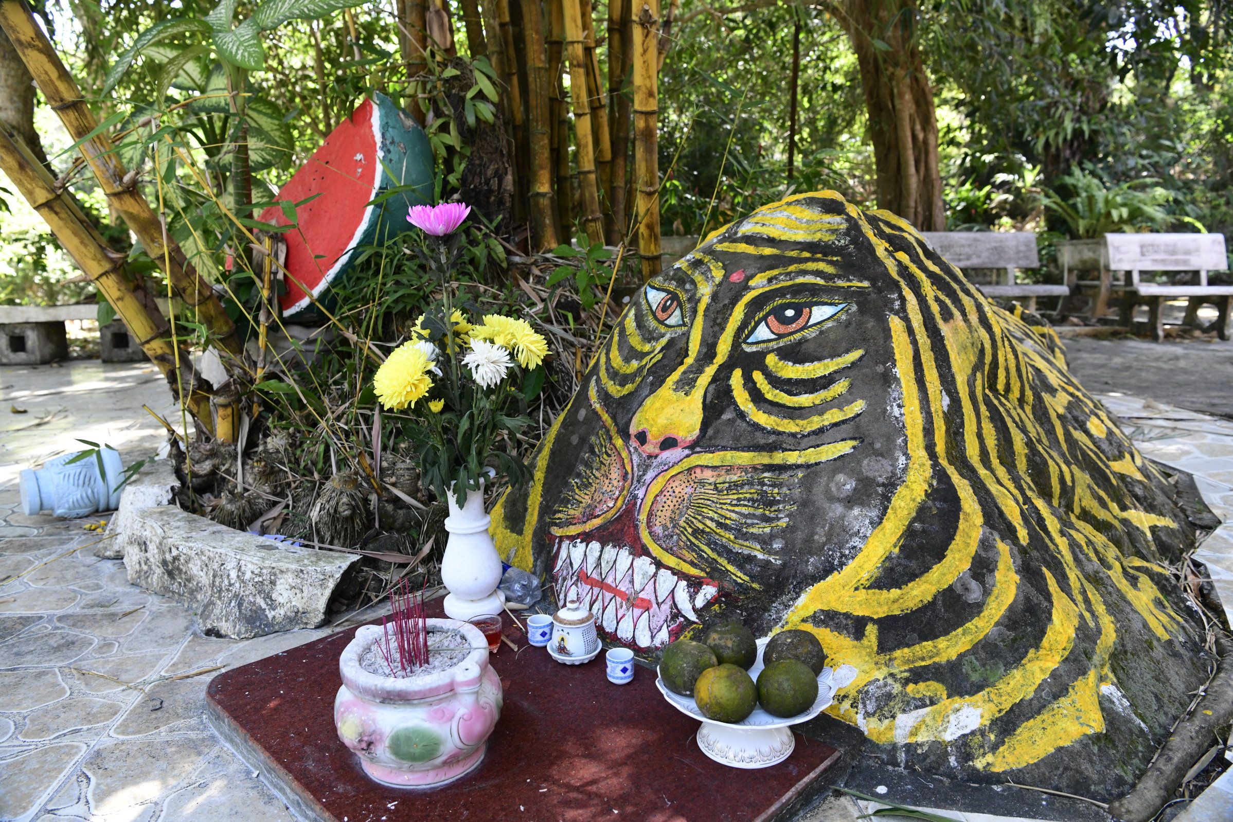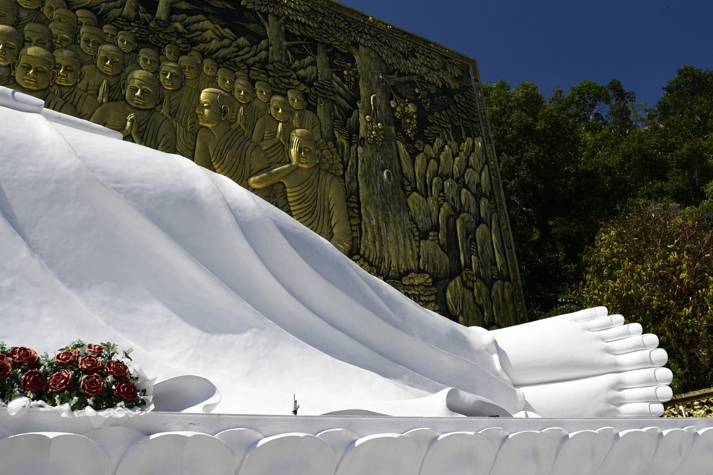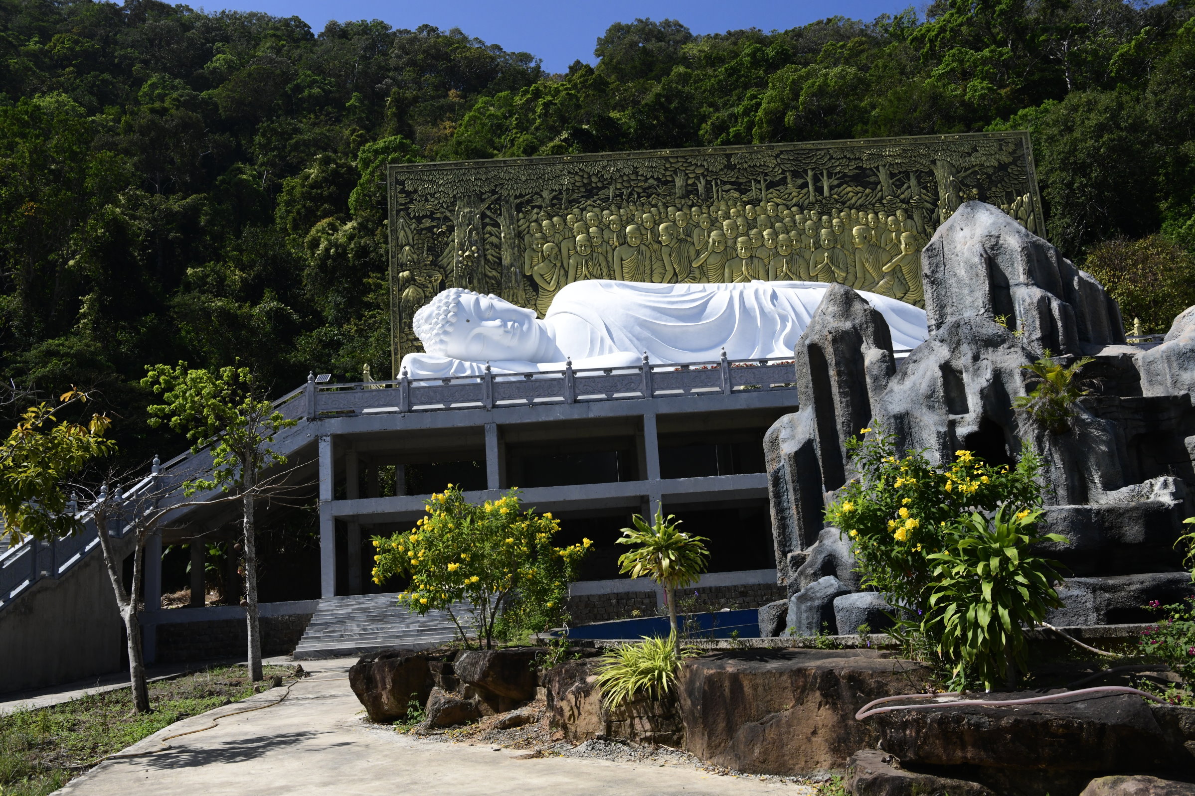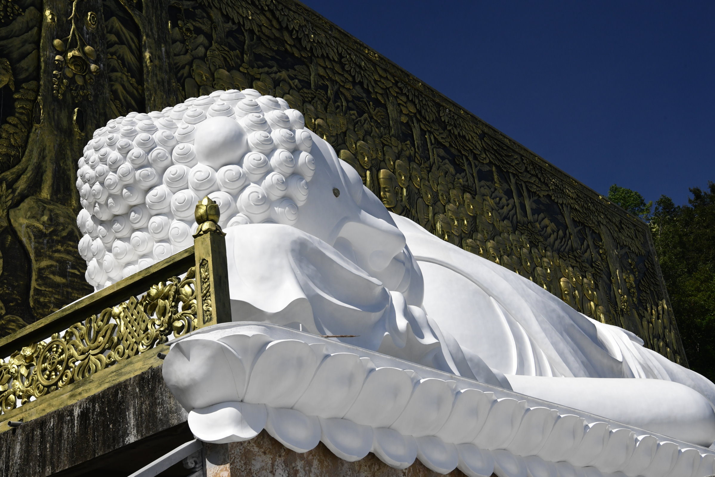 Da wir uns für diesen „Handwerks“-Besuch zunächst in Richtung Süden bewegt haben, macht Bao einen weiteren Abstecher weiter südlich und es geht ein wenig bergauf. Die erst 100 Jahre alte Su Muon Pagode besteht aus einer weitläufigen Klosteranlage an einem Berghang. Viele Stufen führen zum Ziel: Einem beeindruckenden liegenden Buddha, der am Ende der Treppen wartet. Danach sind wir zwar ein wenig erschöpft, aber immer noch aufmerksam genug, um auf der Rückfahrt um einen weiteren Stopp zu bitten.