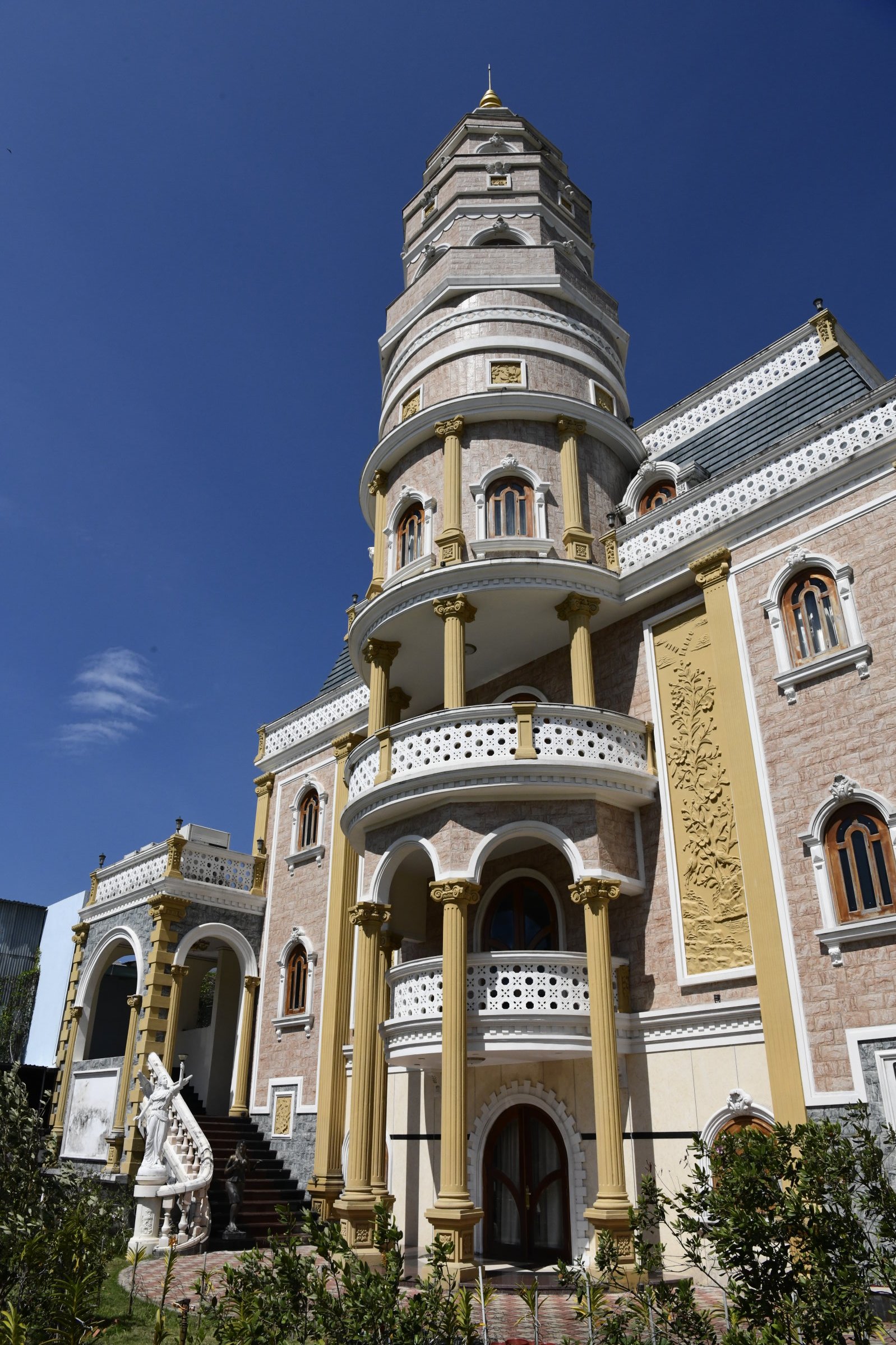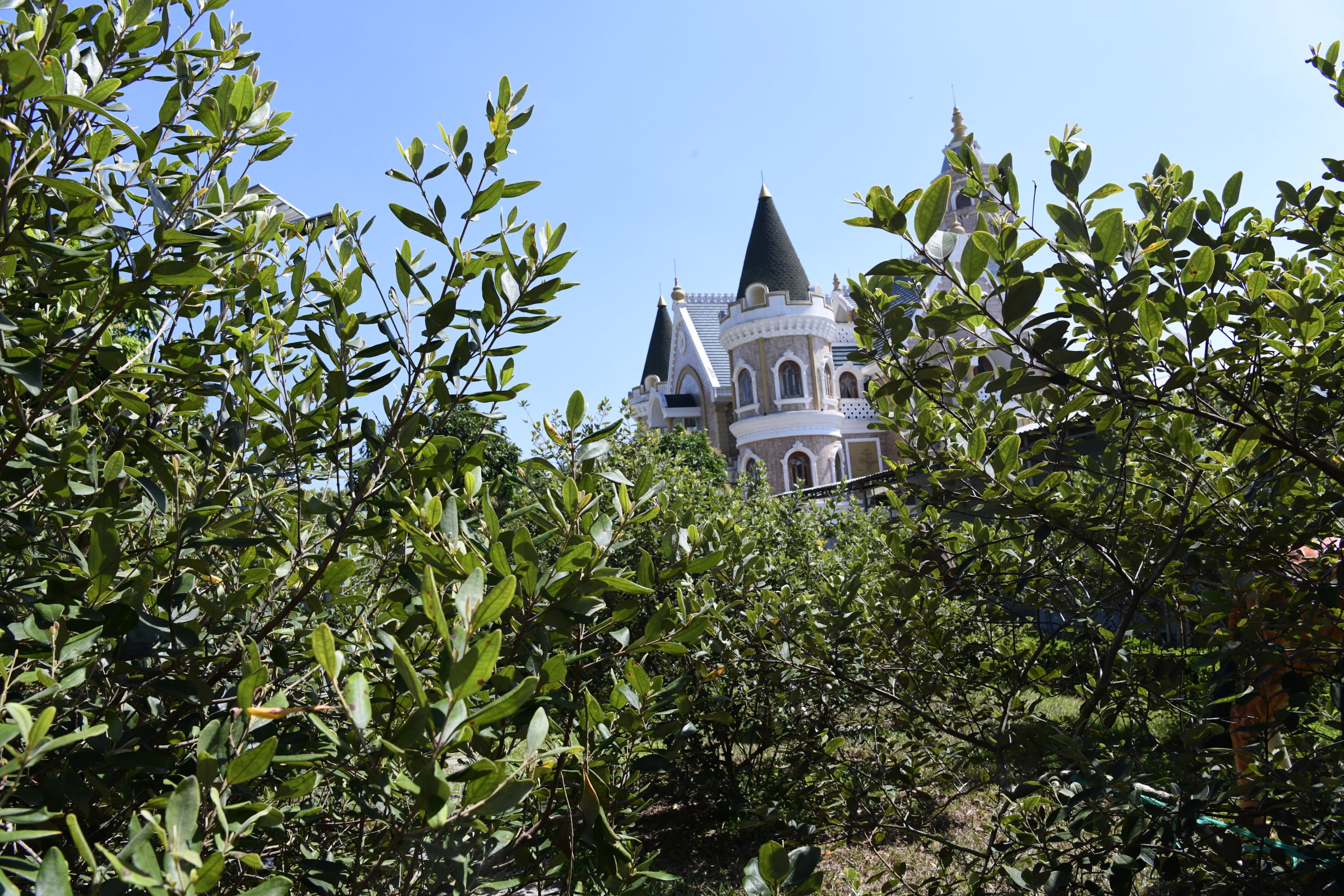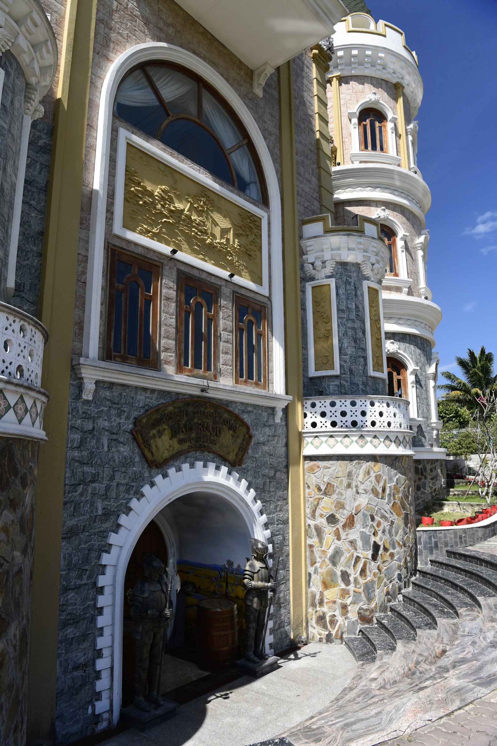 Hinter den Büschen und Mauern am Straßenrand ist ein äußerst merkwürdiges Gebäude zu erkennen, das einem Märchenschloss oder einer Burg ähnelt. Es ist weder das eine noch das andere, sondern gehört dem Hersteller eines besonderen Beeren-Weins, einer weiteren Insel-Spezialität. Der Wein wird aus den kleinen, rötlichen Beeren der Sim-Myrte gekeltert. Der Weinkeller von Vườn Sim Thành Long bleibt uns zwar verschlossen, eine kleine Weinprobe ist im Verkaufsraum aber dennoch möglich. Für Naschkatzen gibt‘s dort auch eine alkoholfreie Variante des eingedickten Safts der aromatischen Früchte in Form von Gelee-Konfekt. Der Geschmack ähnelt stark dem von Blaubeeren, ist nur etwas intensiver…