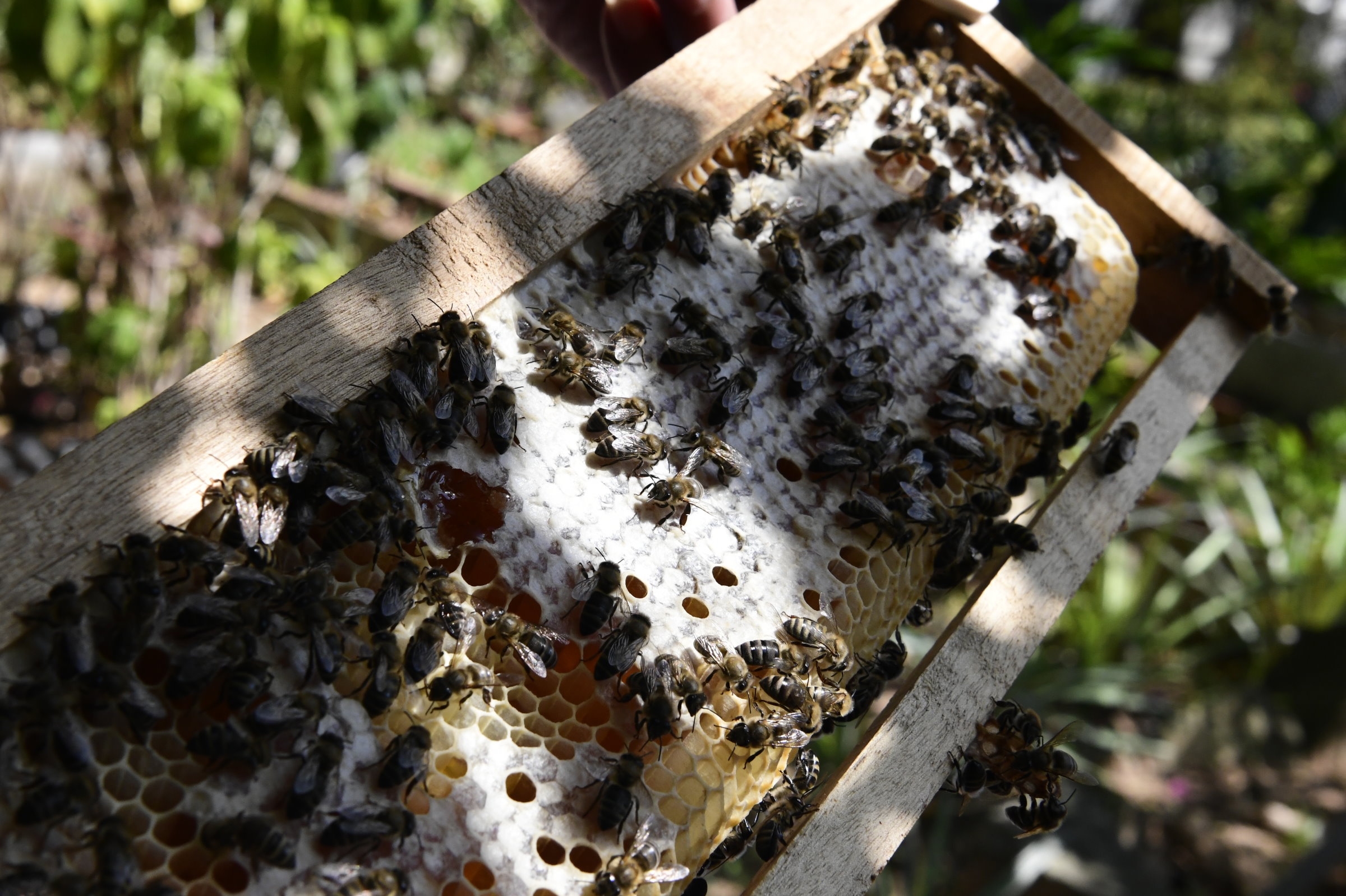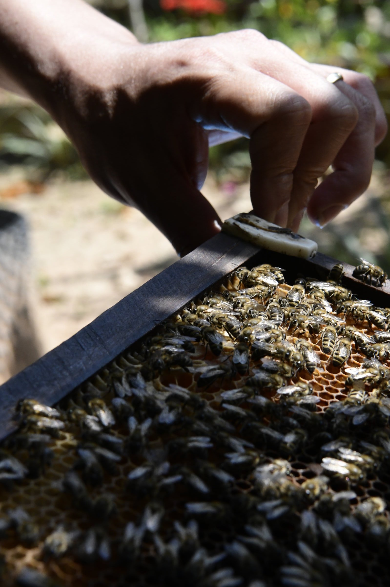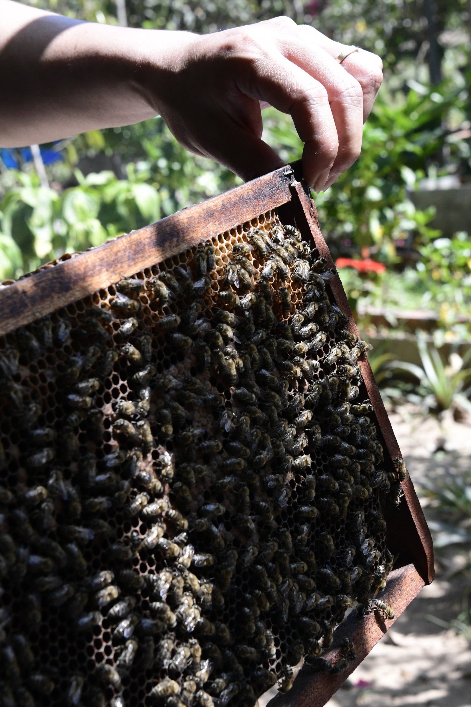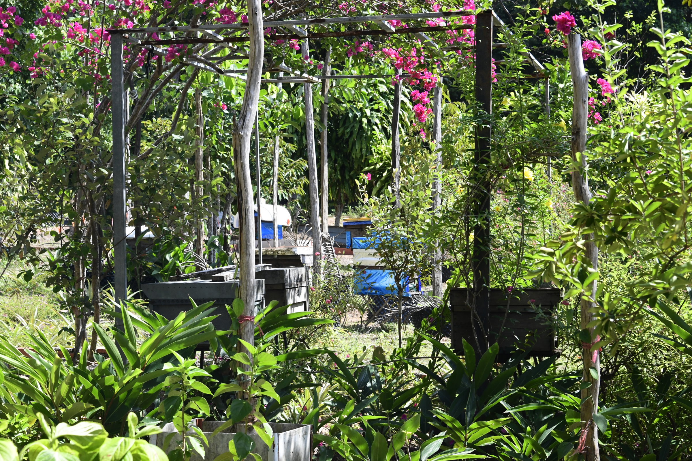 Und weil wir schon beim Verkosten lokaler Produkte sind, folgt kurz darauf noch ein weiterer Zwischenstopp bei einer Wildhonig-Farm (Công Ty TNHH Mật Ong Rừng Phú Quốc). Nachdem ich einen Hut mit Netz übergestülpt bekommen habe, bringt mich der Imker zu den Bienenstöcken, zieht vorsichtig Wabe für Wabe heraus, bis er mir schließlich eine mit der von zahlreichen Arbeiterinnen umringten Königin zeigt. Anschließend folgt im Verkaufsraum die übliche Verkostung. Die hat in sich. Eine Aromatisierung mit Zitronen ist noch nichts Besonderes, mit Ingwer ebenfalls, aber ein mit Knoblauch angereicherter Honig ist dann doch eine überraschende Attacke auf die Geschmacksnerven. Umami geht anders…
