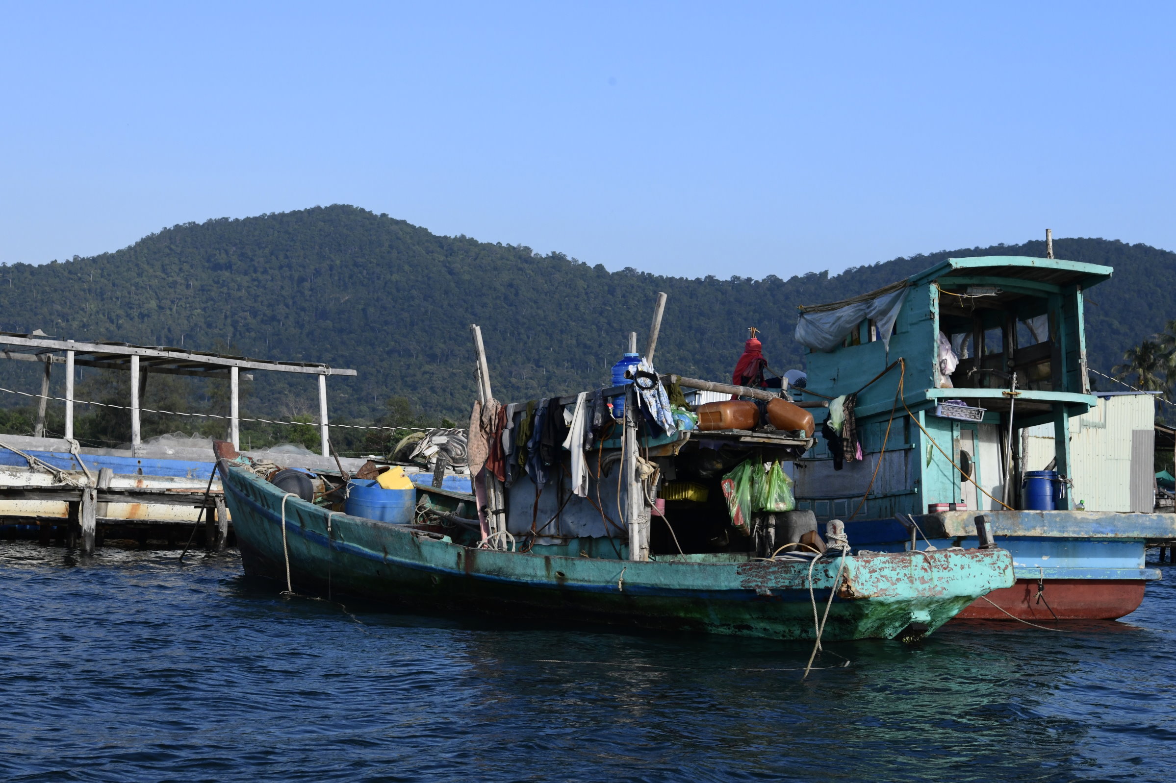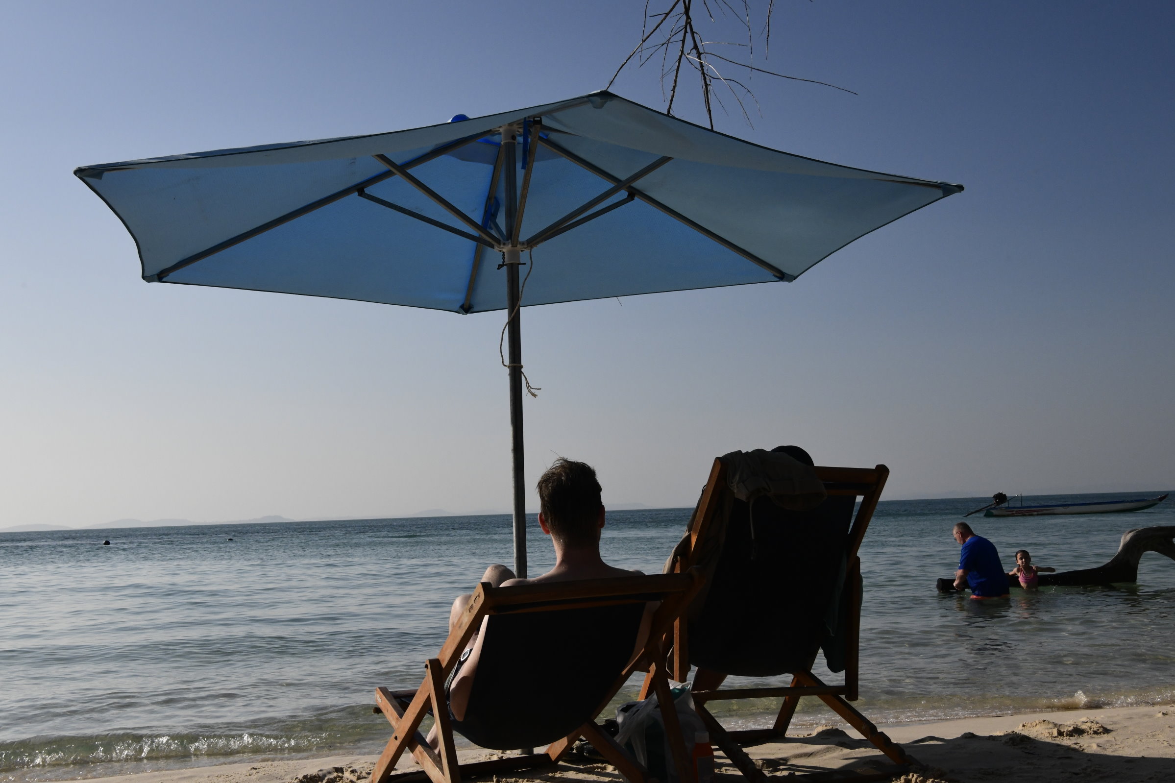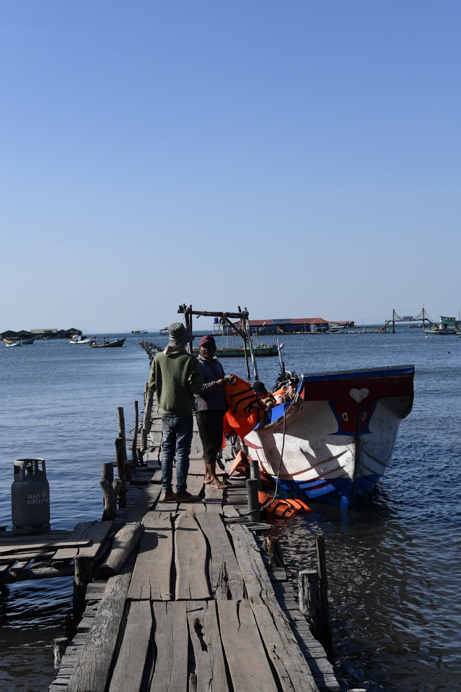 Gegen 14 Uhr fahren wir dann weiter Richtung Seestern-Strand, der nur per Boot erreichbar ist . Den Anlegeplatz erreichen wir eine knappe Stunde später und kaufen uns zwei Tickets für die Überfahrt (ca. 20 Euro). Eine Viertelstunde später wartet dann ein sich endlos dahinziehender schmaler Steg. Wenn dann bei einer Breite von vielleicht 30 Zentimetern auch noch Gegenverkehr kommt, wird der Weg zum Balanceakt und ich bin einer entgegen gestreckten Hand außerordentlich dankbar, die meinem schwankenden Gleichgewichtssinn wieder Sicherheit verleiht,