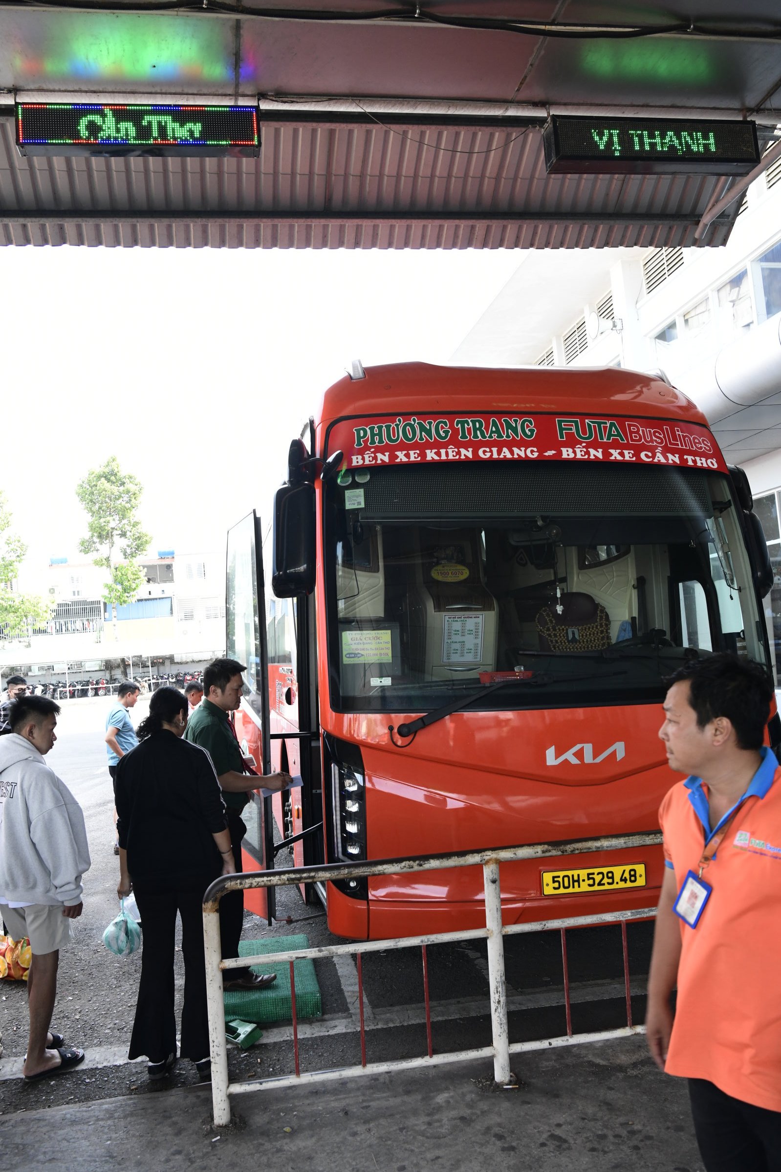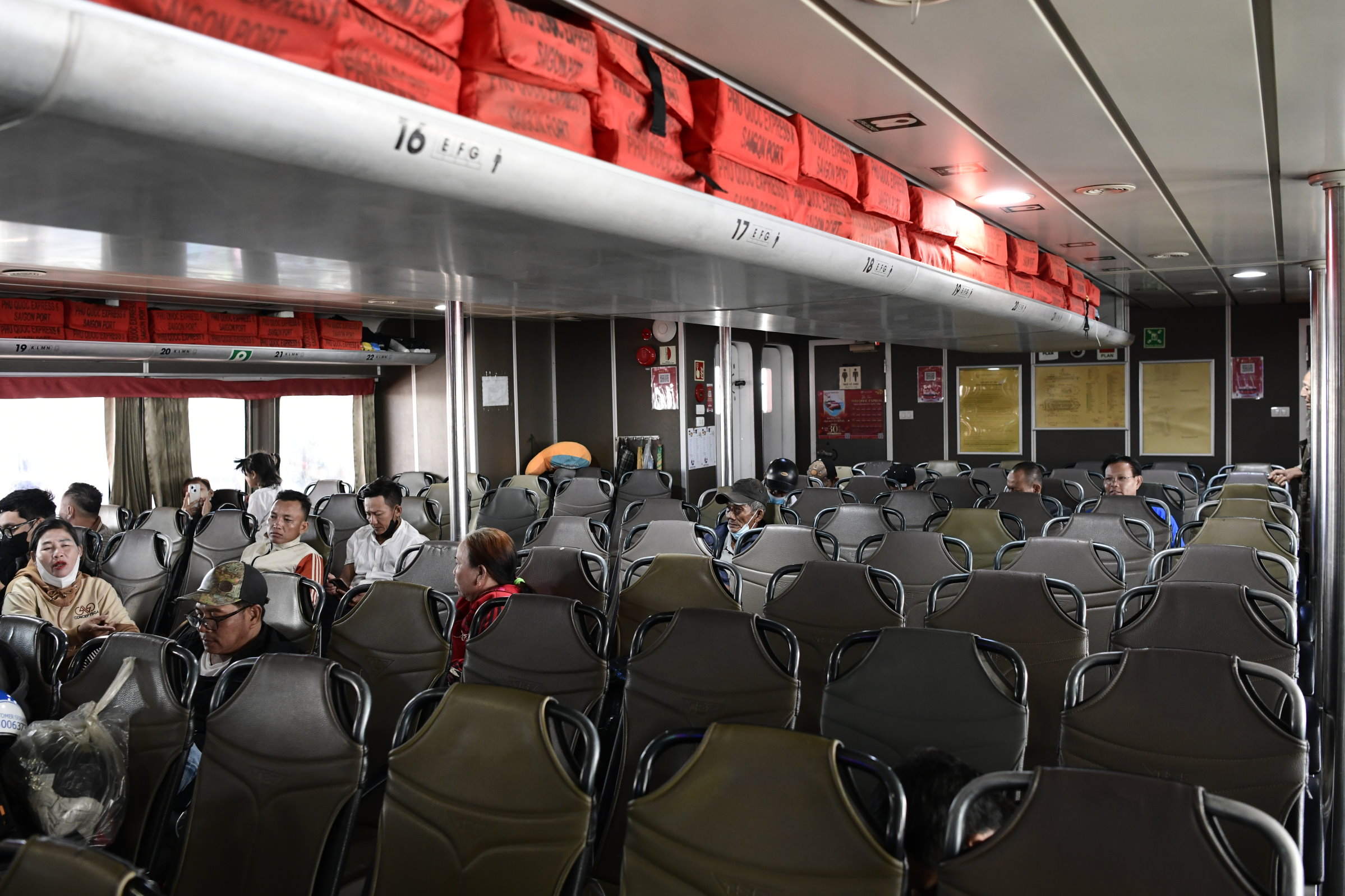 Der Beginn der Fahrt verläuft etwas ruppig, da der Katamaran trotz seiner stabileren Wasserlage bei der anfänglich ziemlich rauen See gut durchgeschüttelt wird. Das ändert sich zum Glück nach einer Stunde und der Rest der 3 Stunden 40 Minuten dauernden Reise übers Meer ist schon wieder ruhiger. Am Hafen von Rach Gia warten schon die Taxi-Geier und bieten zu Grab-Preisen Fahrten zum Busbahnhof und auch zu unserem nächsten Reiseziel Can Tho. Wir wollen mit dem Bus weiterfahren, der letztlich nur ein Drittel des geforderten Preises kostet. Zum Glück befindet sich direkt am Fährterminal auch eine Verkaufsstelle der Futa-Bus-Line.