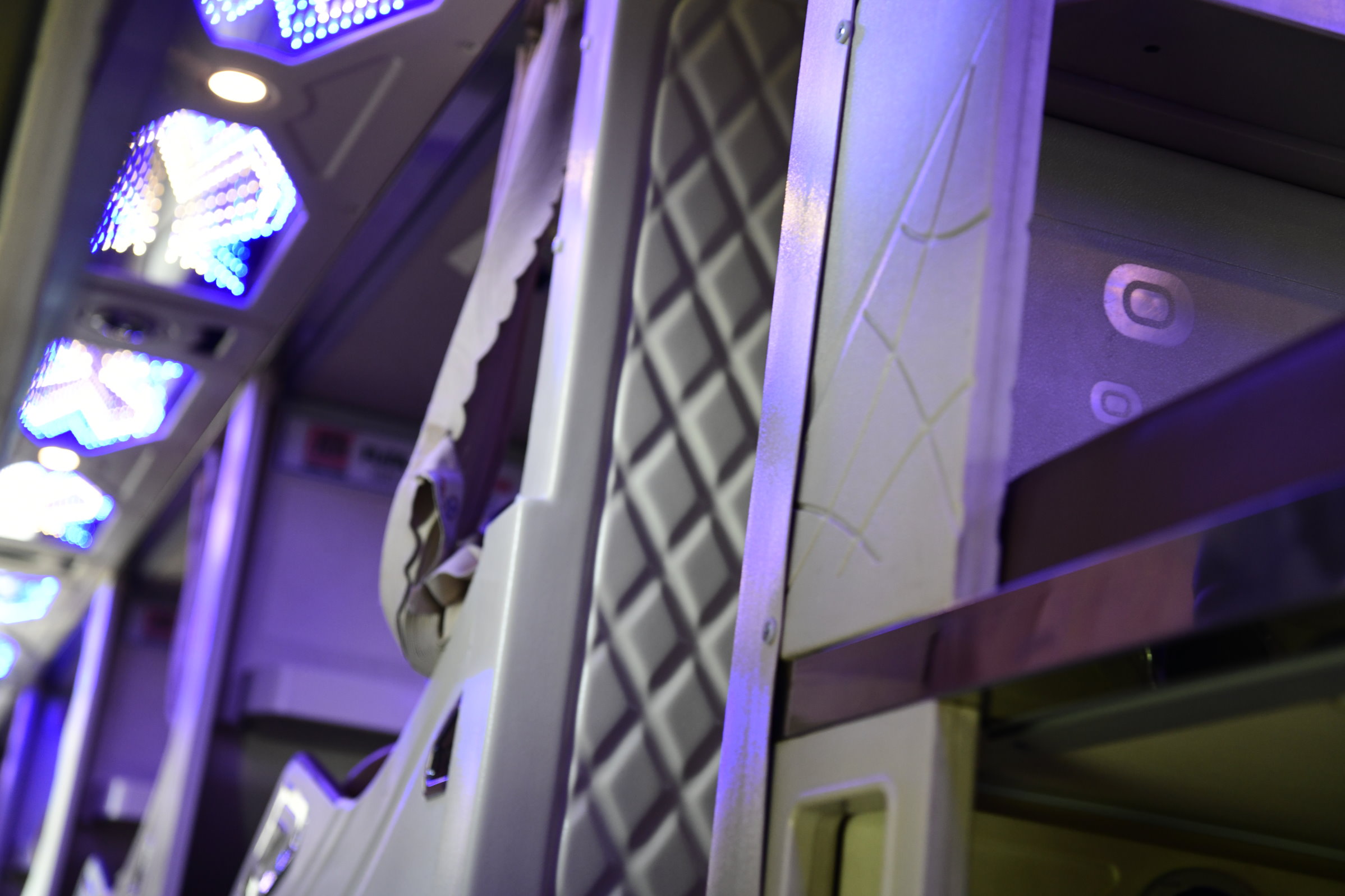 Nicht verstanden haben wir allerdings, dass der Bus ein sogenannter „Sleeper“ ist, die Sitznummern A25 und A26 wären da wohl schon ein dezenter Hinweis gewesen, Da die „Liege-Kabinen“ sich auf zwei Etagen befinden (A und B). Eine Alternative mit einem Kleinbus wird nicht angeboten, die zahlreichen Mini-Vans am Bus-Terminal dienen einem anderen Zweck. Mit ihnen werden die Fahrgäste kostenlos an den Hotels eingesammelt.