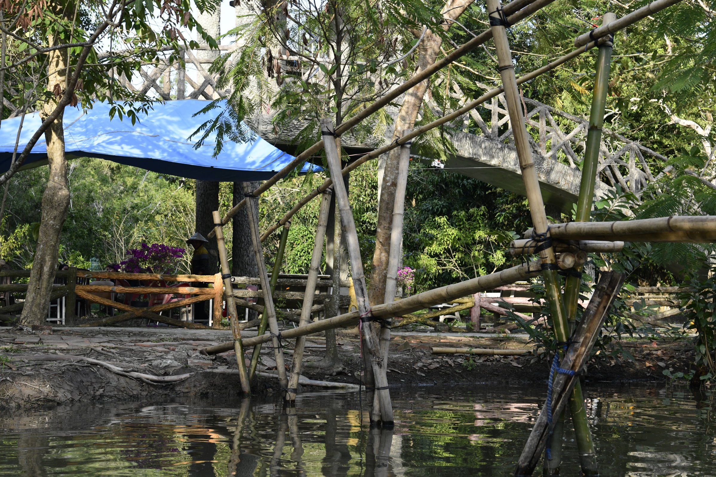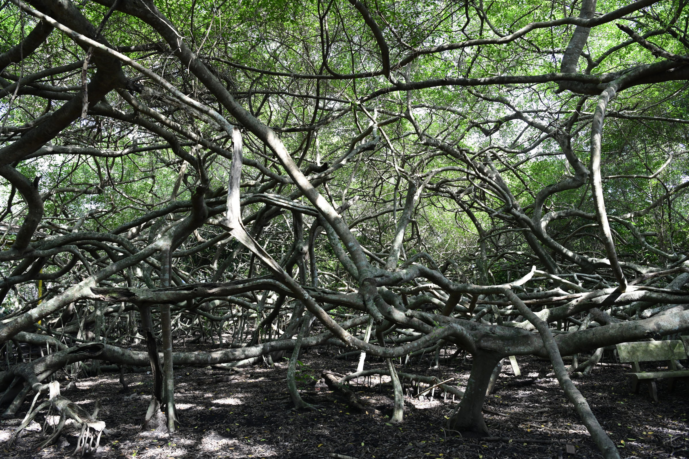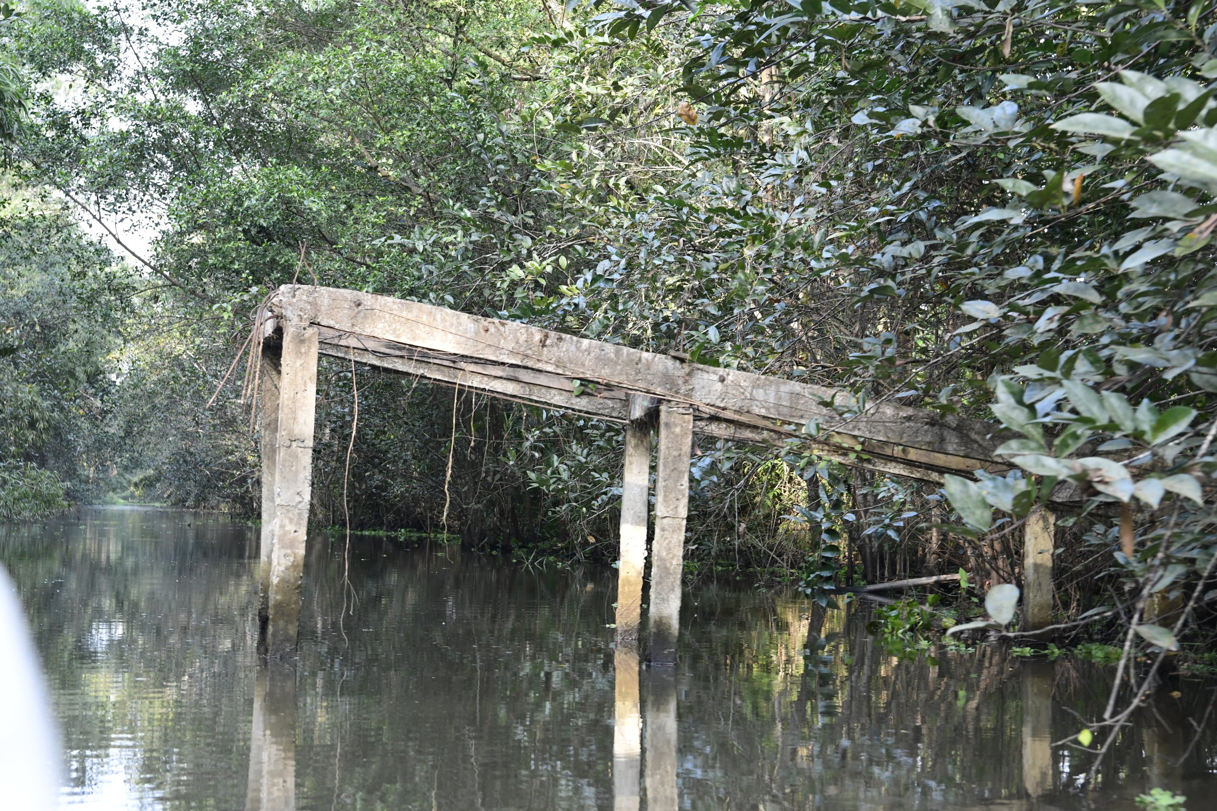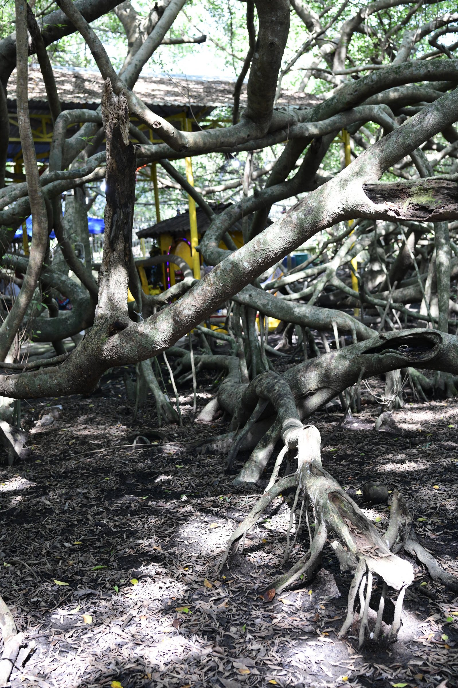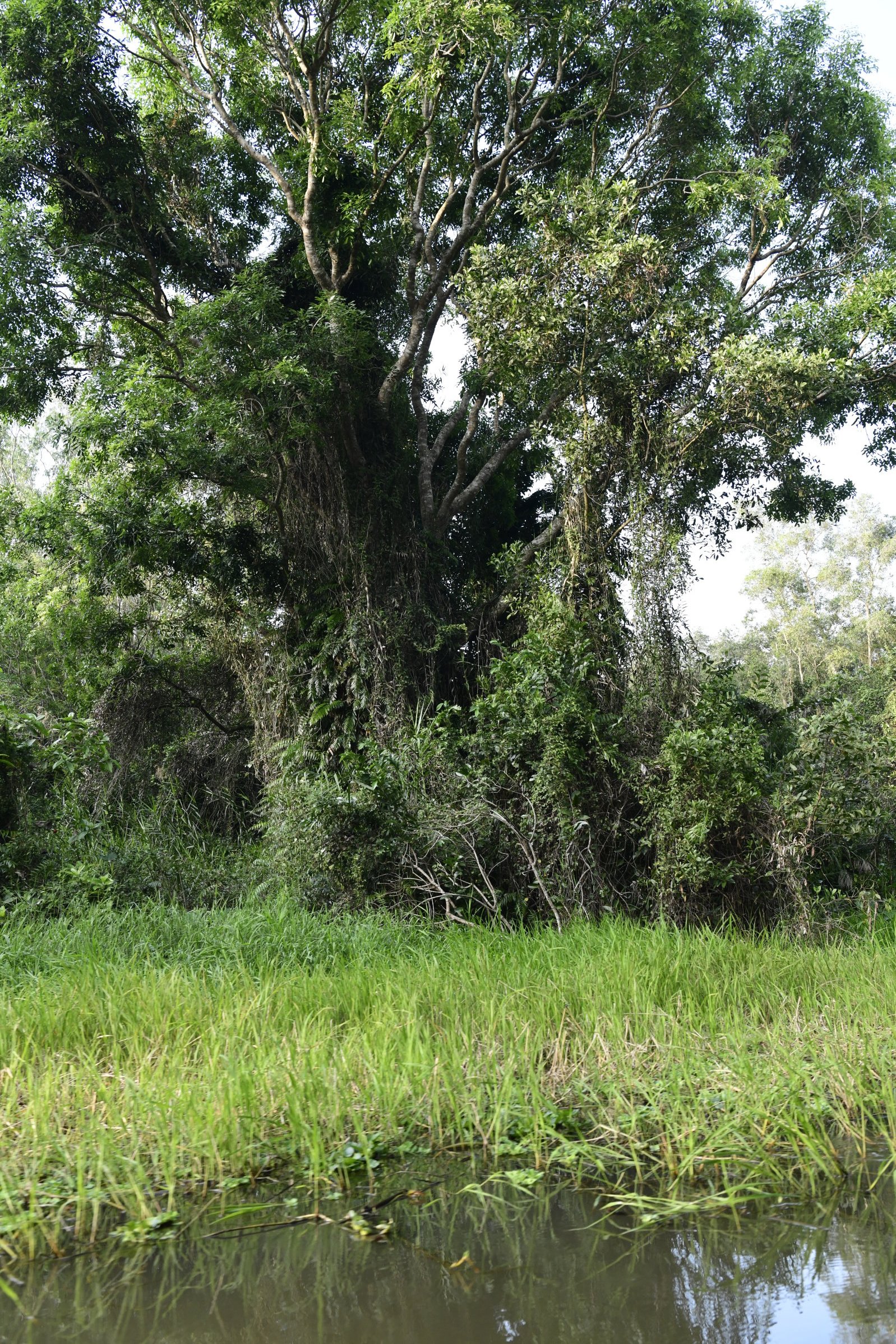 Bevor wir zu der einstündigen Wanderung über einen Rundweg im Park aufbrechen, besuchen wir einen ganz besonderen Baum. Der Khu di tích Giàn Gừa ist ein über 100 Jahre alter Banyan, dessen Äste wie ein riesiges natürliches Netz ein Areal von etwa 3.000 m² bedeckt. Es ist beeindruckend, wie Luftwurzeln in Richtung des Kanals auf der anderen Seite des Weges streben und durch Hindernisse regelrecht hindurchwachsen. .