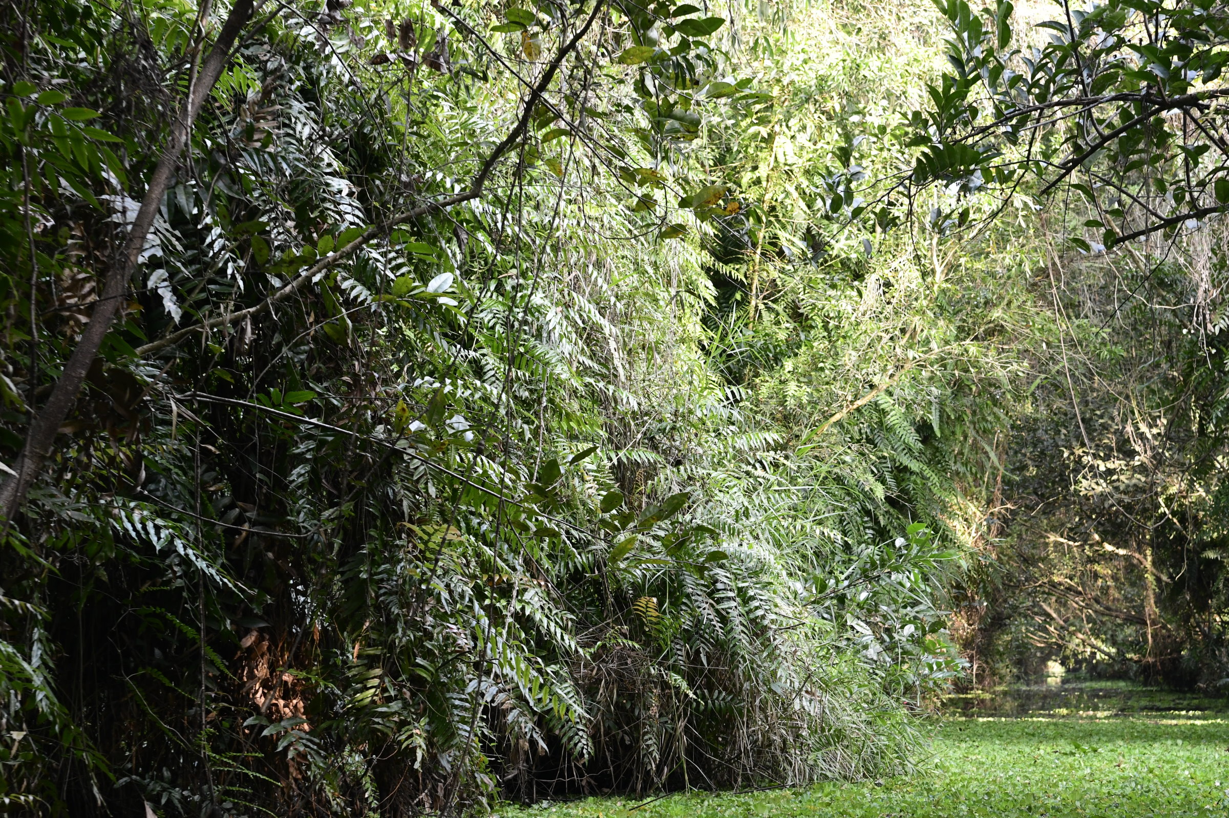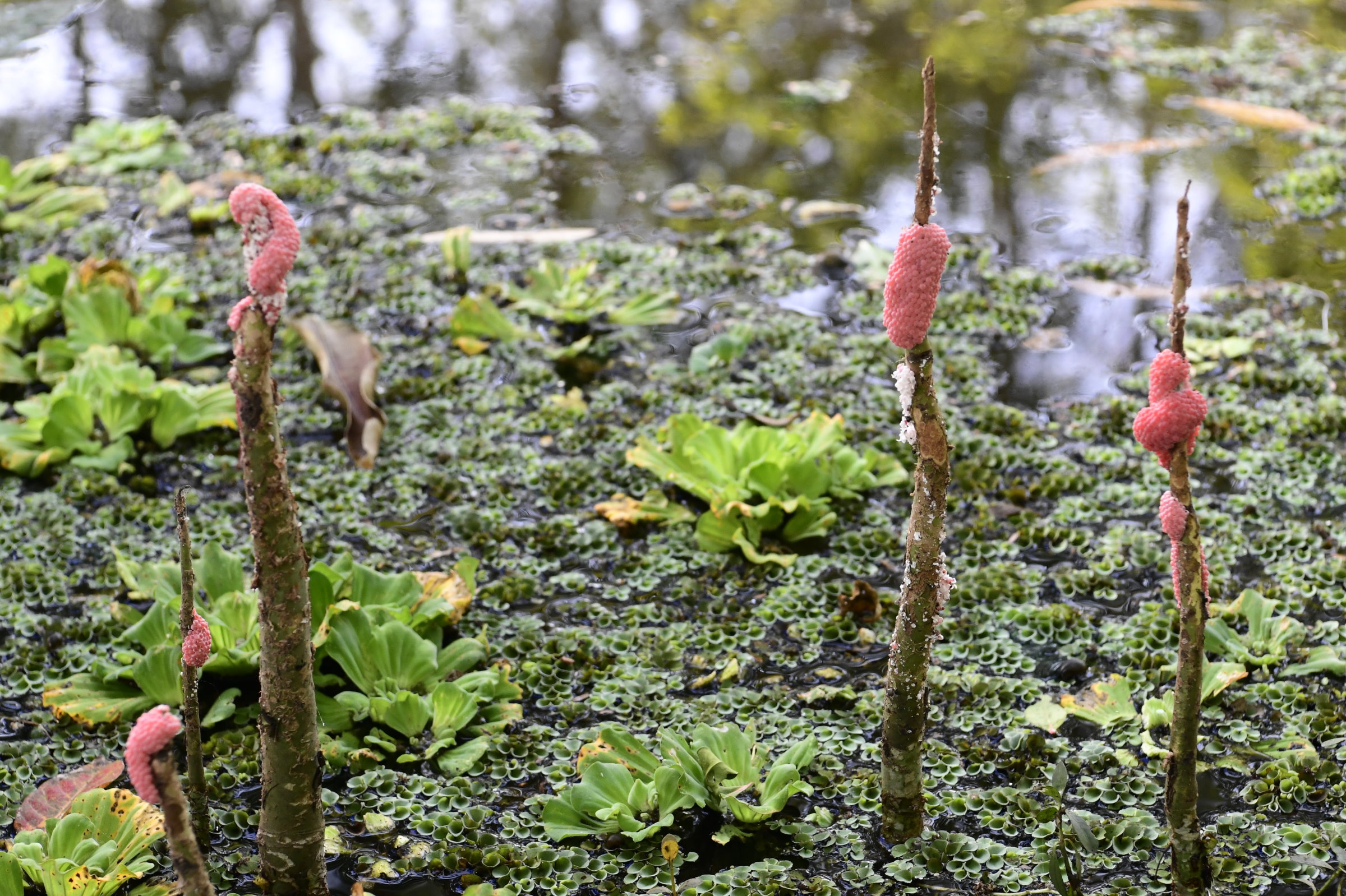 Von der reichhaltigen Biodiversität des Parks mit über 330 Pflanzen und 206 Tierarten begegnet uns in der wildwuchernden Fauna allerdings nur ein paar Perlhühnern und Enten. Die grellrosa Eiballen der Apfelschnecke (Pomacea canaliculata) kommt uns dagegen bekannt vor. Diese invasive Art hat sich von Südamerika aus bis nach Asien verbreitet und ist uns bereits in einem Naturschutzgebiet in Belize begegnet.
