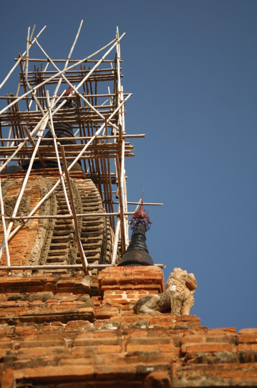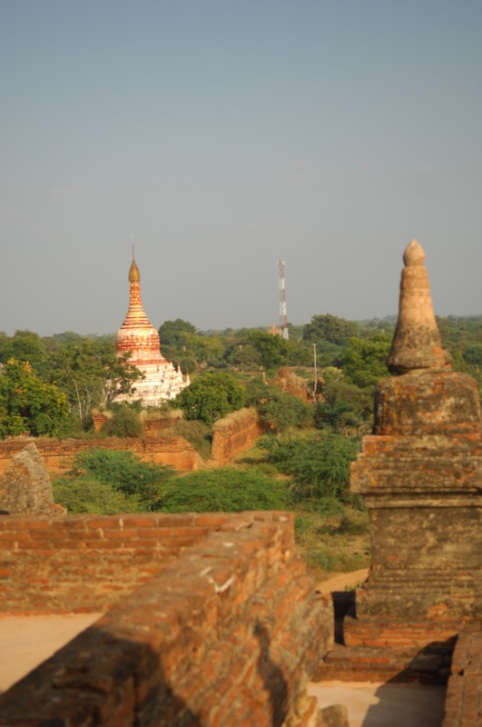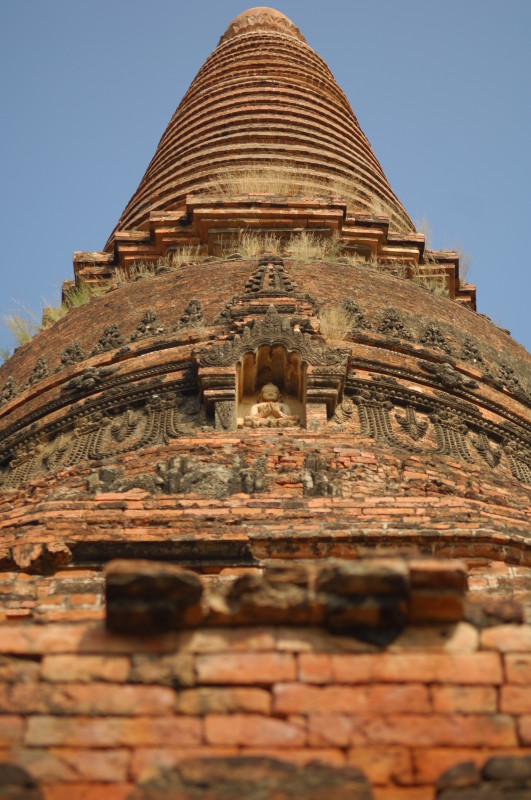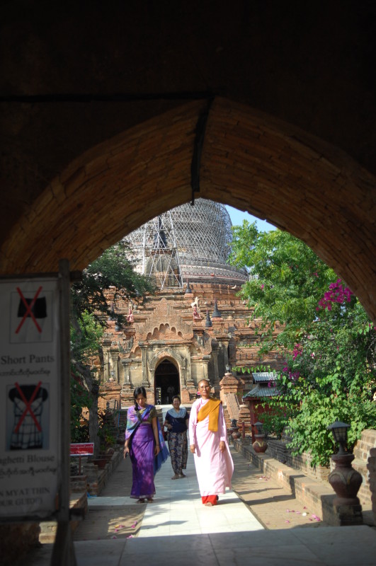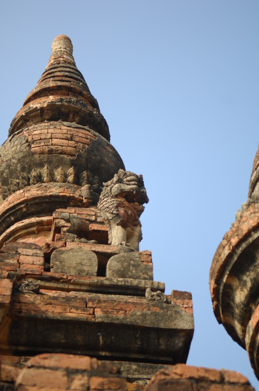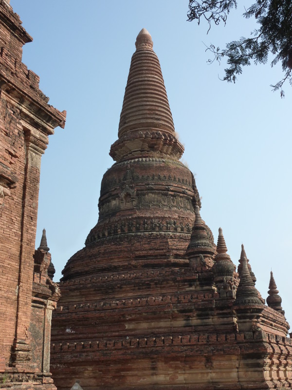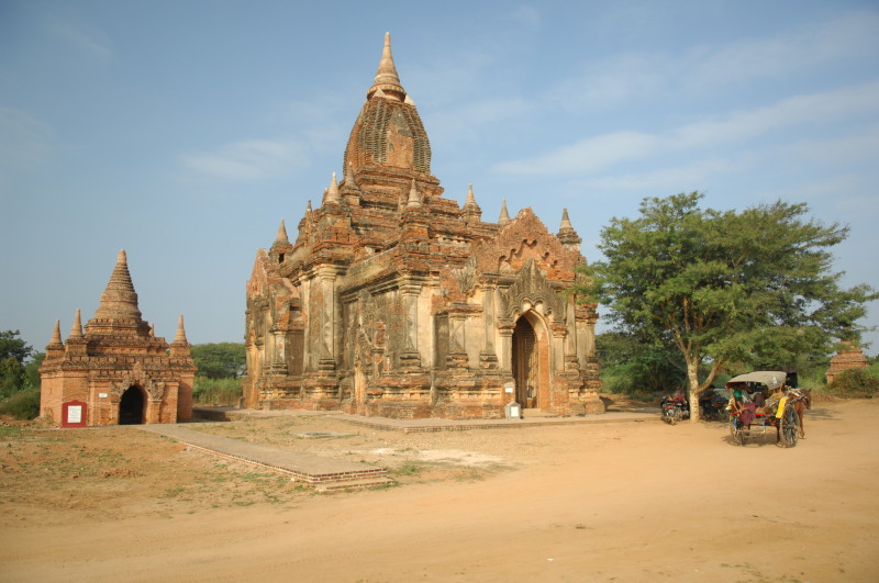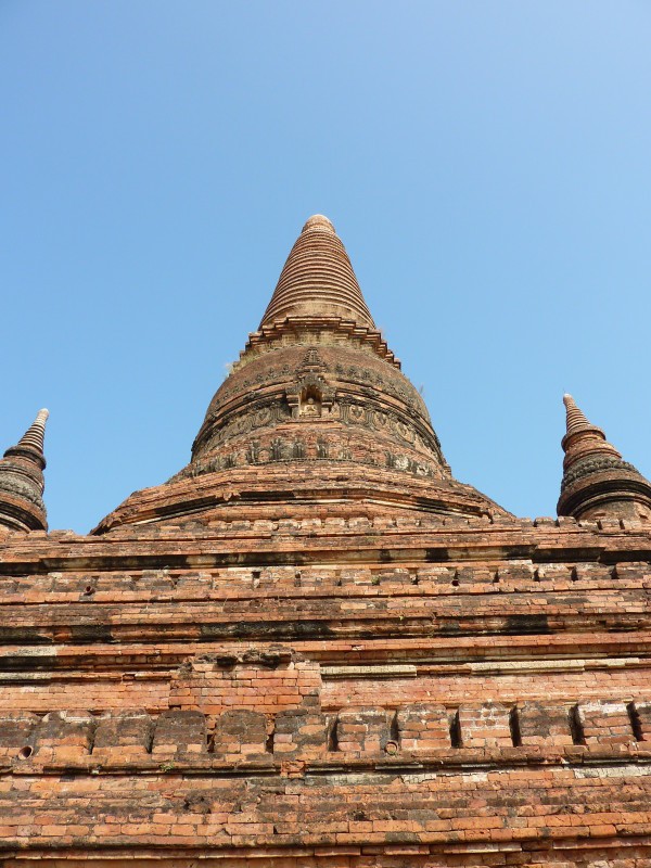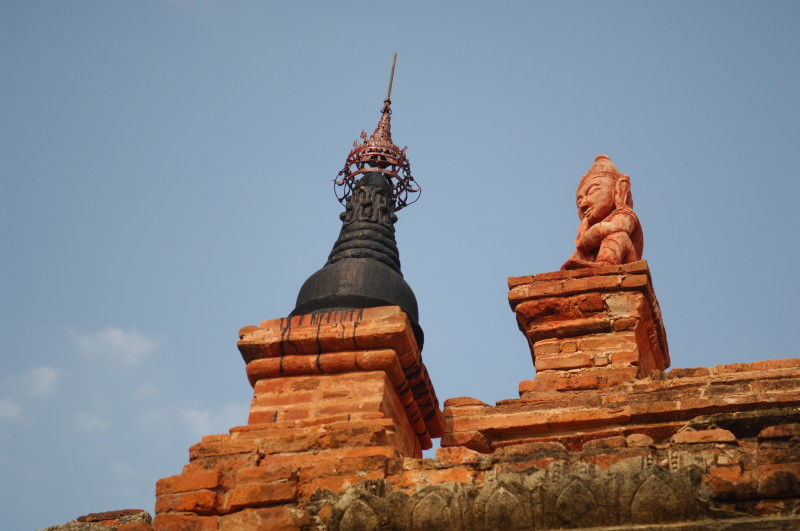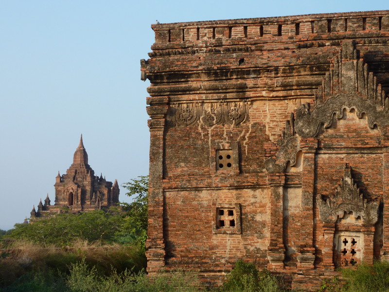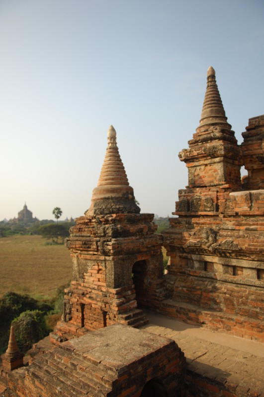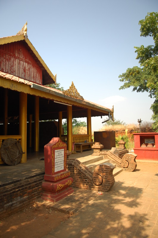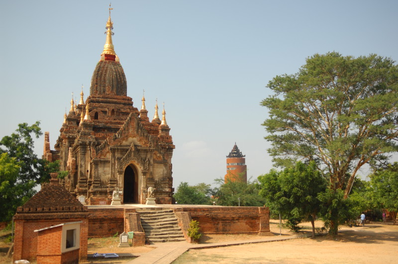 Da sich der Dhammayazika Tempel derzeit nicht als Aussichtspunkt für einen großartigen Blick über die Ebene eignet, kann man zu diesem kleinen Bauwerk ausweichen. Der Aufstieg zur ersten Ebene ist im Inneren zu finden und vergleichsweise leicht zu bewältigen. Die sehr schmale Treppe zur zweiten hier zugänglichen Ebene ist da schon eine echte Herausforderung, zumal die Stufen zum Teil auch noch unterschiedliche Höhen haben. Für eine Umrundung dieser oberen „Etage“ muss man sich durch enge Türmchen quetschen, was aber nur zierlichen Asiaten und sehr schlanken Europäern gelingen dürfte. - Lay Myet Hnar Komplex (11. Jhdt.)