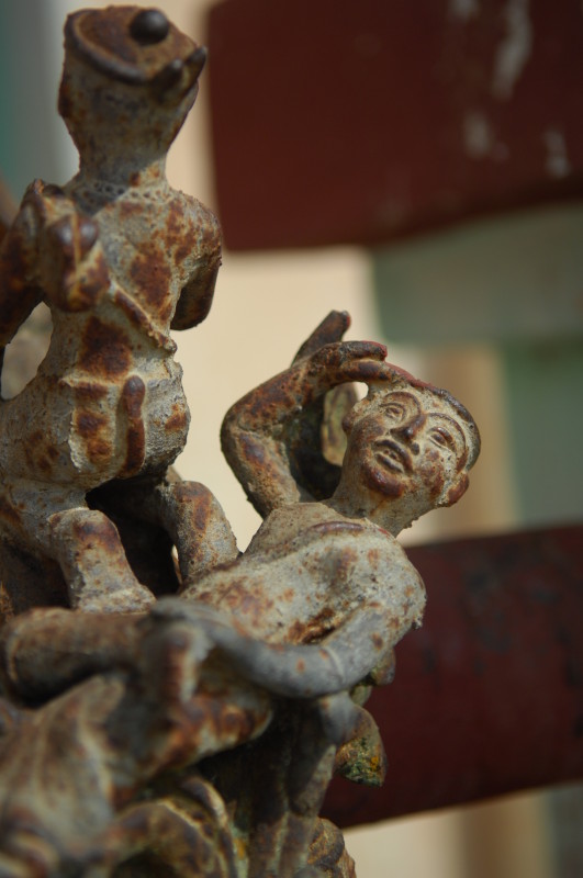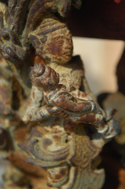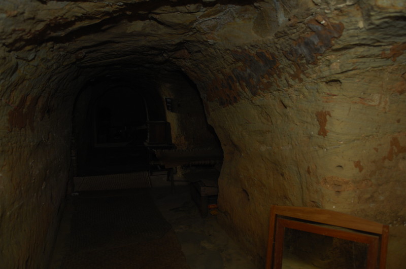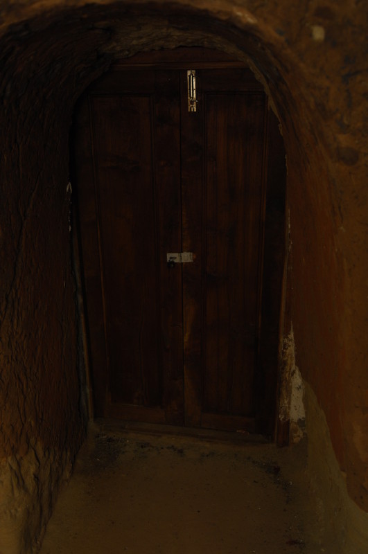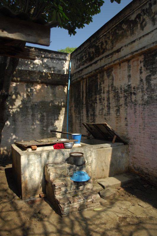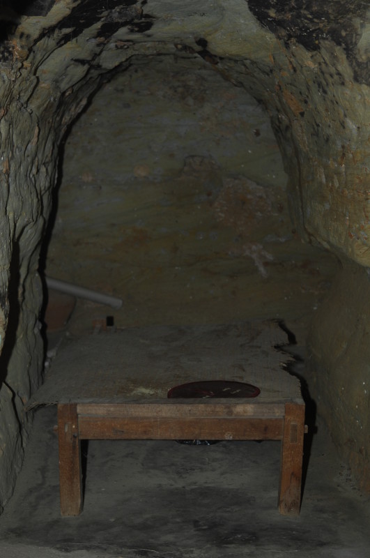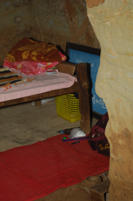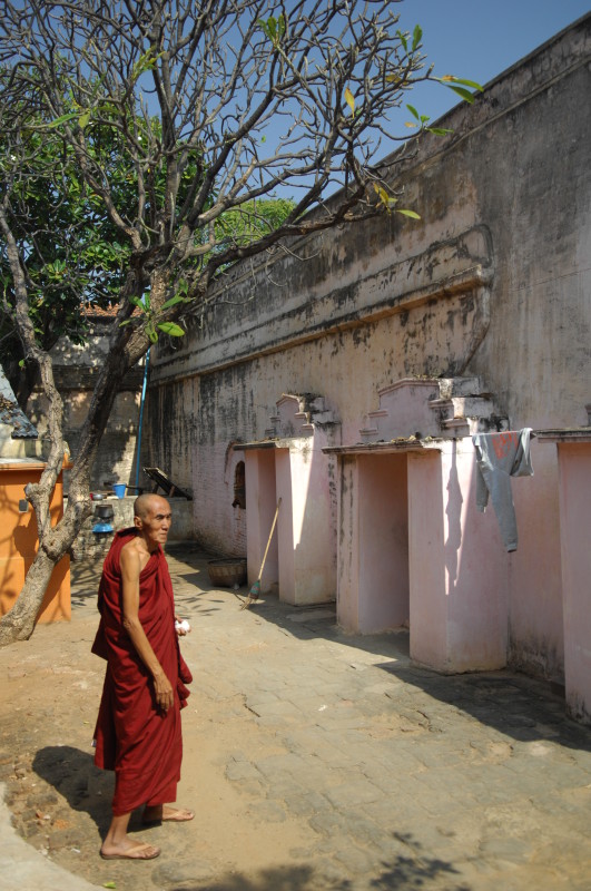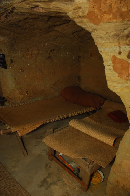 Über eine Treppe geht es in einen in den Felsboden gegrabenen Innenhof mit dem Versammlungsraum der Mönche. Ringsum befinden sich die Eingänge zu den unterirdischen Mönchszellen, die in den Fels gegraben wurden.- Nandamannya Tempel (1248 a.D.)