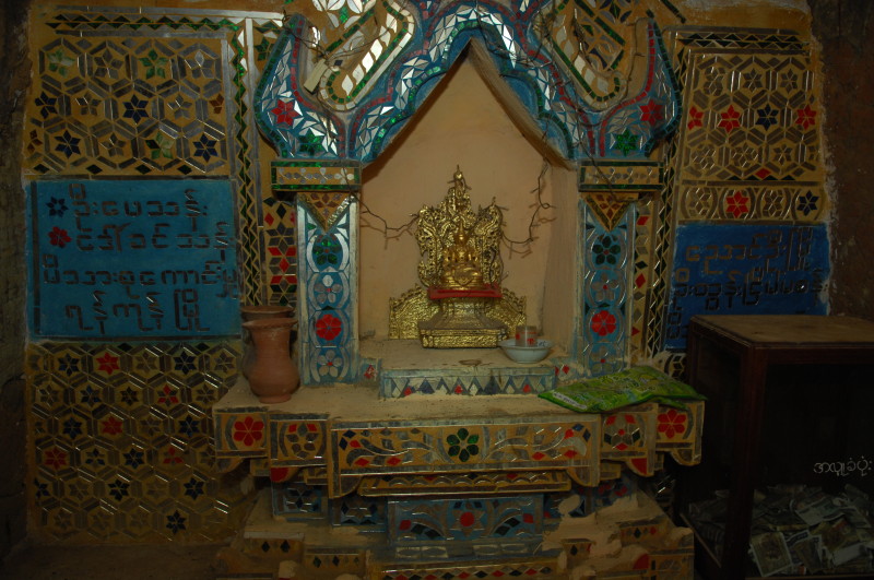Im Inneren befinden sich zahlreiche Wandmalereien. Sie zeigen im Vorraum Vignetten mit Szenen aus dem Leben Buddhas. Der folgende Raum mit der Buddha-Statue ist mit tausenden kleiner Buddhas bemalt, die Erinnerungen an die Thanboddhay Pagode in Monywa wecken.