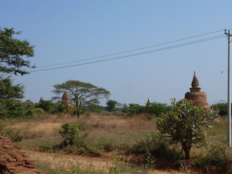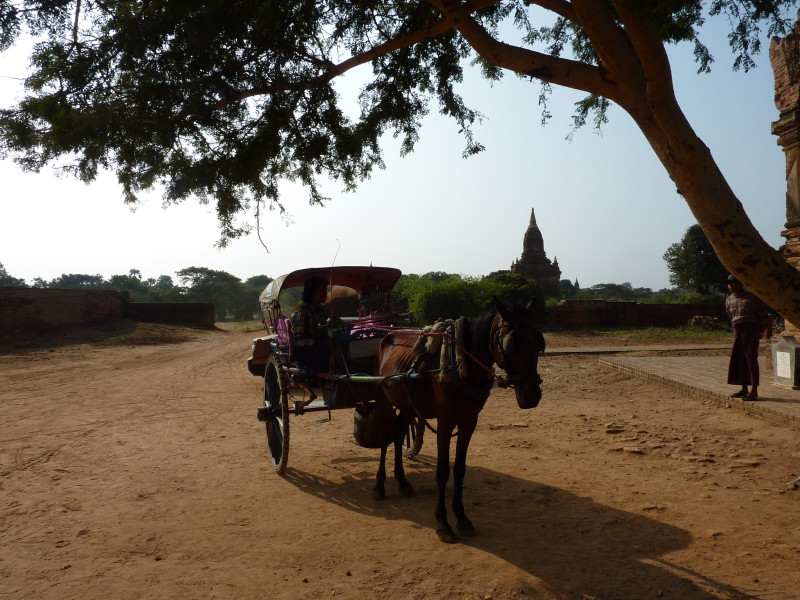 Der dritte Tag mit dem Jeep in der Tempelebene von Bagan. Tun Tun Oo hat einen Kollegen geschickt, da er heute anderweitig beschäftigt ist. Der 20jährige Ersatzfahrer ist leider noch „in Ausbildung“, das heißt sein Englisch nur bruchstückhaft und seine Fahrweise so vorsichtig, dass uns sogar die Pferdekutschen überholen. So bleibt viel Zeit, die Landschaft zu genießen und sich überraschen zu lassen, welche Bauwerke sich unser junger Freund ausgesucht hat.