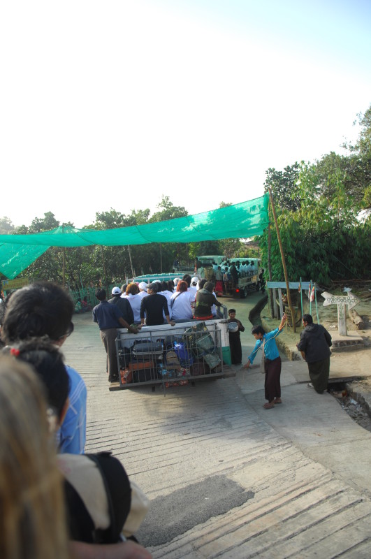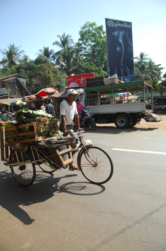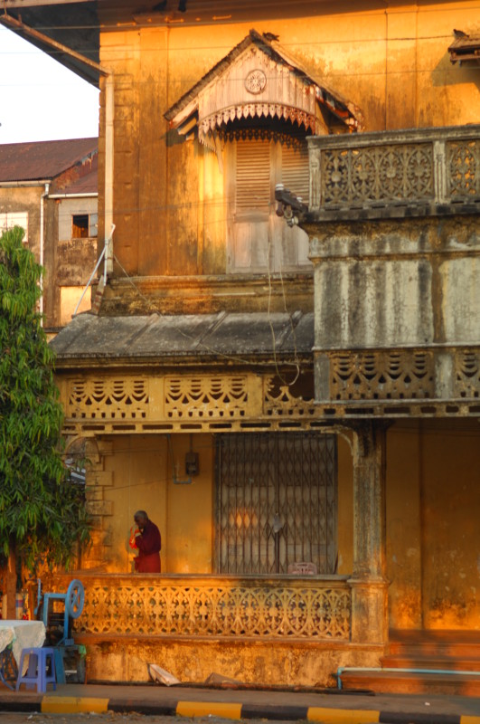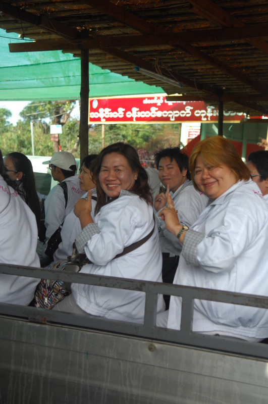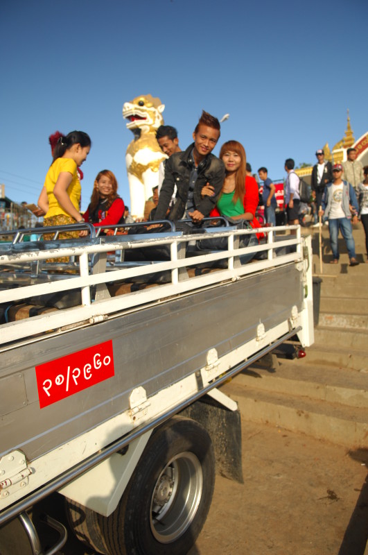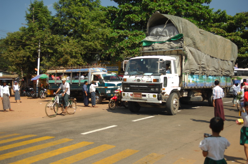 Am späten Nachmittag erreichen wir die drittgrößte Stadt Myanmars. Am Busbahnhof folgt die übliche Feilscherei mit den Tuktuk-Fahrern um einen angemessenen Fahrpreis. Naturgemäß fordern sie meist das Doppelte der normal üblichen Taxe. Schließlich fehlt den Neuankömmlingen die nötige Orientierung. Da wir uns zunächst nicht einigen können, verlassen wir zur Verwunderung der gierigen Meute den Terminal mit Sack und Pack. Vor dem Tor des Bahnhofs wartet schon ein halbvolles Sammeltaxi, das mit dem von uns angebotenen Preis kein Problem hat.
