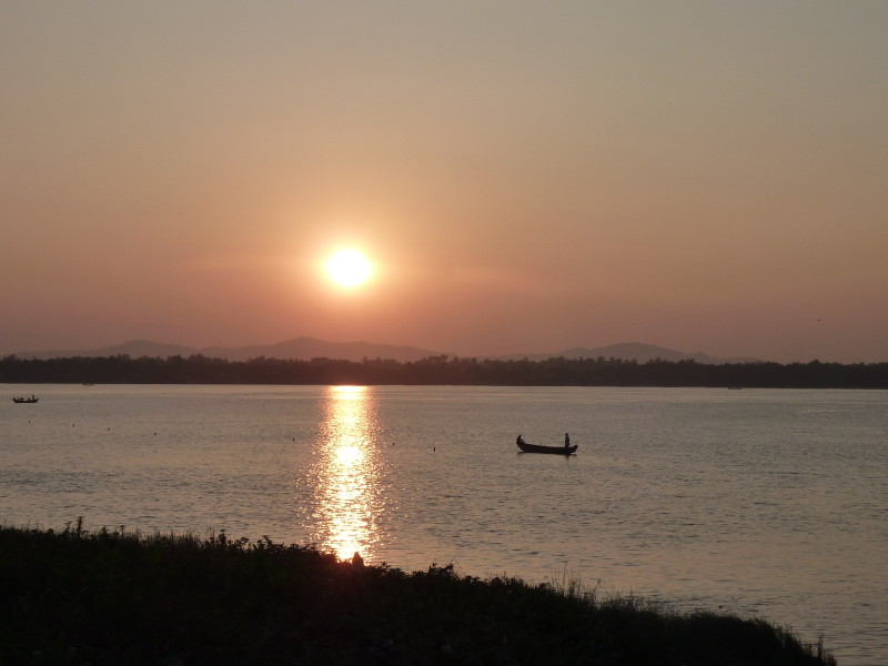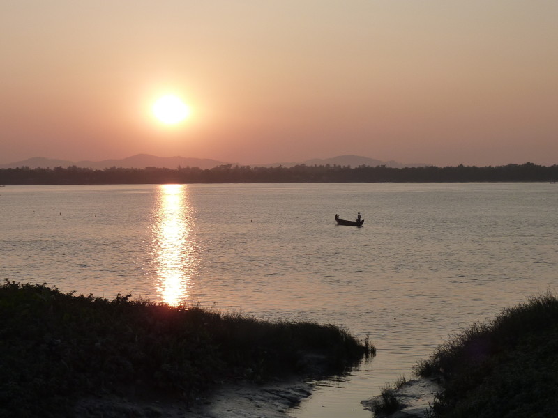 Nach dem Einchecken im Hotel wandern wir noch ein wenig durch die Innenstadt in Richtung und Fluss. Dort befindet sich auch der Harbour Night Bazar. An den zahlreichen Ständen kann man zwischen Spießchen mit Hühnerfleisch und Fisch wählen, die anschließend auf kleinen Kohlengrills frisch zubereitet werden. Mit diesem burmesischen Barbecue endet ein weiterer Reisetag in Richtung Süden.