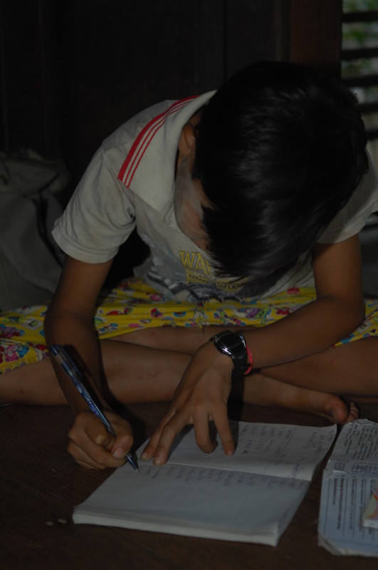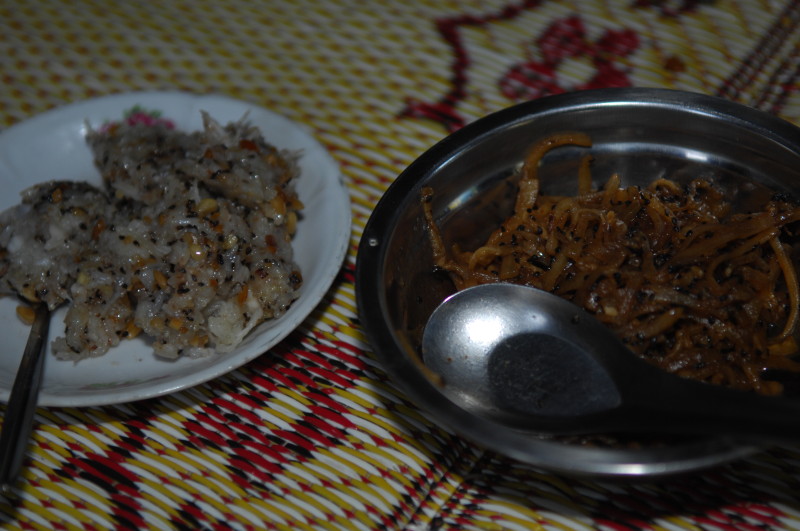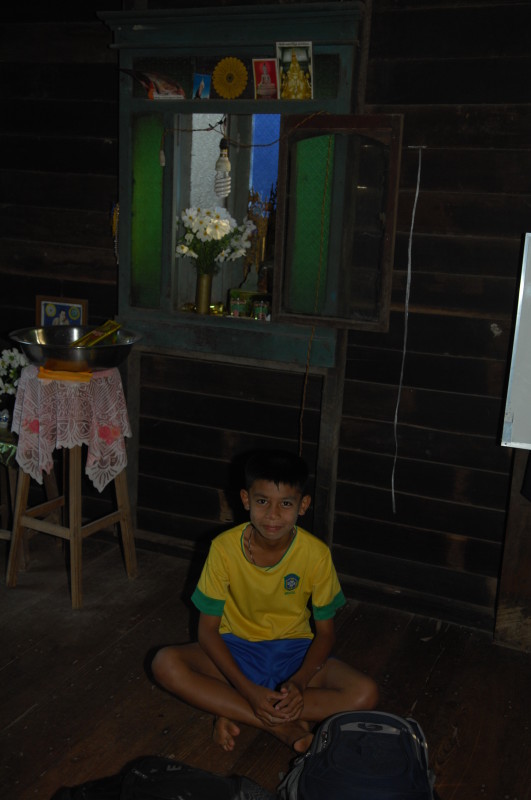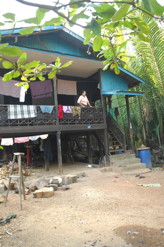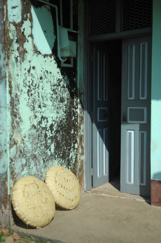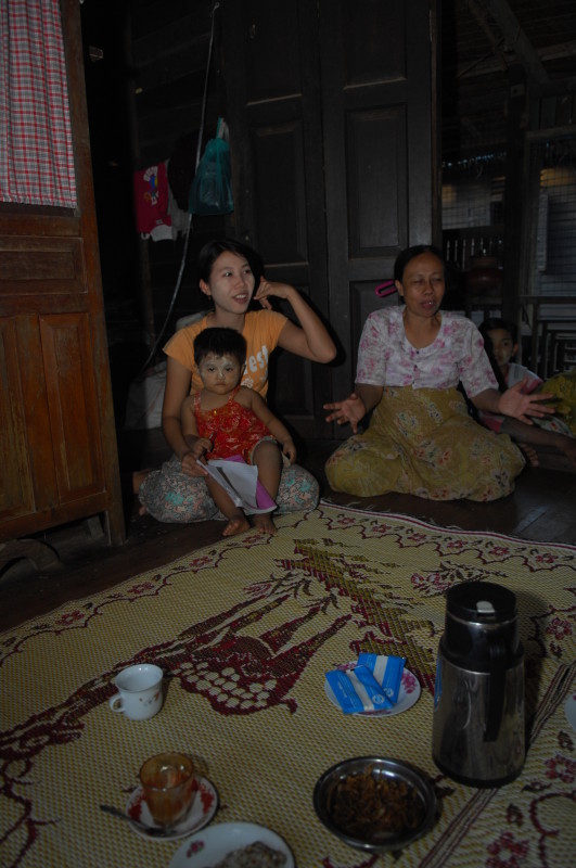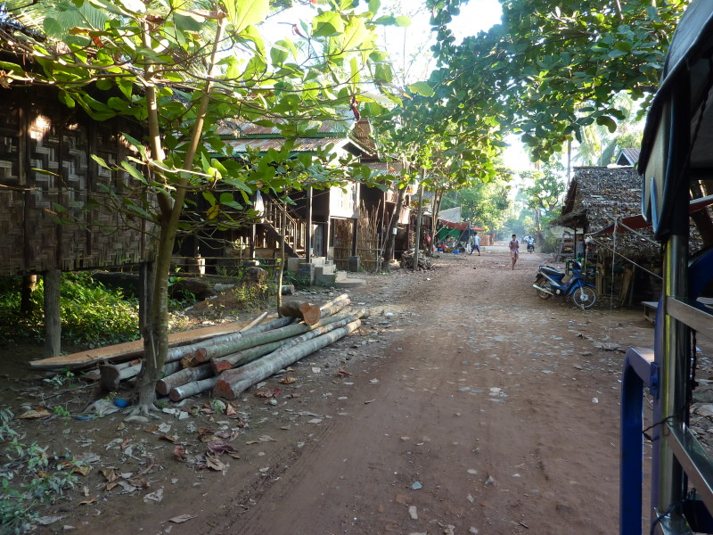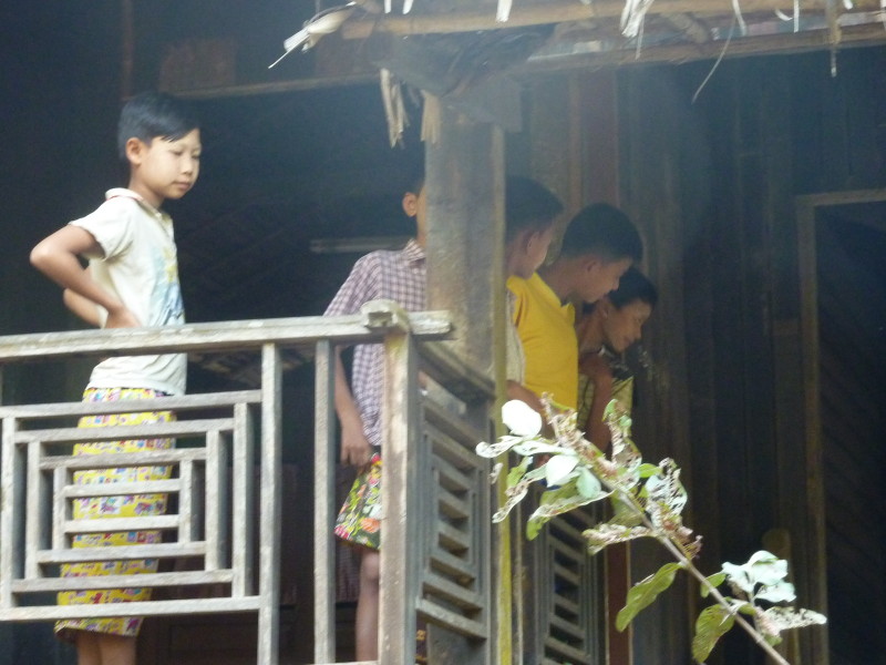 Die ältere Frau stellt sich uns als Privatlehrerin vor und lädt uns ein, auf einen Tee in ihr Haus zu kommen. Noch unentschlossen überzeugt uns unser Guide, das Angebot anzunehmen, da alles andere ein Affront wäre. Oben im Wohnzimmer sitzen wir auf einer Bambusmatte und bekommen Tee, Kaffee und einen kleinen Imbiss gereicht. Kichernd sitzen sechs Schüler um uns herum, unser Erscheinen hat soeben eine Unterrichtsstunde vorzeitig beendet.
