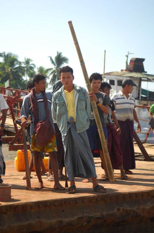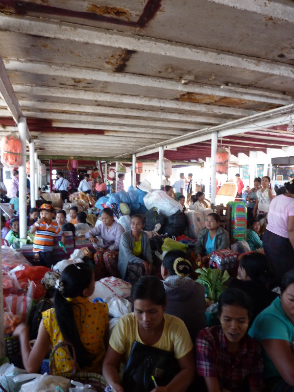 Wir wollen nach Bilu Kyun, die die Einheimischen Menschenfresser-Insel nennen. Zur Verstärkung haben wir uns vor Ort einen Guide organisiert. Um 10 Uhr holt uns Mr. Nay ab und wir marschieren zur 15 Gehminuten entfernten Jetty der staatlichen Fähre von Mawlamyine in der Nähe der alten Lagerhäuser aus der Kolonialzeit. Die Überfahrt zur südlichen Seite der Insel dauert rund 45 Minuten. Wie schon bei der IWT auf dem Irrawaddy von Bahmo nach Katha gibt es zwei Klassen.