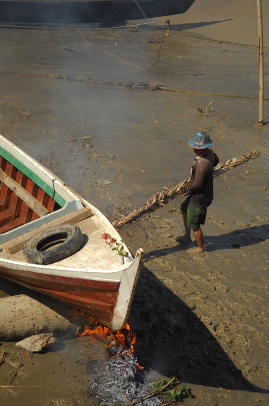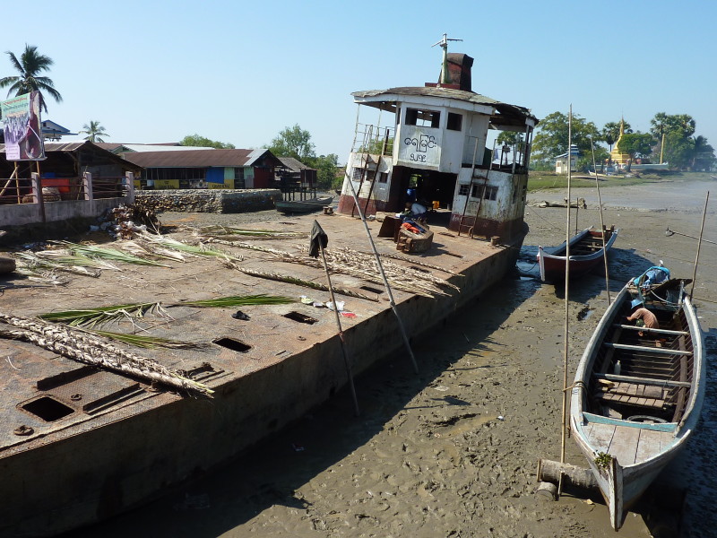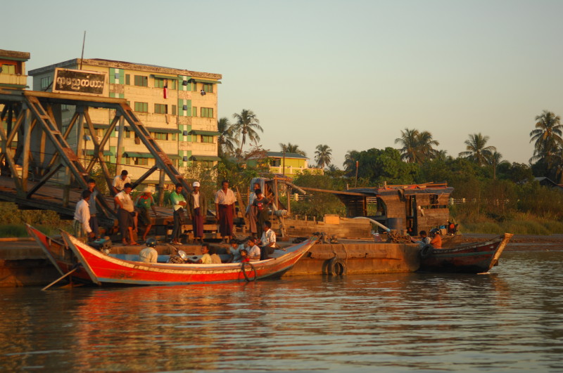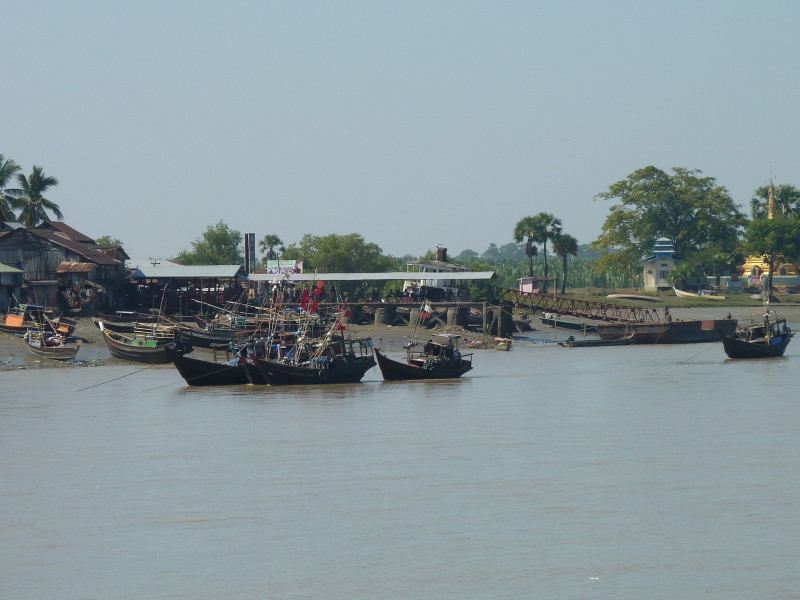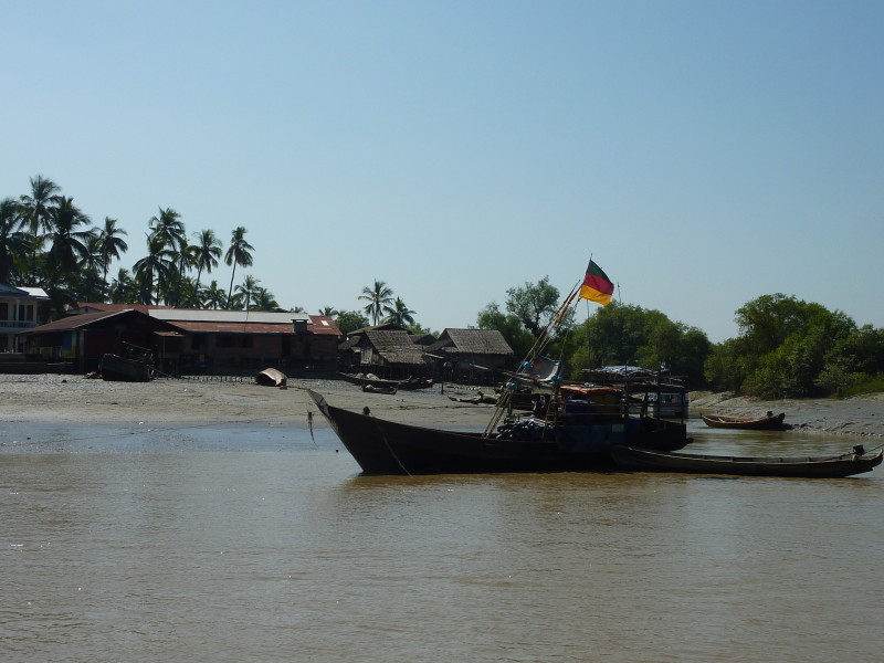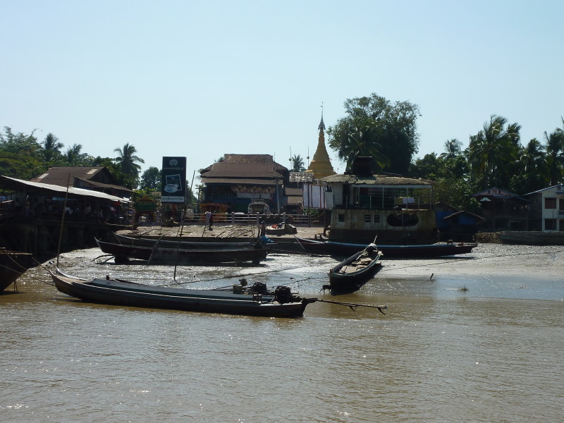 Das letzte Dorf an der Nordspitze der Insel wird nur von Hindus bewohnt. Wir fahren direkt weiter zum Kyan Tharyar Jetty und nehmen ein kleines Boot, das keine 10 Minuten bis zum Ramanya Jetty von Mawlamyine benötigt.