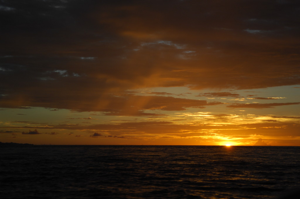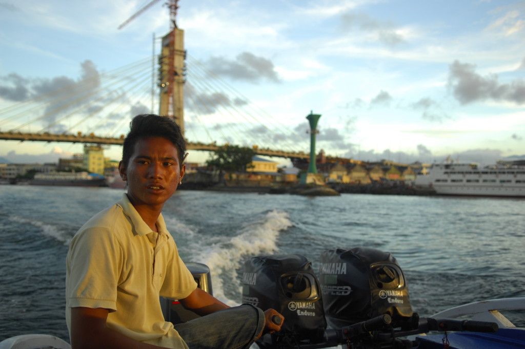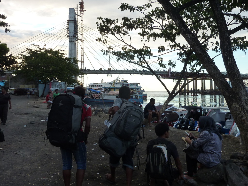 Am nächsten Vormittag flogen wir mit einer Boeing der Garuda in rund dreieinhalb Stunden zum ersten Reiseziel auf Sulawesi, Manado, der Hauptstadt von Nord-Sulawesi. Direkt nach der Ankunft brachte uns ein Taxi zum Jetty und der Fahrer organisierte uns dort ein Wassertaxi nach Bunaken. Für die öffentliche Fähre war es schon zu spät. Wir erreichten die größte der fünf an der Küste vor Manado gelegenen Inseln kurz nach Sonnenuntergang. Der angekündigte 15minütige Fußmarsch zu den Hütten unseres bereits vor der Abreise gebuchten Resorts zog sich dann allerdings ein wenig in die Länge. Das Verhältnis der Indonesier zu Maß- und Zeiteinheiten ist hier so relativ wie fast überall in Asien.