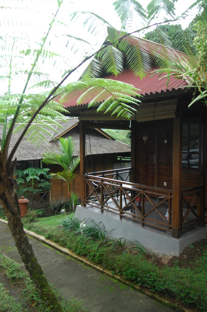 Damit endet der Besichtigungsteil dieses perfekten Tages und Maikel bringt uns in das Dschungelresort seines Freundes Bobbys Lambaihang am Rande des Tangkoko Batuangus Naturreservats. Das Tangkoko Lodge ist einer von drei Homestays direkt in der Nähe des Eingangs zum Park. Die Zimmer sind einfach, aber relativ neu und zum Teil sogar mit Klimaanlage und Boxspring-Betten. Lediglich auf eine warme Dusche muss man wie so oft in den abgelegeneren Regionen verzichten. Bei dem feuchtheißen Dschungelklima aber durchaus verschmerzbar und wirklich erfrischend.