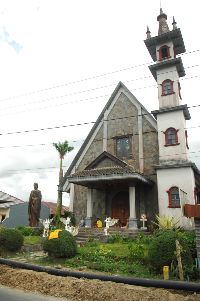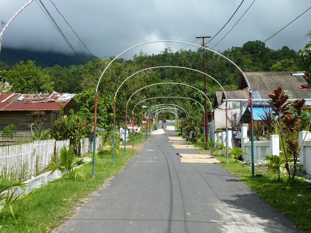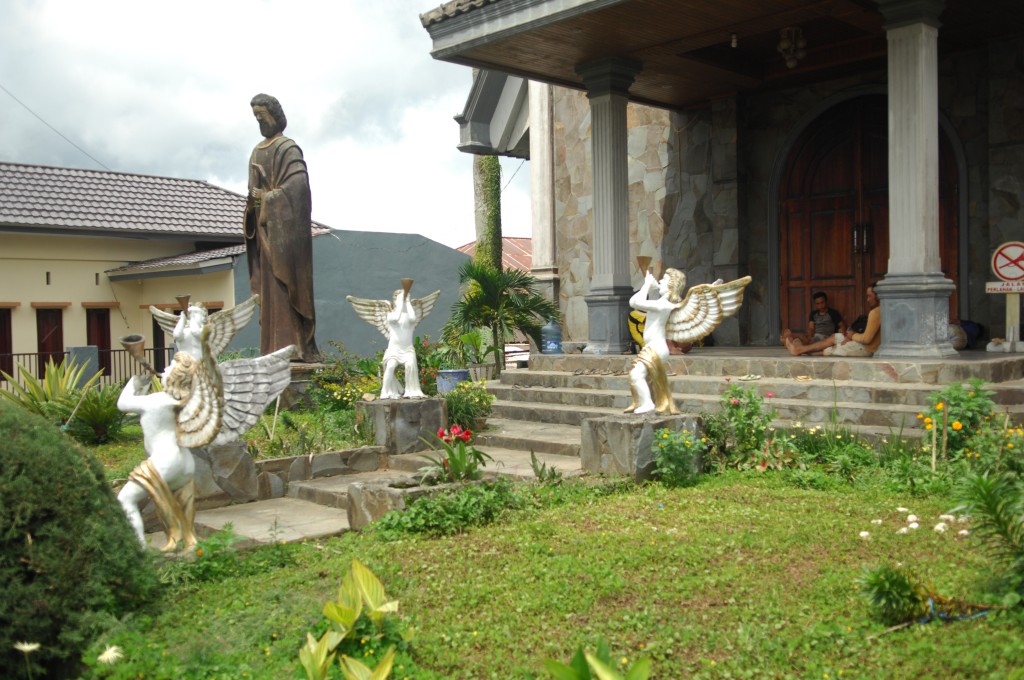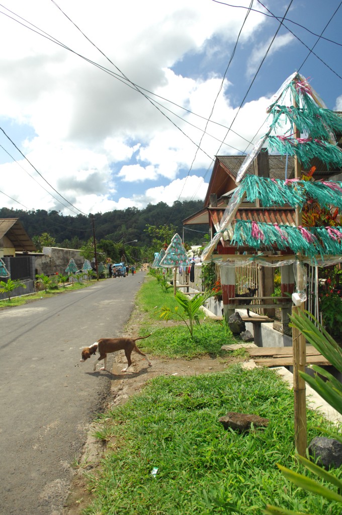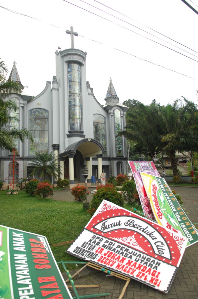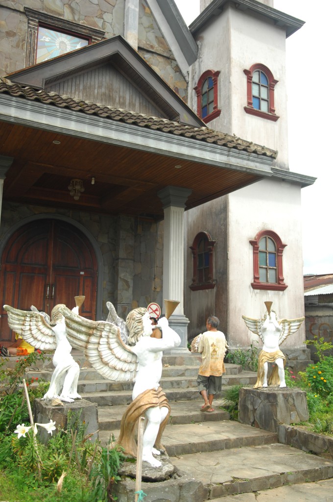 Auf dem Weg von Tomohon nach Waloan fahren wir durch zahlreiche weihnachtlich dekorierte Straßenzüge. Die Gegend hier ist zu 95% christlich (40% katholisch, 60% evangelisch). Das erklärt auch die unglaubliche Kirchendichte. Wenn Burma das Land der goldenen Pagoden ist, dann kann man hier durchaus vom Hochland der Kirchen sprechen. Eine Handvoll Gotteshäuser gehört selbst im kleinsten Dorf zum Standard.