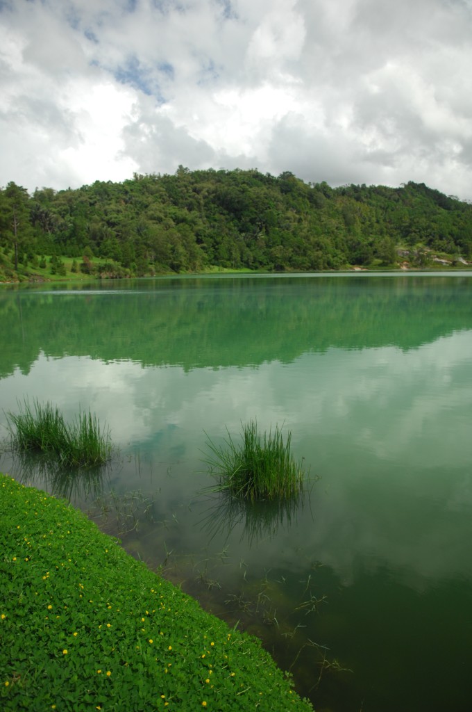 Unzählige Kirchen weiter geht es wieder ins offene Hochland. Eine Seitenstraße führt direkt zum Linow Lake. Er wechselt je nach Lichteinfall seine Farbe. Dass er stark schwefelhaltig ist, kündigt sich bereits aus einiger Entfernung an. An einigen Ufern dampft und brodelt es. Das ursprünglich hier erbaute Erdwärmekraftwerk wurde allerdings vor einigen Jahren an eine ergiebigere Stelle hinter der Hügelkette jenseits des Sees verlagert.