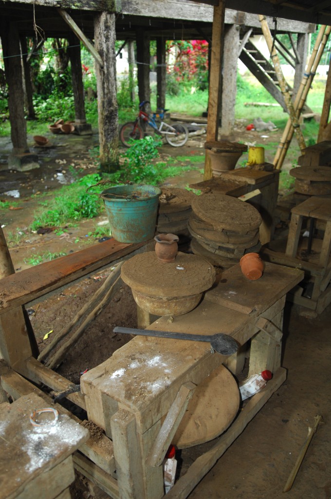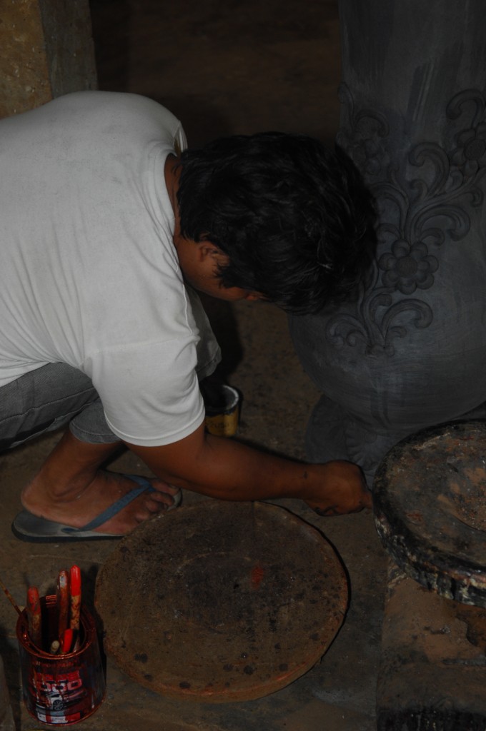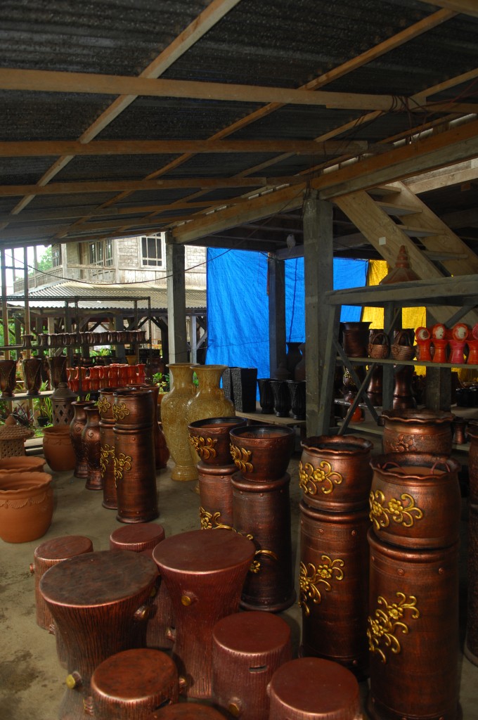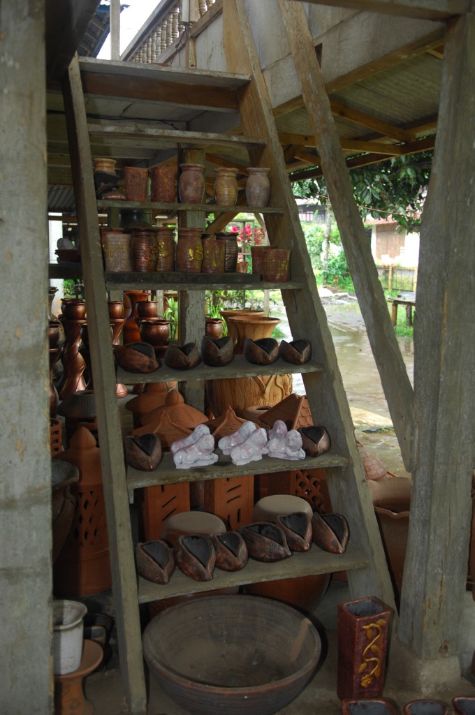 Kurz vor dem See befindet sich die Töpfersiedlung Pulutan. Derzeit ist ein Dekor besonders beliebt, dass der Keramik einen bronzenen Anschein gibt. Aber es ist nur Farbe, die nach dem Brennen auf einer schwarzen Grundierung aufgetragen wird. Es sieht trotzdem erstaunlich metallisch aus.