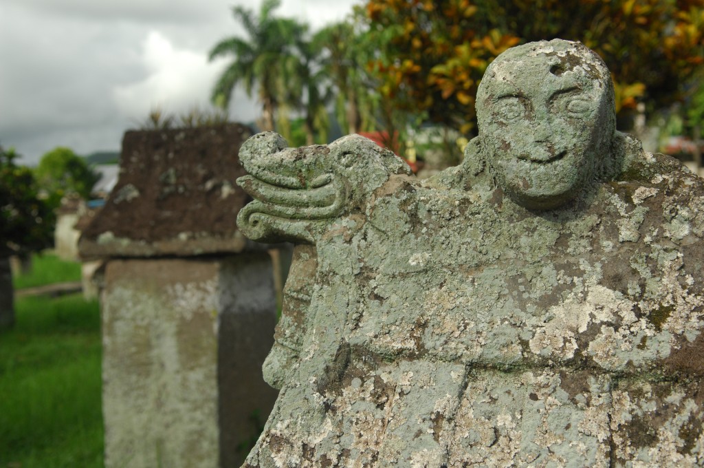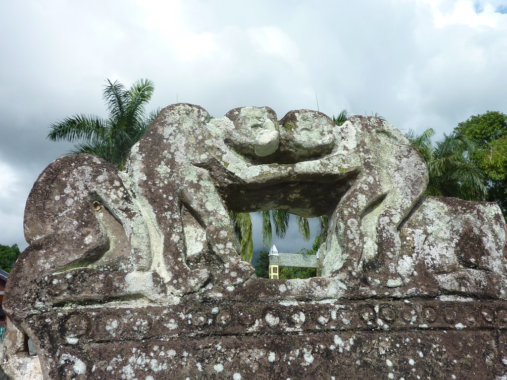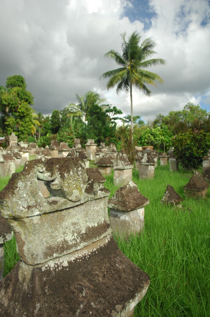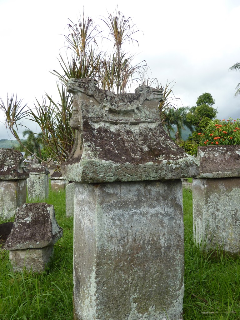 Am Ende der Fahrt wartet das eigentliche Highlight der Highlands. Die Warugas sind Steintröge mit kunstvoll gehauenen Deckeln, die in früheren Zeiten betuchten Persönlichkeiten als Hockgräber dienten. Die Gefäße waren ursprünglich überall in der Gegend verstreut zu finden und sind heute vor allem an zwei Orten zusammengetragen. Eine besonders schöne Sammlung befindet sich in Airmadidi. Diese Tradition der Bestattung muss bis ins späte 19. Jahrhundert gepflegt worden sein, wie die Inschriften zeigen.