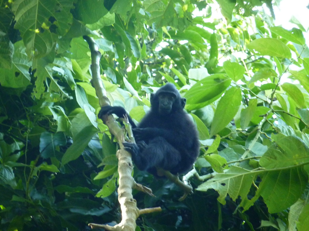 Zahlreicher tummeln sich dagegen die Celebes-Schopfmakaken (Macaca nigra) im Park. Die Frage ist nur: wo halten sie sich gerade auf? Unterwegs befindet sich ein Basislager der Naturschutzorganisation Selamatkan Yaki, die sich dem Schutz dieser Tiere widmet – unter anderem auch in Form von Programmen für die Einheimischen, um diese davon abzuhalten die Makaken als Bereicherung für ihren Speiseplan zu sehen.