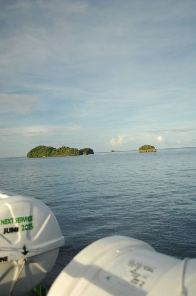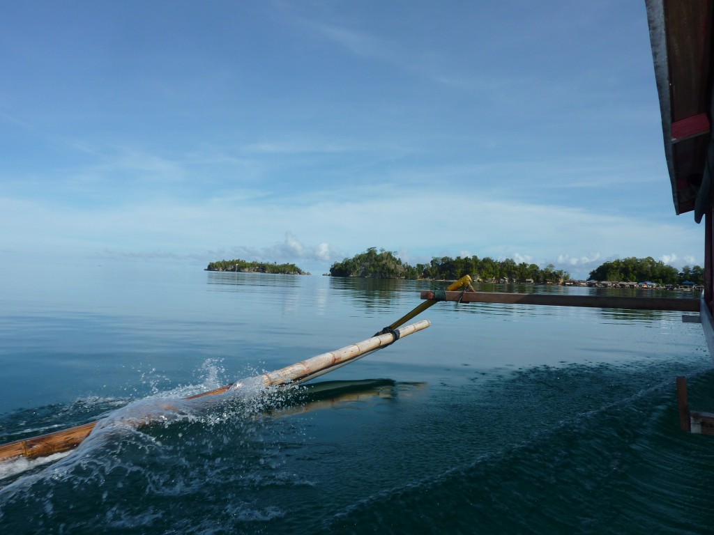 ie Fahrt verläuft immer in Ufernähe zwischen zahlreichen kleineren unbewohnten und größeren offensichtlich bewohnten Inseln- Insgesamt leben auf den Togians rund 30.000 Indonesier verschiedener Ethnien in 37 Dörfern, meist mit einem Durchschnittseinkommen von rund 32 Euro im Monat.