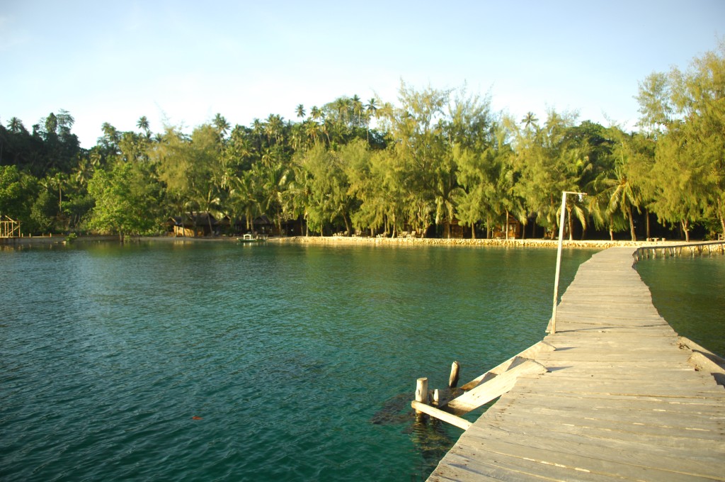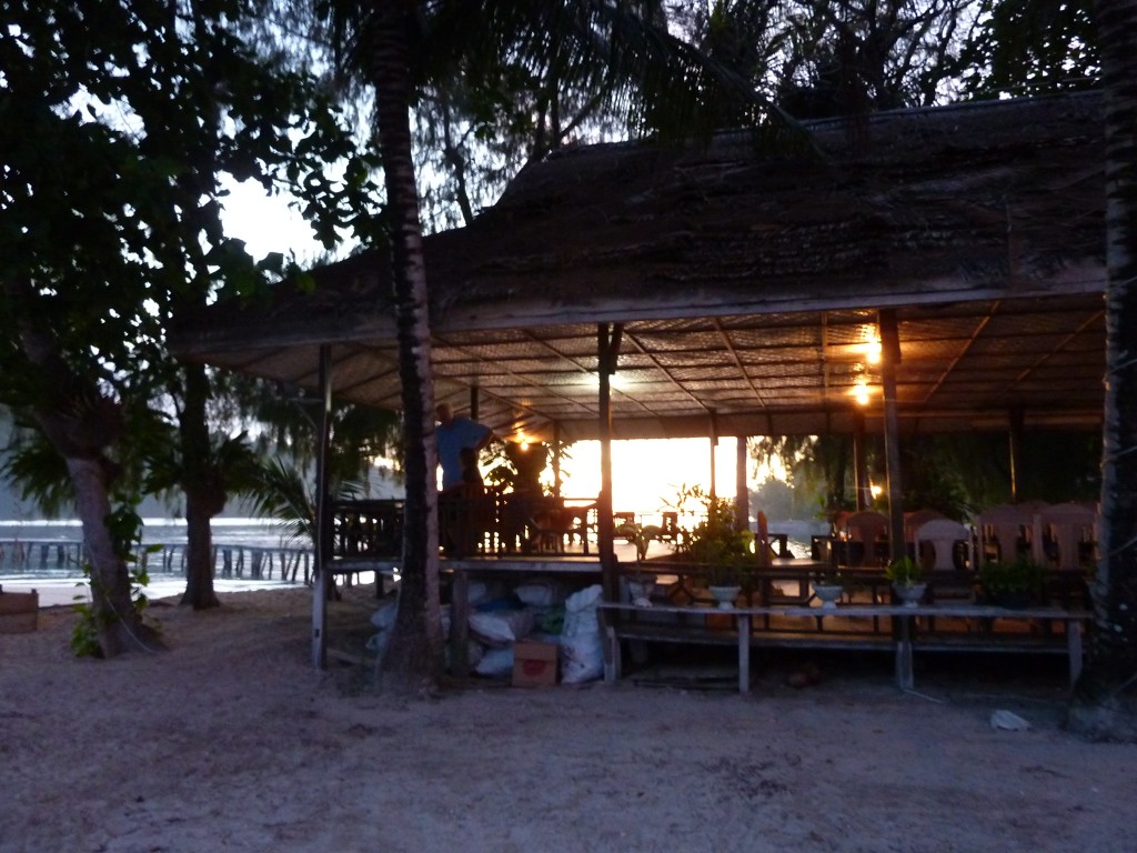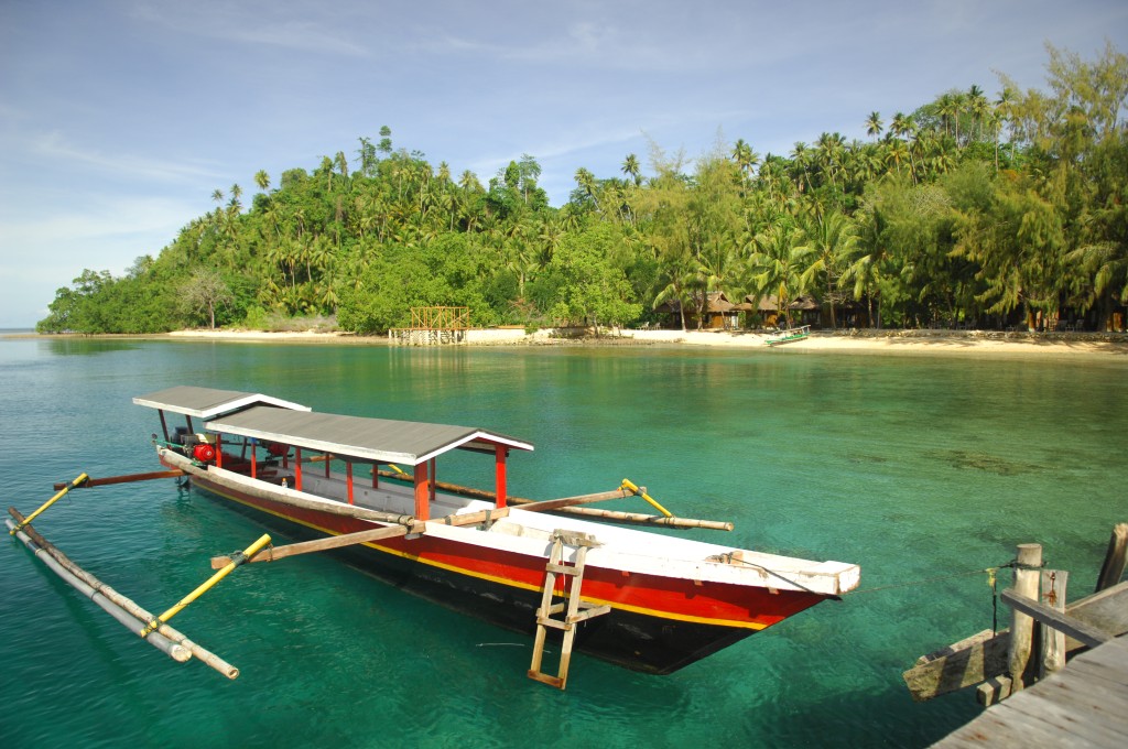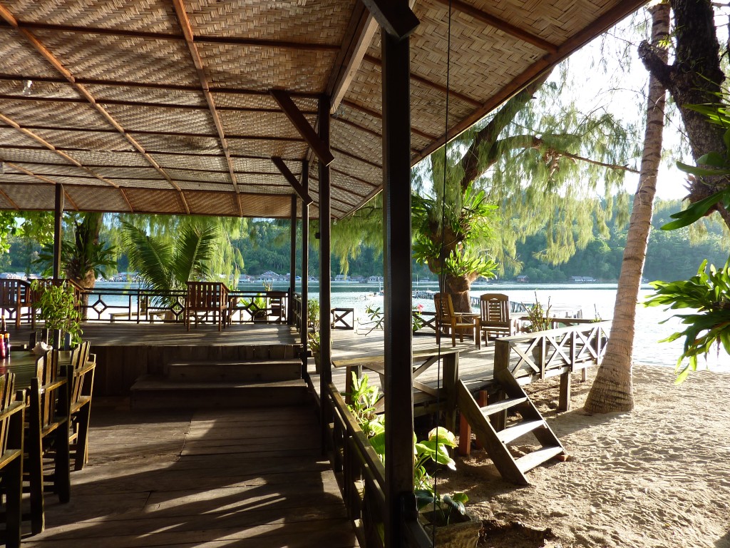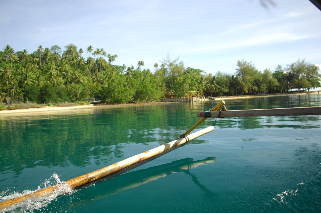 Hardy bringt uns direkt zum Jetty der kleinen Dingis, vorbei und mitten durch die zahlreichen „Geier“, die vor der großen Fähre schon auf die Neuankömmlinge warten und „ihr“ Resort bzw. Boot als das ultimative Ziel aller Reisewünsche anpreisen. Wir wollen nicht bis zum Nachmittag auf die öffentliche Fähre nach Katupat warten und stattdessen ein kleines Privatboot nehmen. An Bord der Fähre hatte Hardy tatsächlich noch zwei weitere Mitreisende mit gleichem Ziel gefunden. Ein holländisches Ehepaar will ebenfalls zum Fadhila Cottages, so dass sich ein Fahrpreis für die einstündige Überfahrt von rund 5 Euro pro Person ergibt.