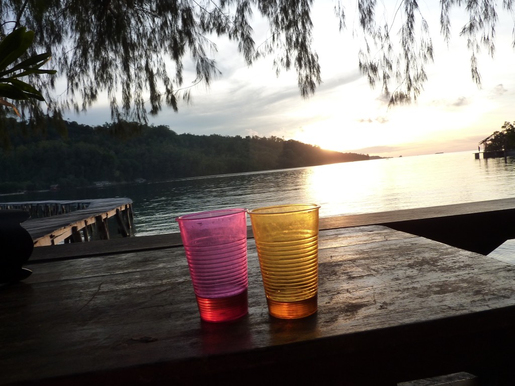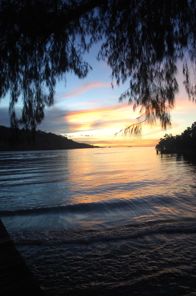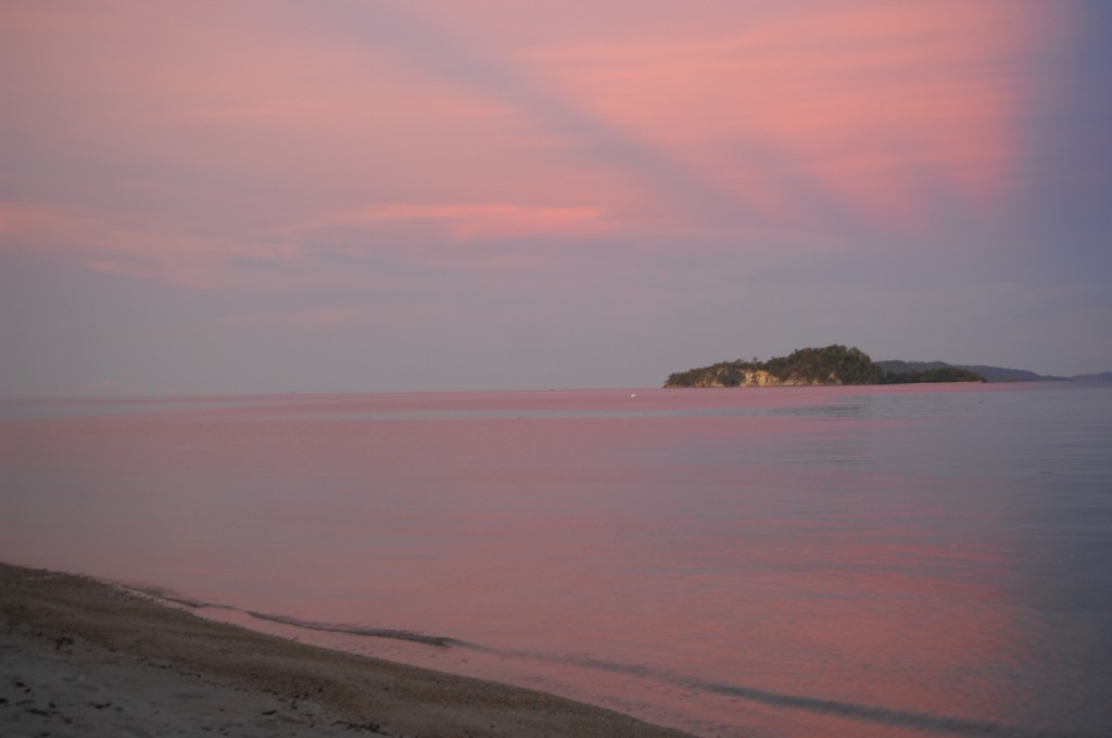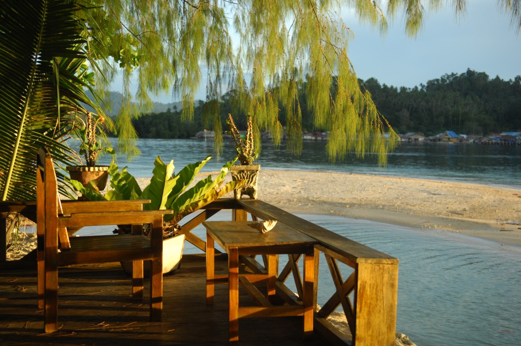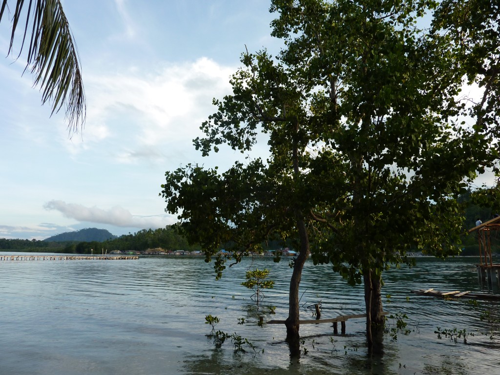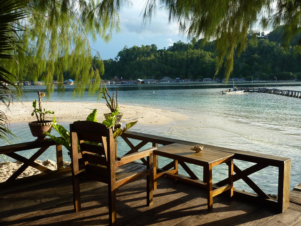 Hardy bringt uns direkt zum Jetty der kleinen Dingis, vorbei und mitten durch die zahlreichen „Geier“, die vor der großen Fähre schon auf die Neuankömmlinge warten und „ihr“ Resort bzw. Boot als das ultimative Ziel aller Reisewünsche anpreisen. Wir wollen nicht bis zum Nachmittag auf die öffentliche Fähre nach Katupat warten und stattdessen ein kleines Privatboot nehmen. An Bord der Fähre hatte Hardy tatsächlich noch zwei weitere Mitreisende mit gleichem Ziel gefunden. Ein holländisches Ehepaar will ebenfalls zum Fadhila Cottages, so dass sich ein Fahrpreis für die einstündige Überfahrt von rund 5 Euro pro Person ergibt.