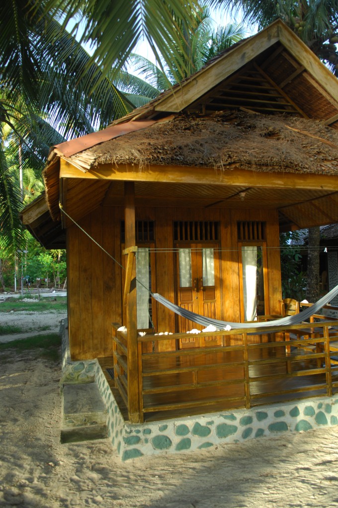 Am Steg des Fadhila Cottagess werden wir schon erwartet. Unsere Voranmeldung ist zwar wundersamer Weise nicht angekommen, dennoch dürfen wir in ein Bungalow der besseren Kategorie einziehen. Dieses hat im Gegensatz zur Standardversion ein überdachtes Bad mit Kaltwasser-Dusche und westlichem WC samt Klospülung. Wir entschließen uns spontan, die nächsten Tage bis Weihnachten hier zu verbringen. Alles wirkt außergewöhnlich gepflegt und sauber. So stellt man sich eine palmenumsäumte Trauminsel in tropischen Gewässern vor.