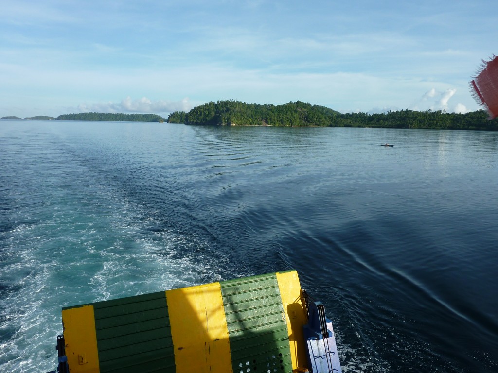 Kurz nach Sieben erreicht die Fähre nach knapp 12stündiger Fahrt Wakai auf den Togian-Inseln. Das rund 120 km breite Inselarchipel im Golf von Tomini im Herzen Sulawesis zählt zu den beliebtesten Tauchrevieren Indonesiens. Sowohl die Fähren aus dem südlichen Ampana als auch die aus dem nördlich gelegenen Gorontalo enden in Wakai. Die wirtschaftliche Hauptstadt der Inselregion ist aber nur der Ausgangspunkt für die Weiterfahrt zu den zahlreichen Resorts der Inselgruppe.