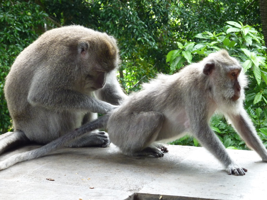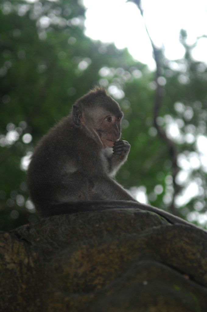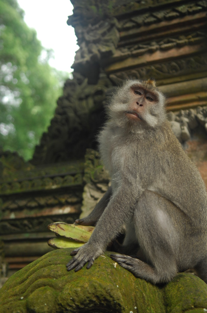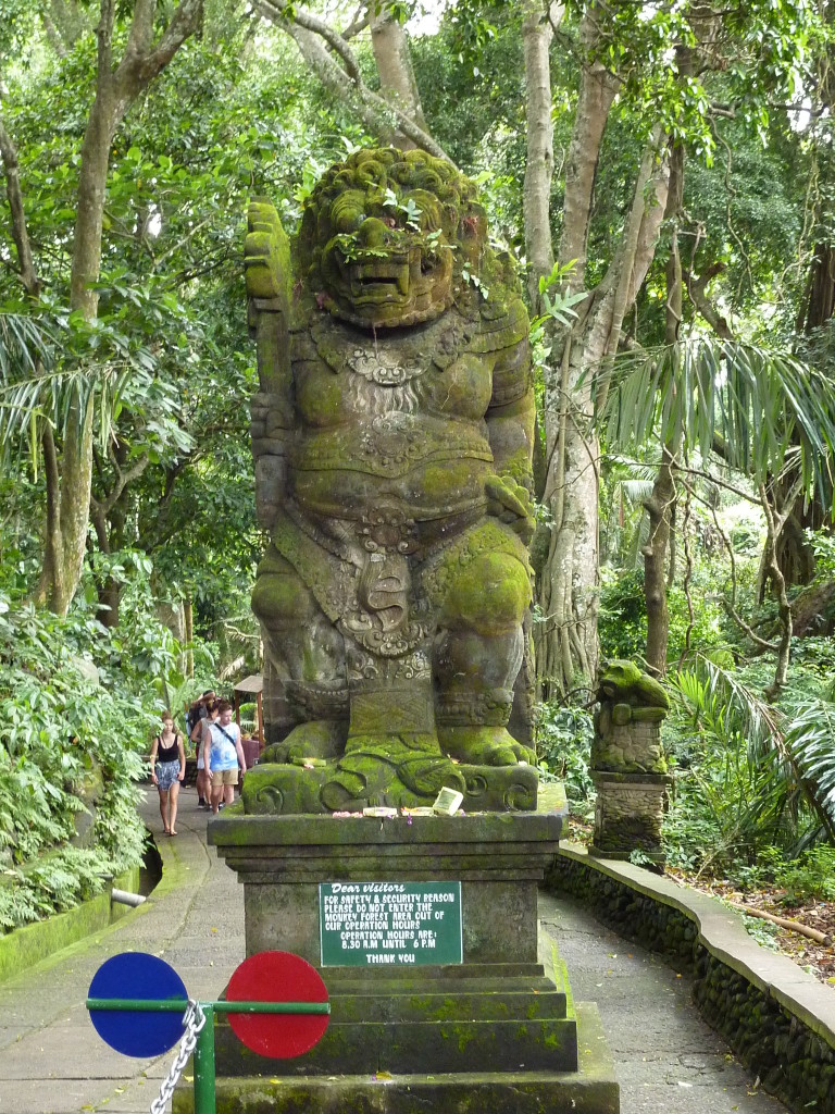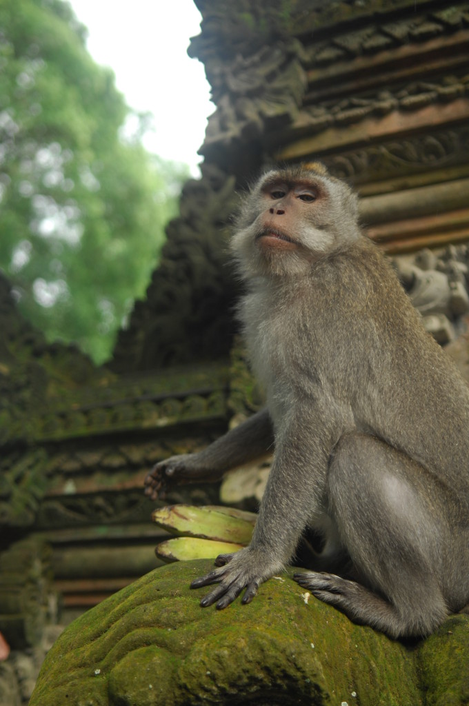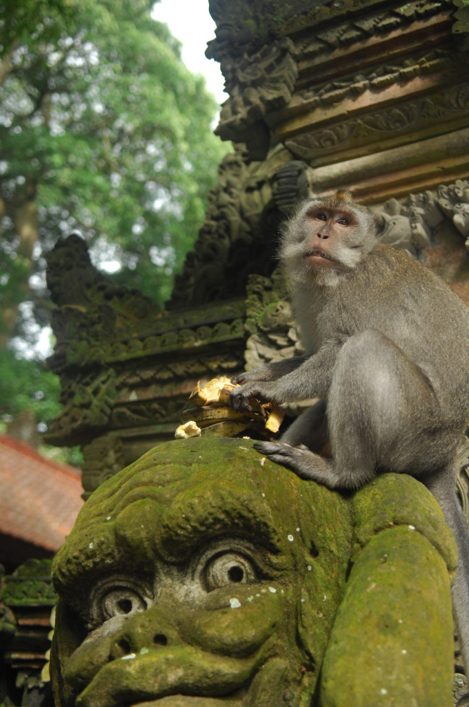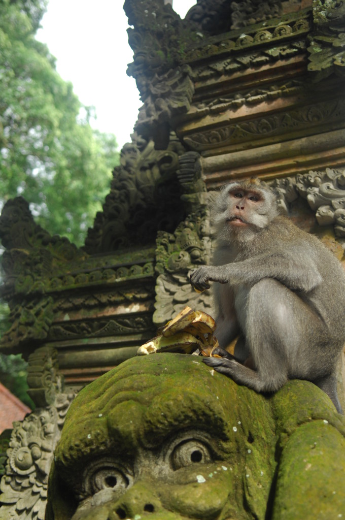 Weiter südlich am Ende der Jalan Bisma, erreichen wir den Affenwald von Ubud (Padangtegal Mandala Suci Wenara Wana). In dem kleinen Park befindet sich ein hinduistischer Tempel. Hauptattraktion sind jedoch die Javaneraffen (Macaca fascicularis). Die Langschwanzmakaken haben nichts gegen die zahlreichen Touristen, solange diese genug Bananen oder Nüsse mitbringen.