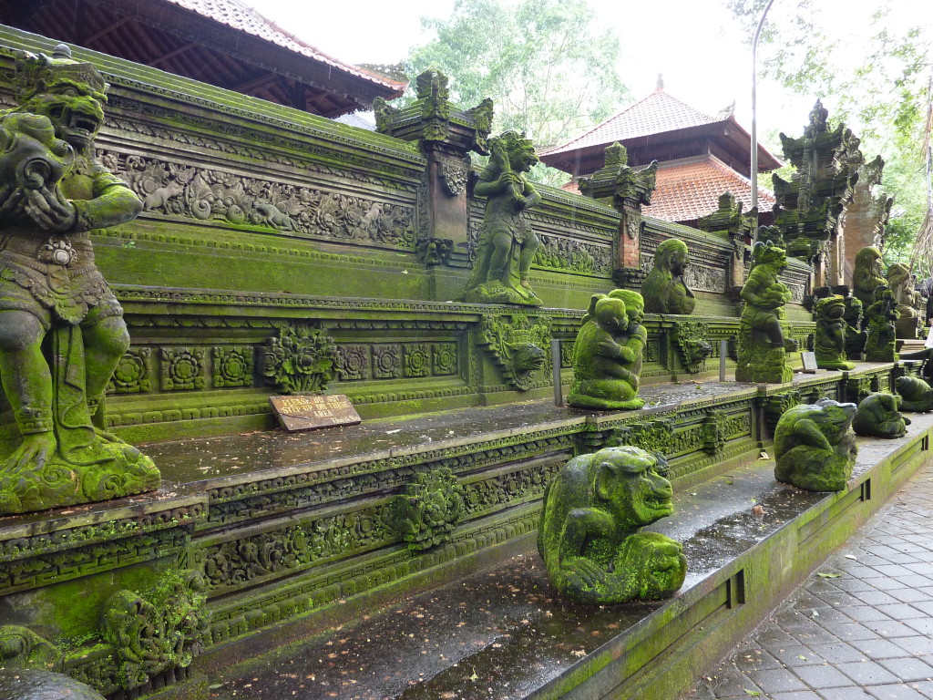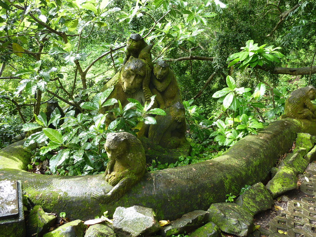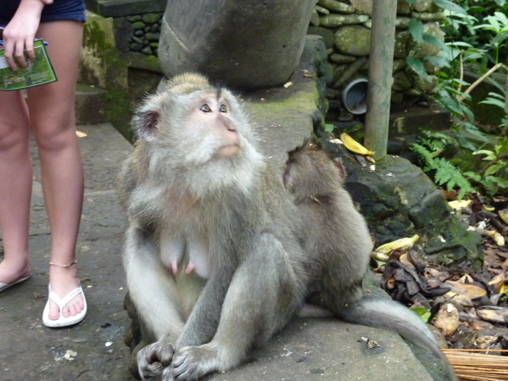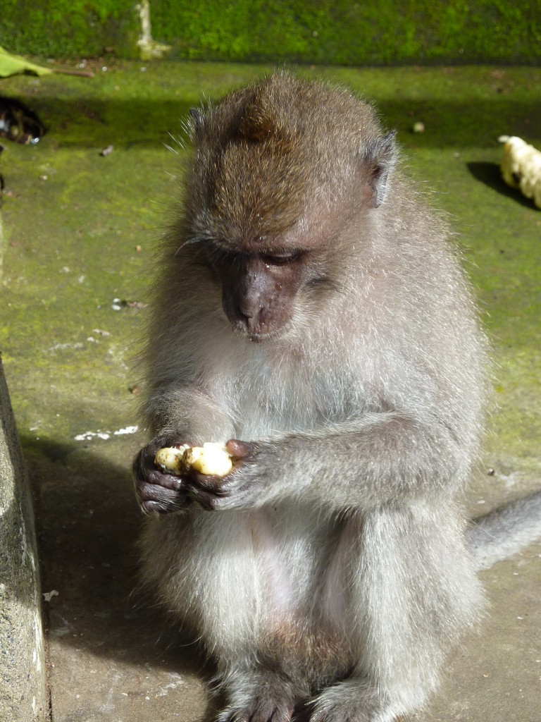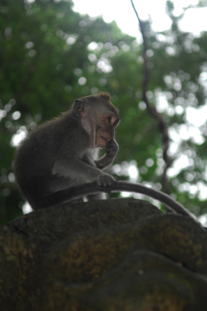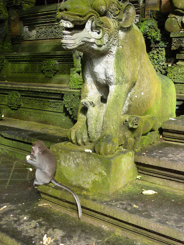 Weiter südlich am Ende der Jalan Bisma, erreichen wir den Affenwald von Ubud (Padangtegal Mandala Suci Wenara Wana). In dem kleinen Park befindet sich ein hinduistischer Tempel. Hauptattraktion sind jedoch die Javaneraffen (Macaca fascicularis). Die Langschwanzmakaken haben nichts gegen die zahlreichen Touristen, solange diese genug Bananen oder Nüsse mitbringen.