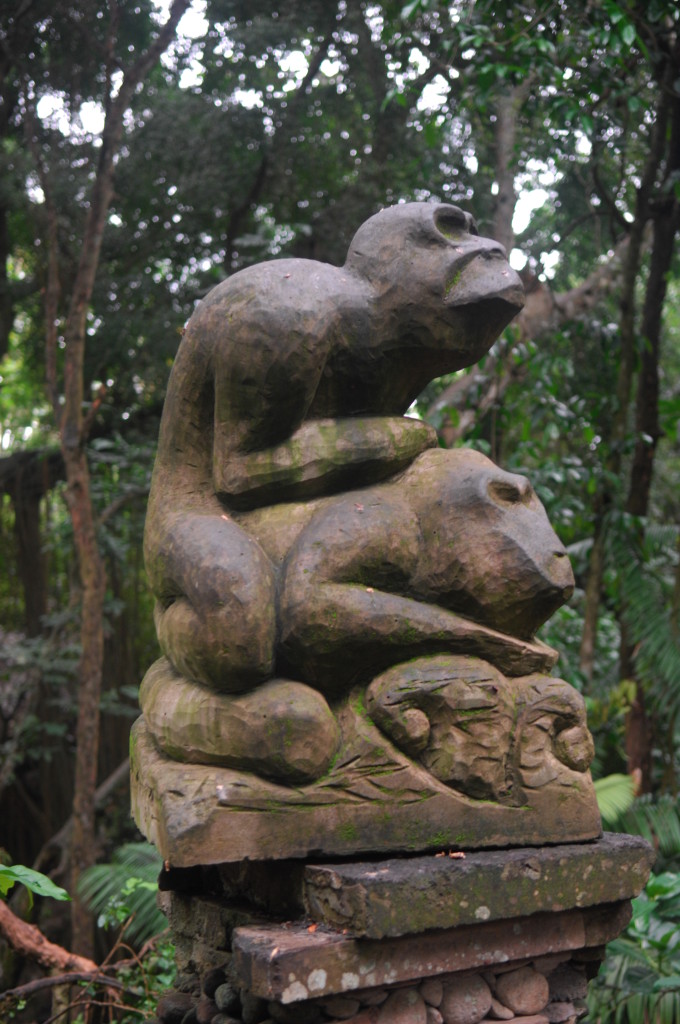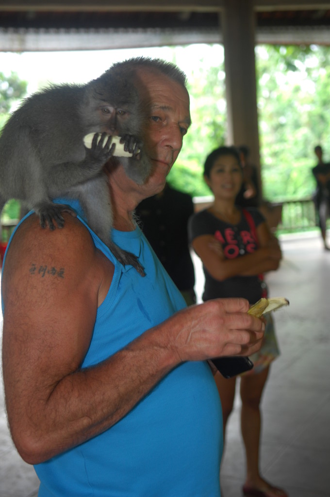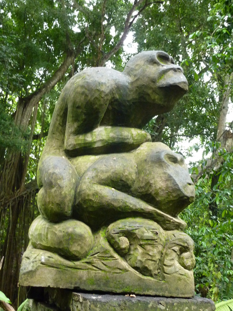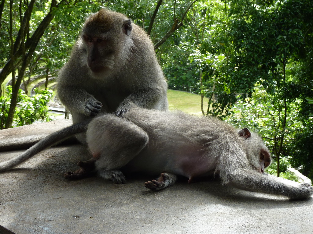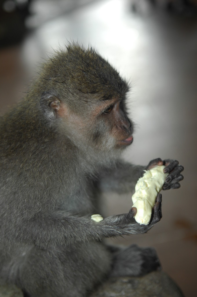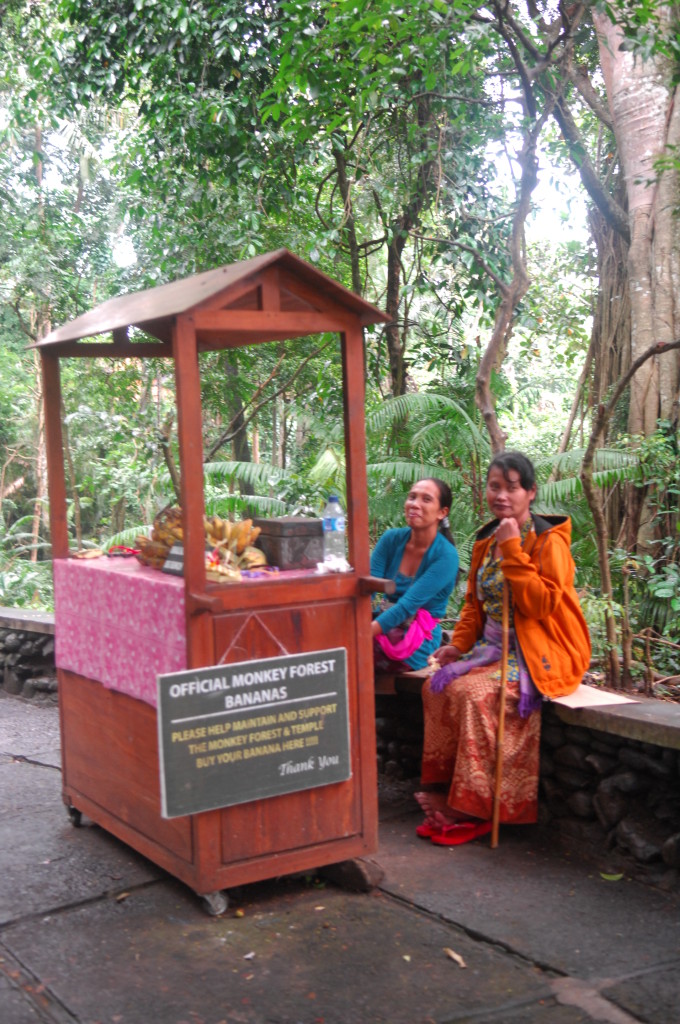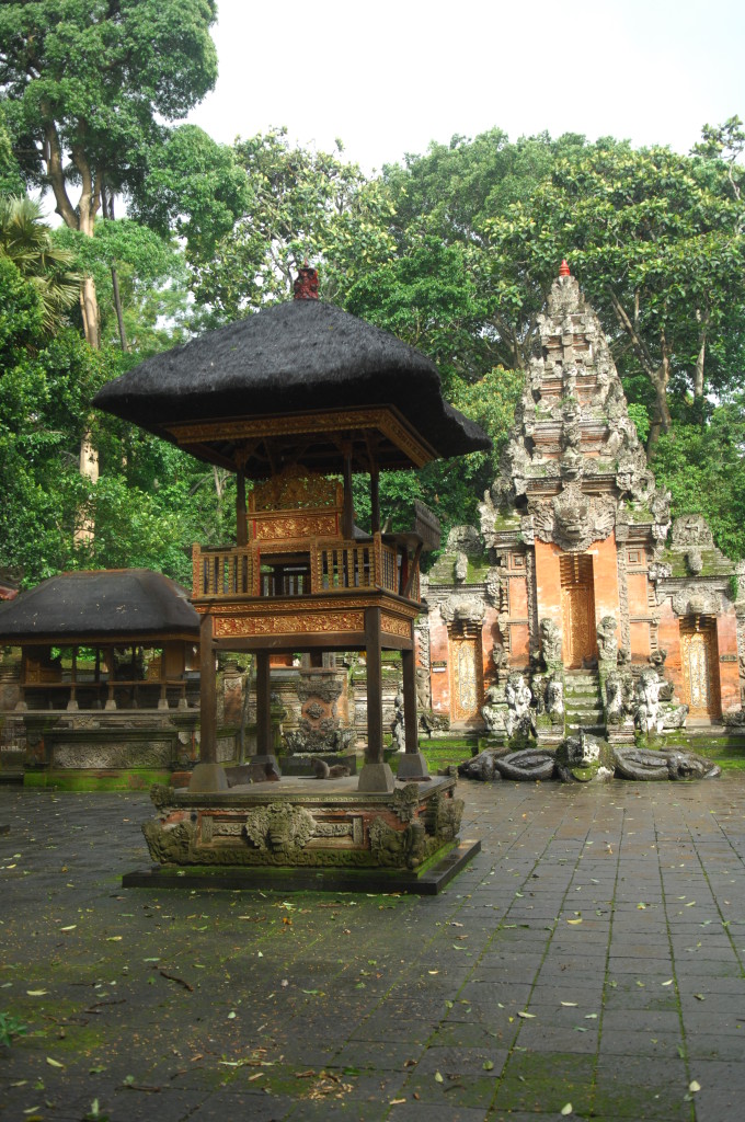 Weiter südlich am Ende der Jalan Bisma, erreichen wir den Affenwald von Ubud (Padangtegal Mandala Suci Wenara Wana). In dem kleinen Park befindet sich ein hinduistischer Tempel. Hauptattraktion sind jedoch die Javaneraffen (Macaca fascicularis). Die Langschwanzmakaken haben nichts gegen die zahlreichen Touristen, solange diese genug Bananen oder Nüsse mitbringen.