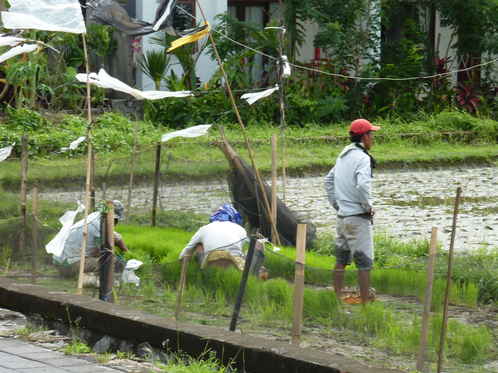 Am Vormittag starten wir eine erste Erkundungstour rund um Ubud. Trotz der üppigen touristischen Infrastruktur mit Läden und Restaurants für jeden Geschmack entlang der Hauptstraßen, hat sich der Ort einen Teil des ursprünglichen Charmes früherer Jahre bewahrt. Mit Ausnahme eines Starbucks konnten alle Invasionsversuche etablierter Ketten bislang von der Comunity abgewehrt werden. Und Öko ist auch kein Fremdwort. Mülltrennung und Recycling gehören zum Alltag.